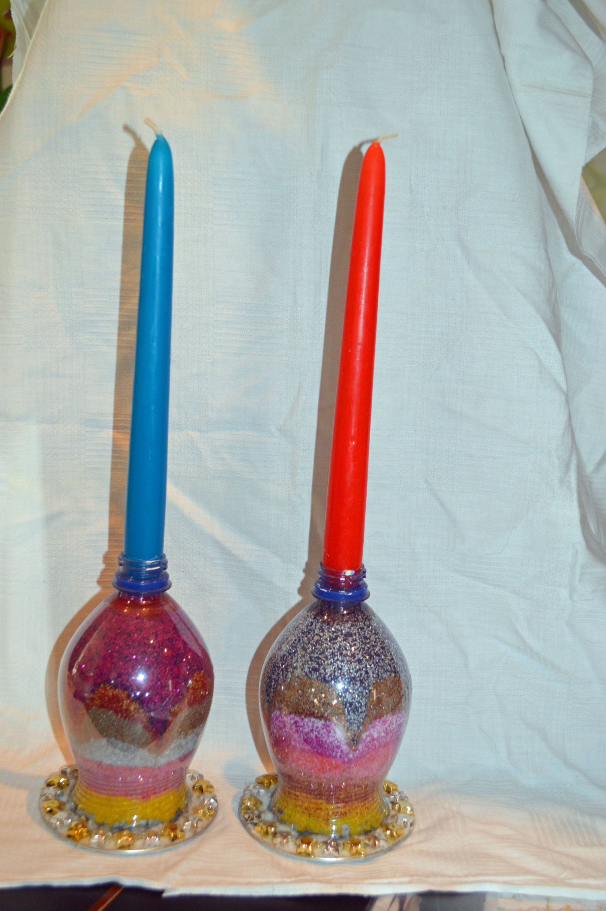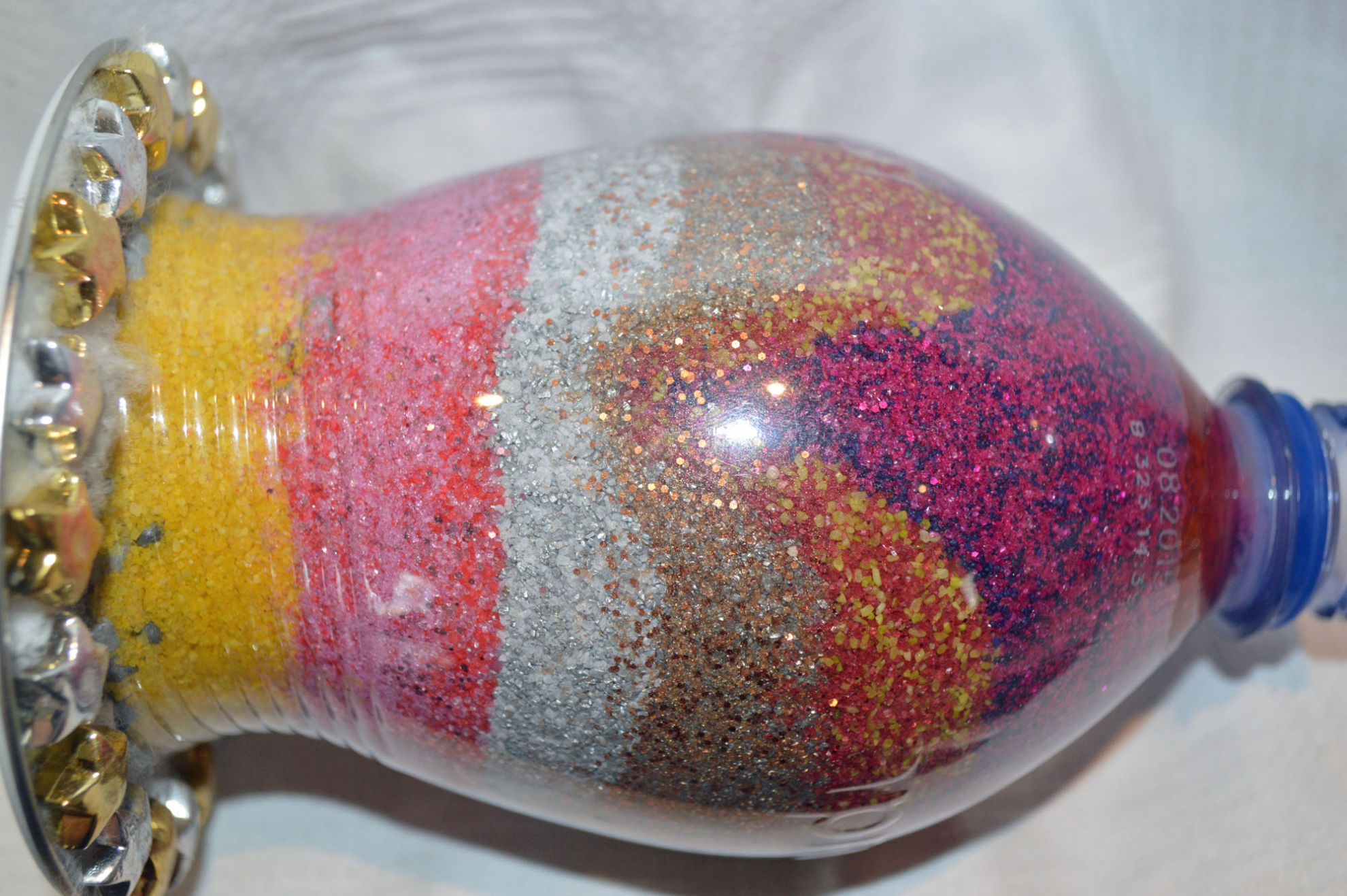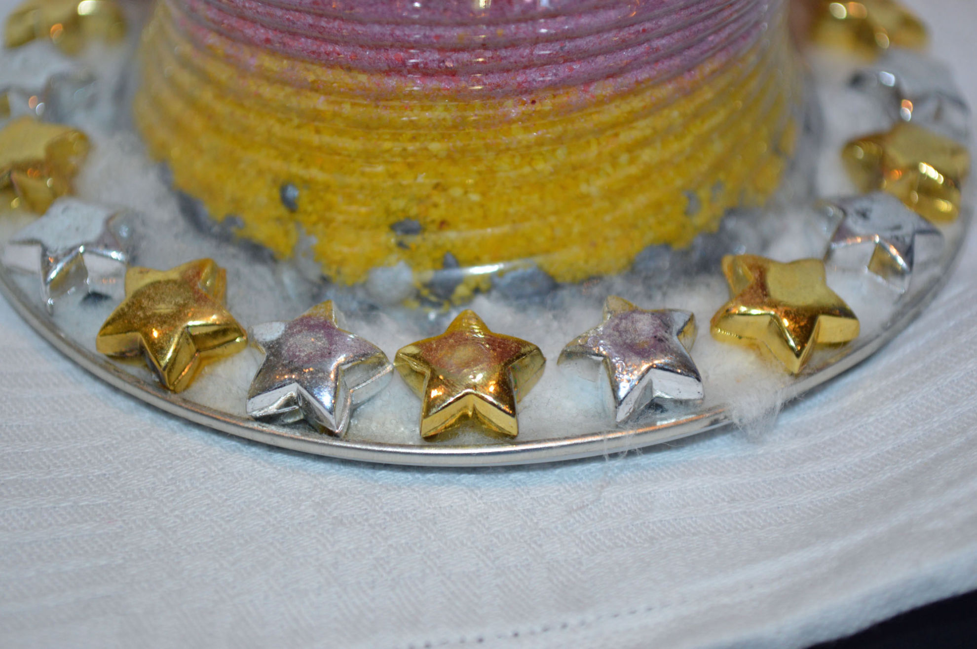 Material: PET Flasche 1.5l und Boden ist einem Alu Dosendeckel, Gefüllt mit Buntem Dekor-Sand. Dekosterne, Watte