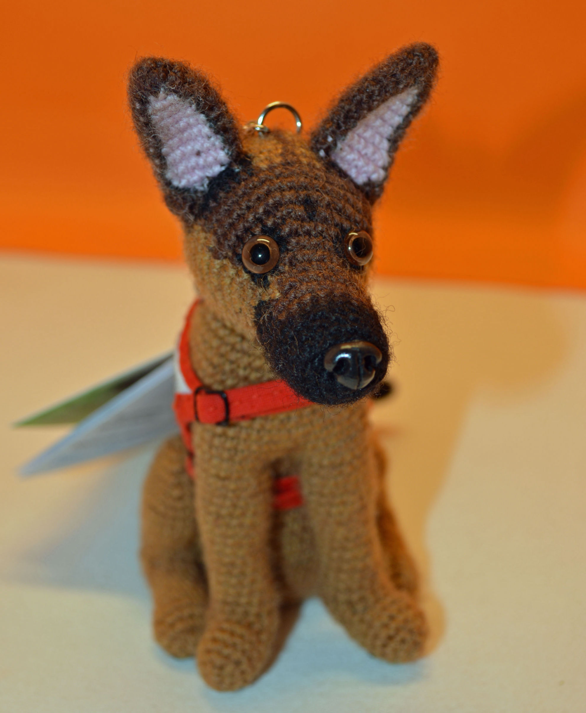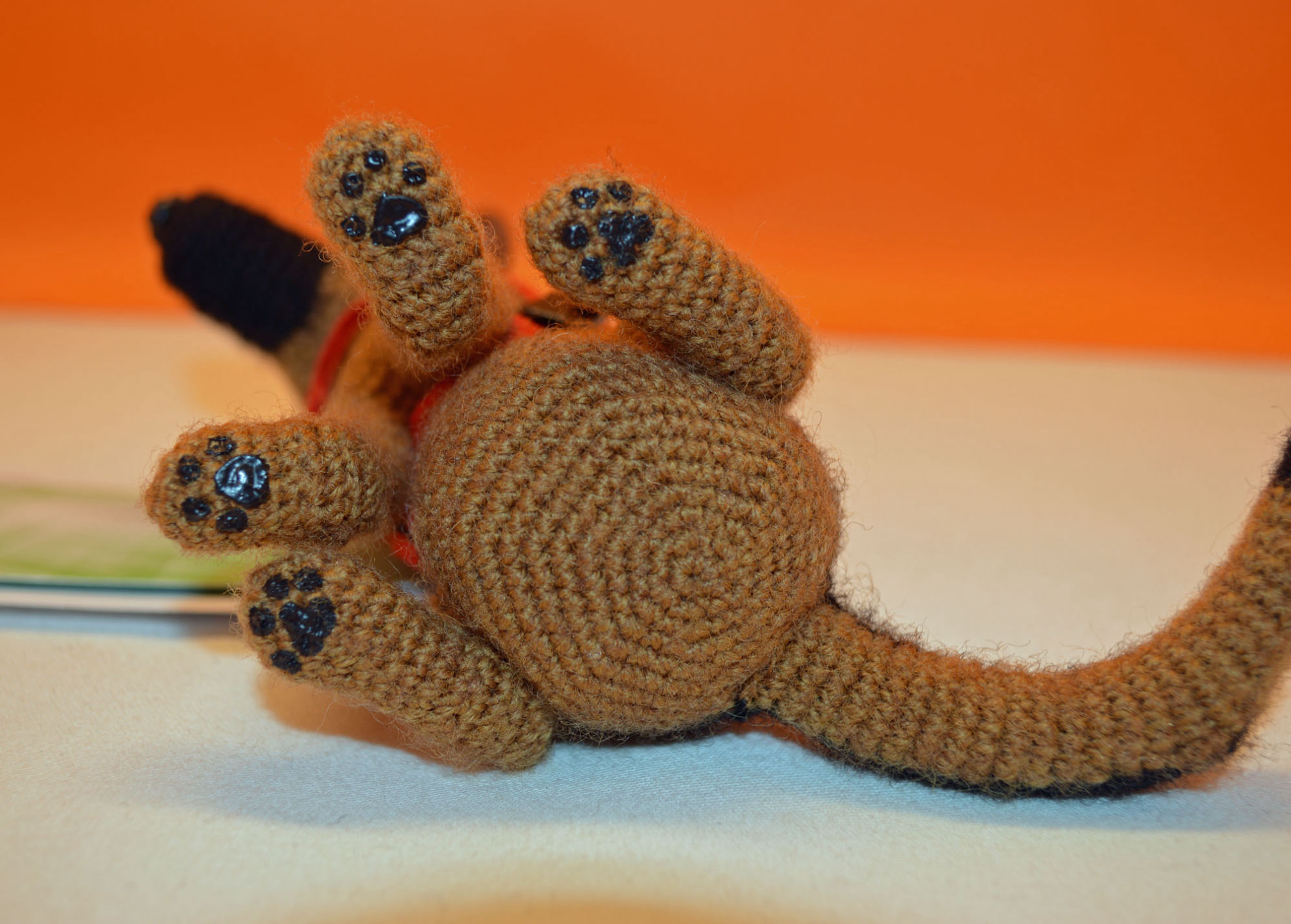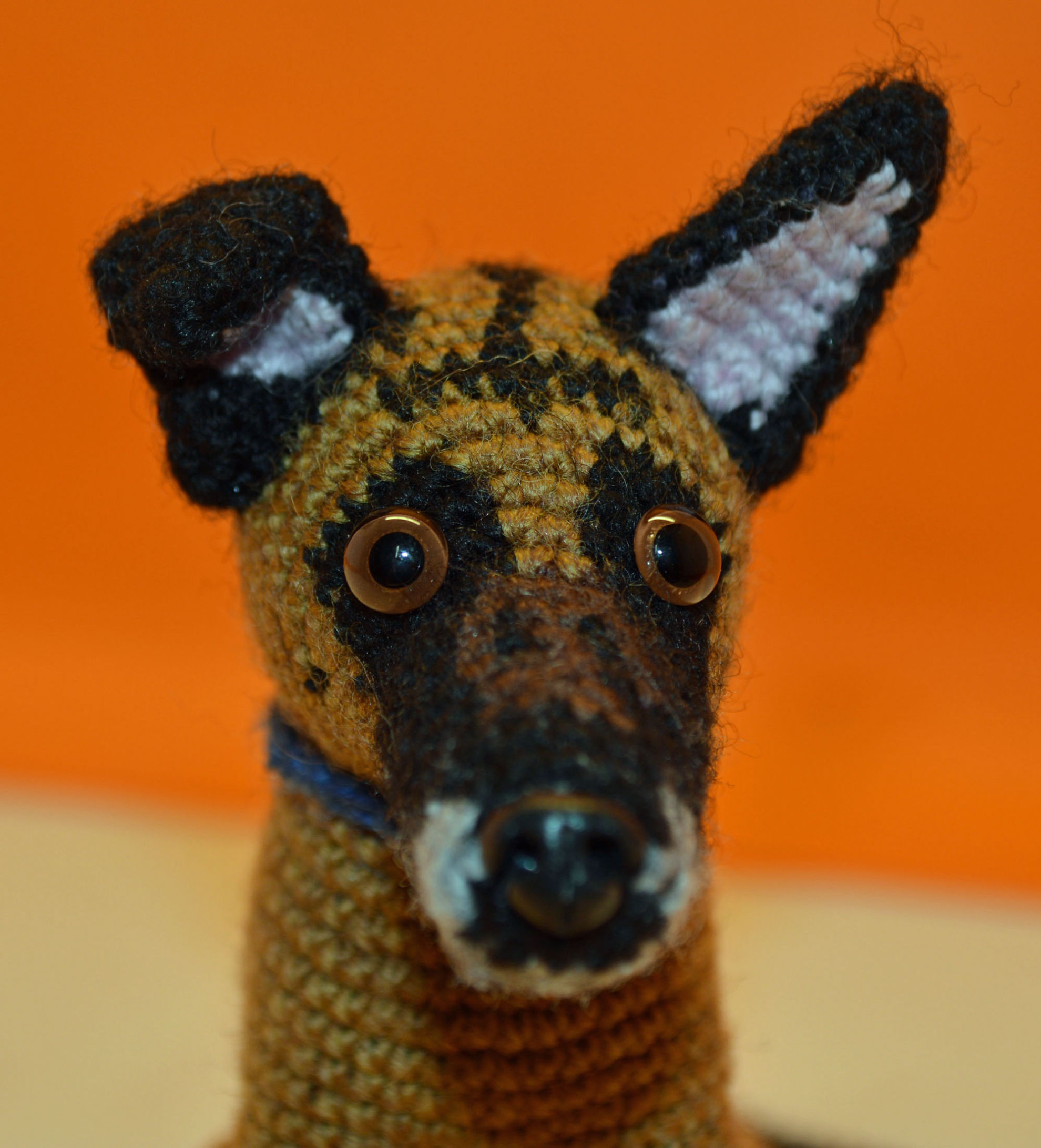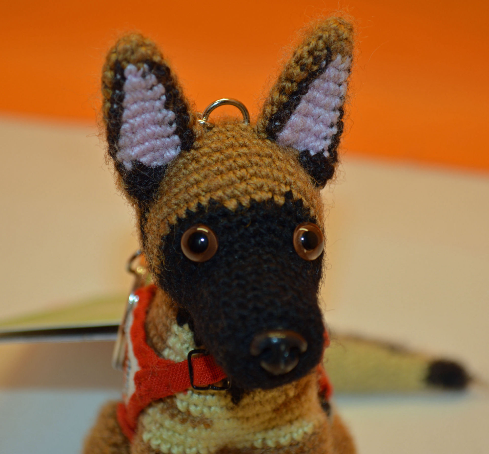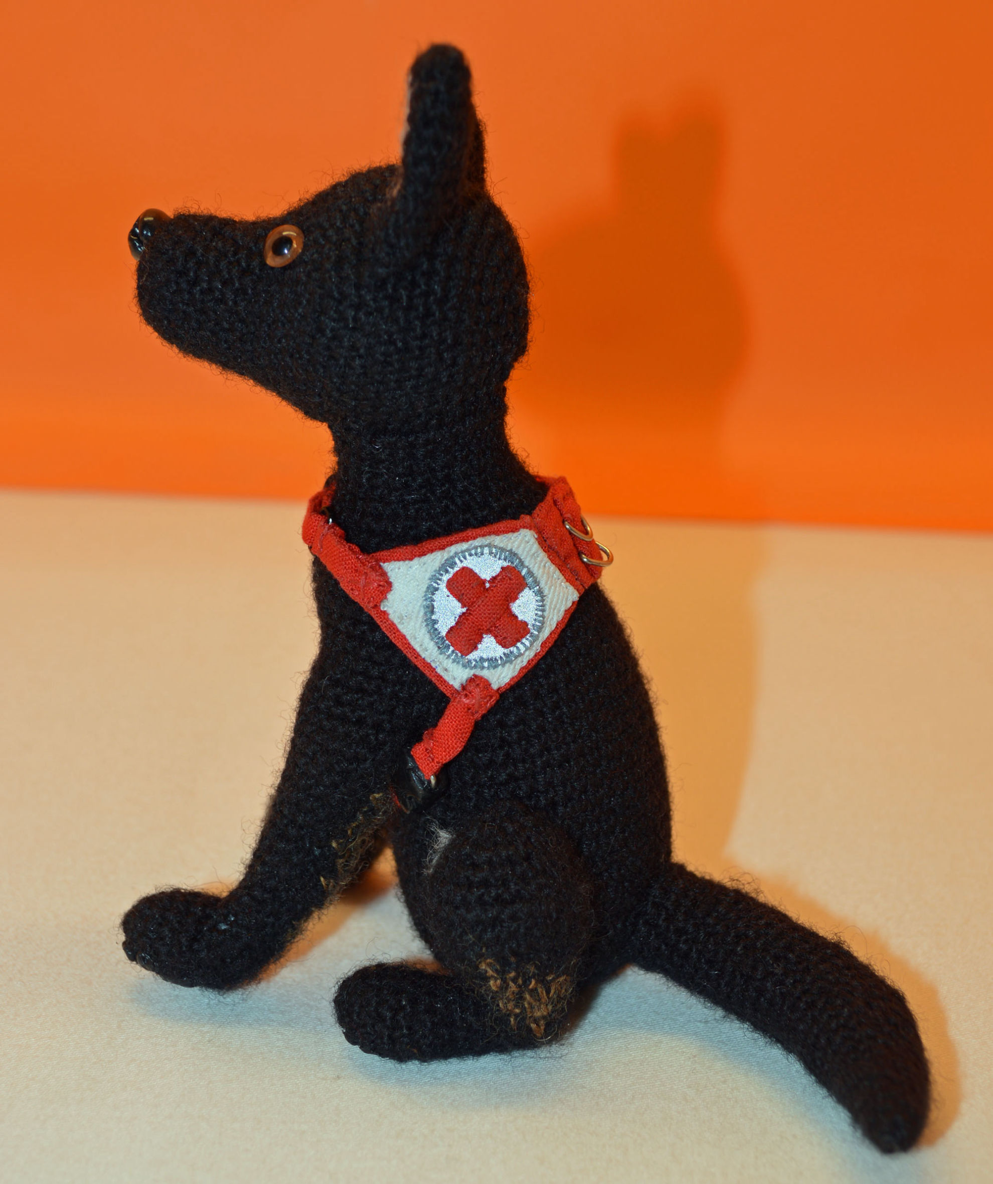 Material: Wolle verschiedene, Glasaugen, Hundenase Fimo (selbst gemacht), Bauernmalfarbe, Bastelwatte
