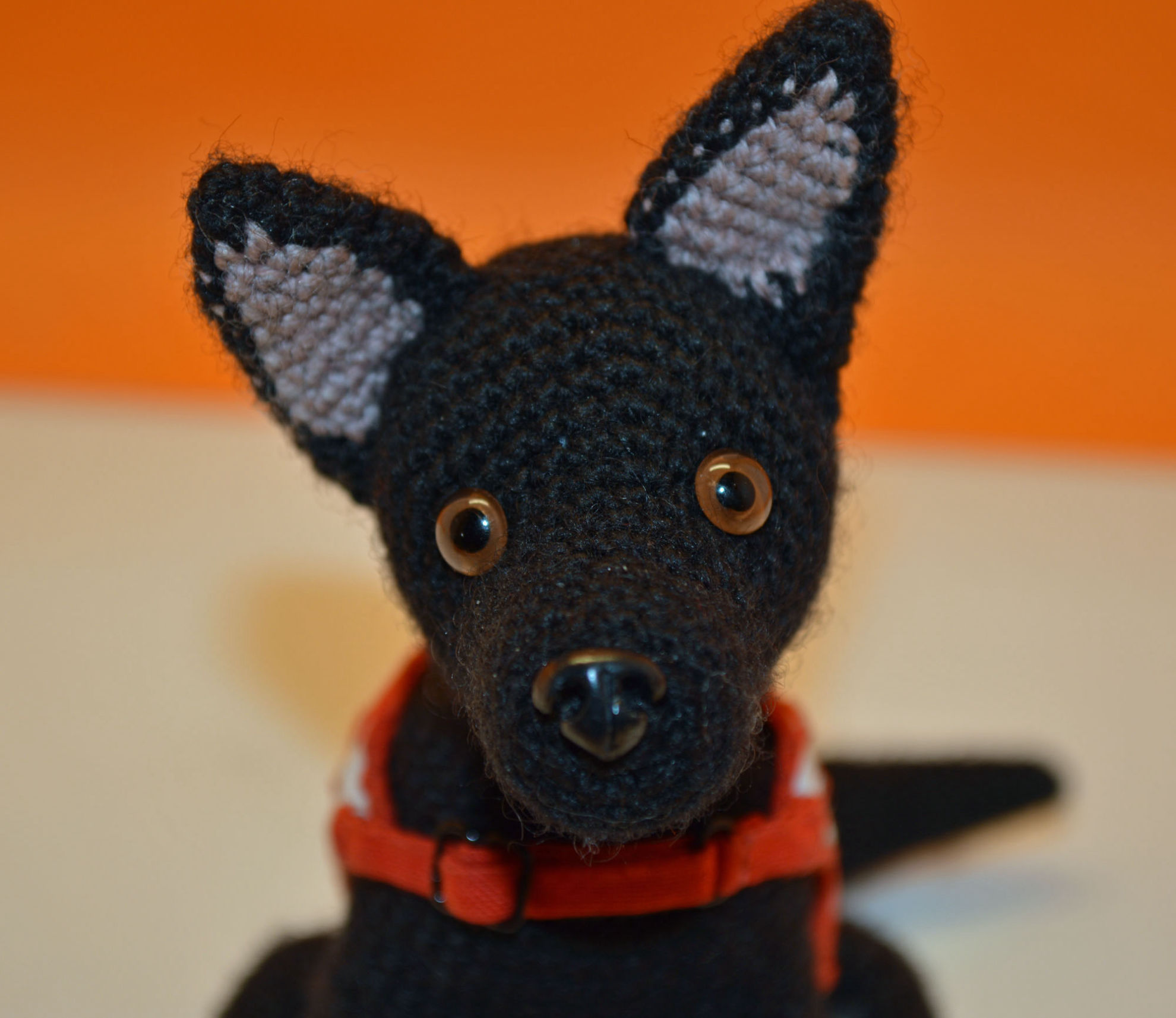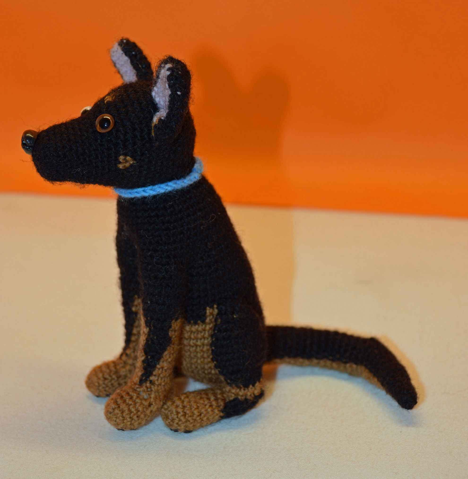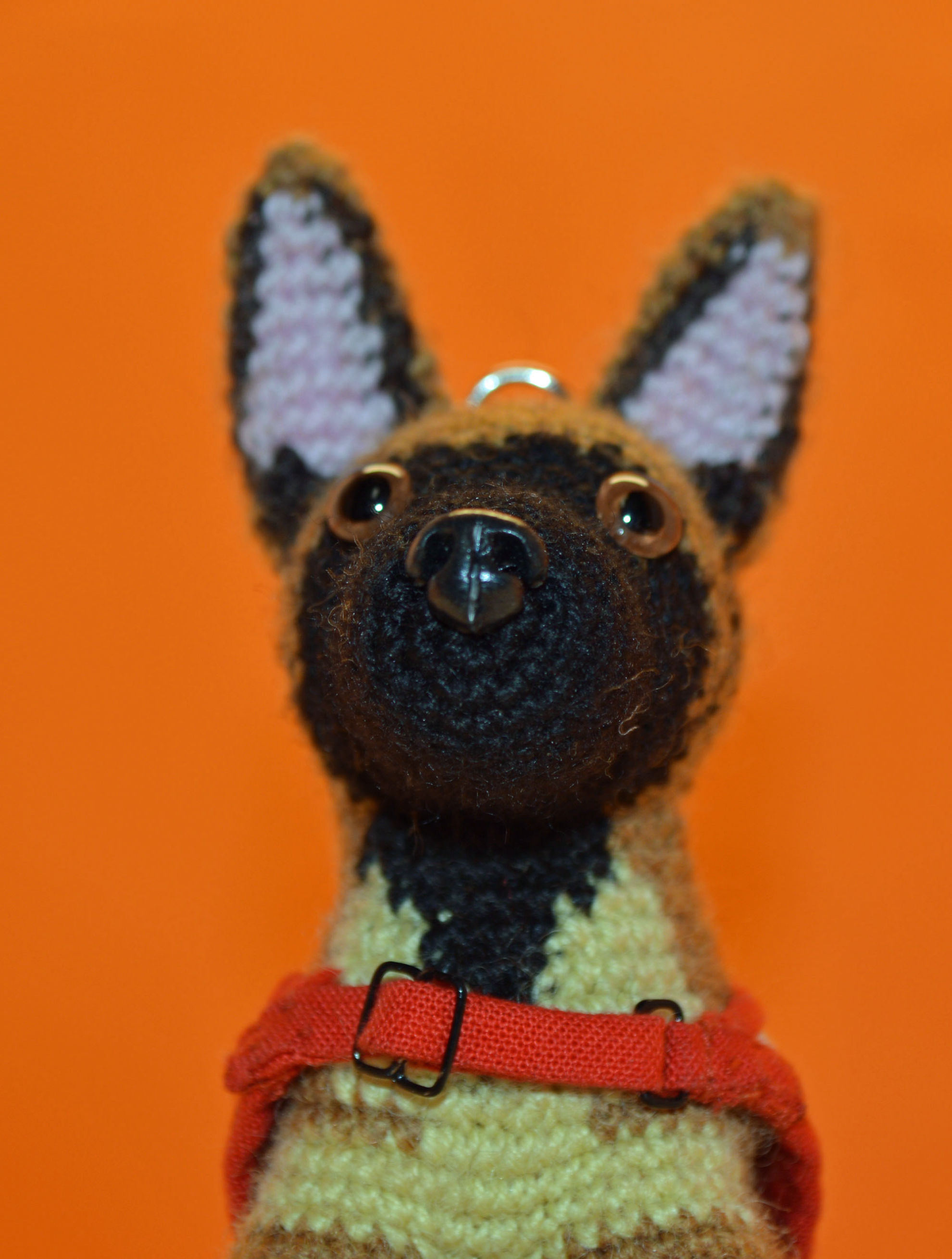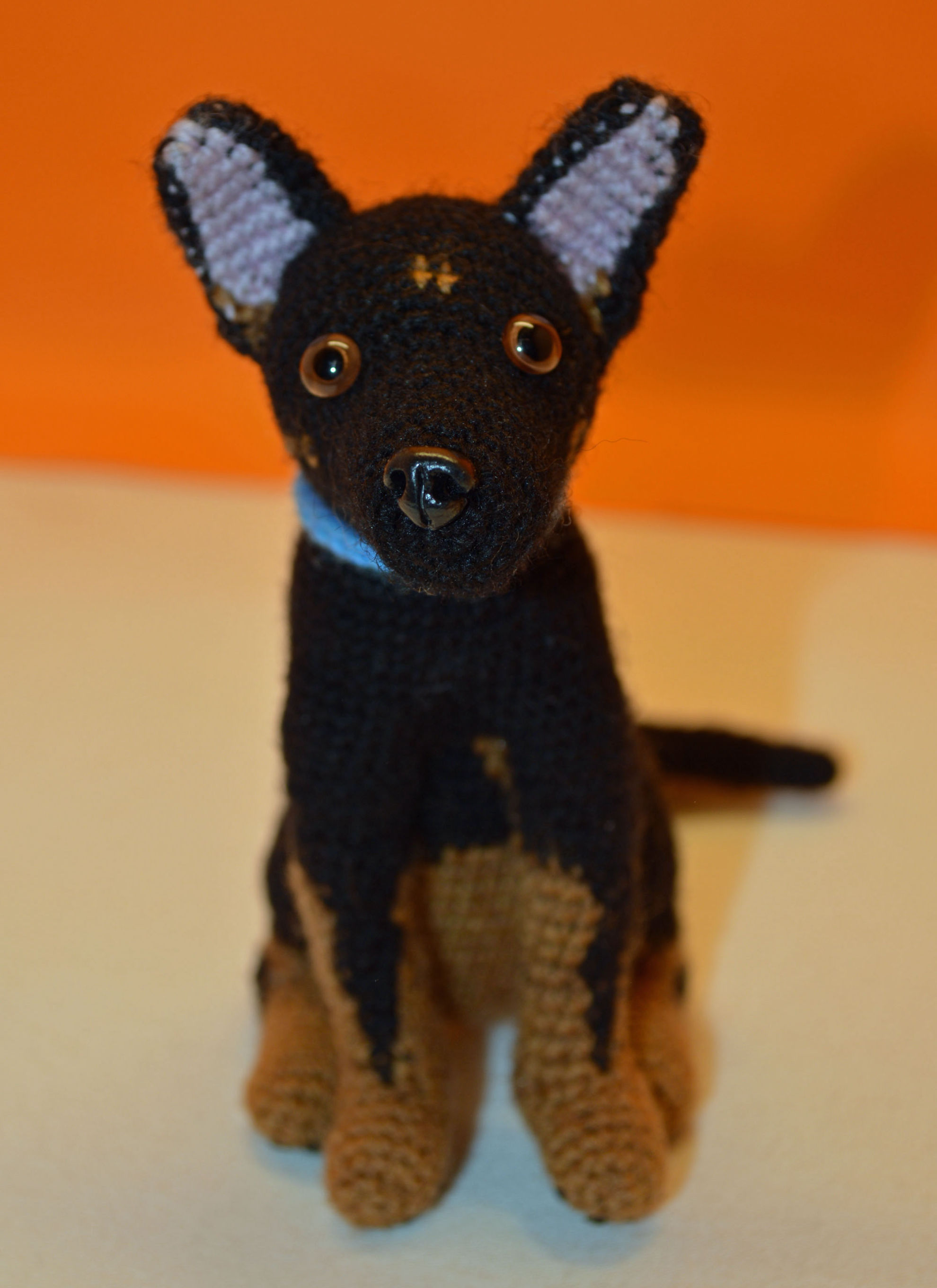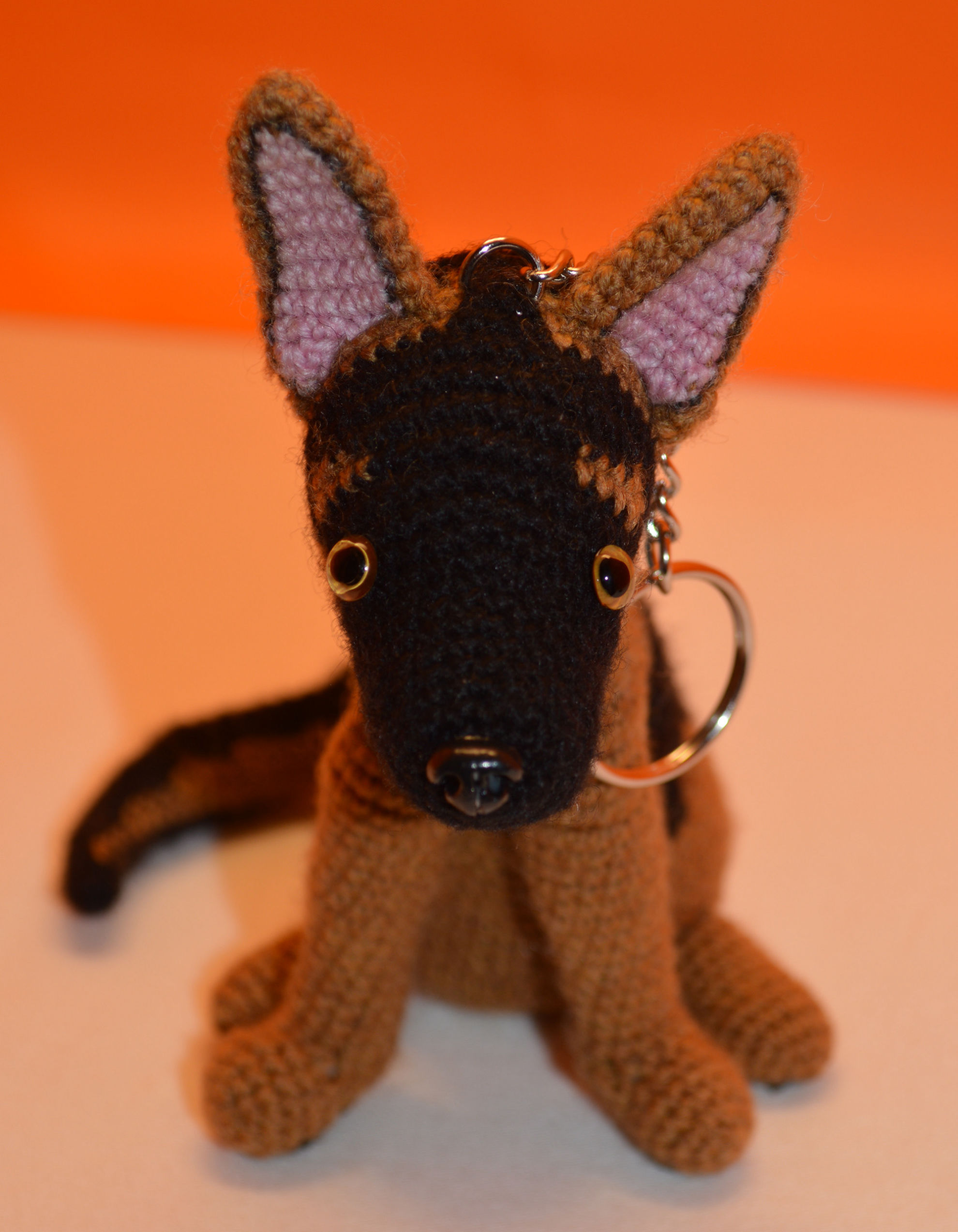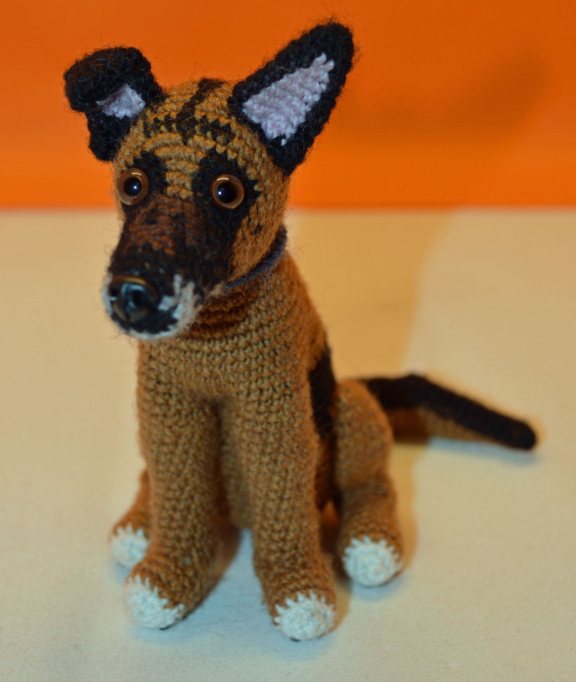 Material: Wolle verschiedene, Glasaugen, Hundenase Fimo (selbst gemacht), Bauernmalfarbe, Bastelwatte