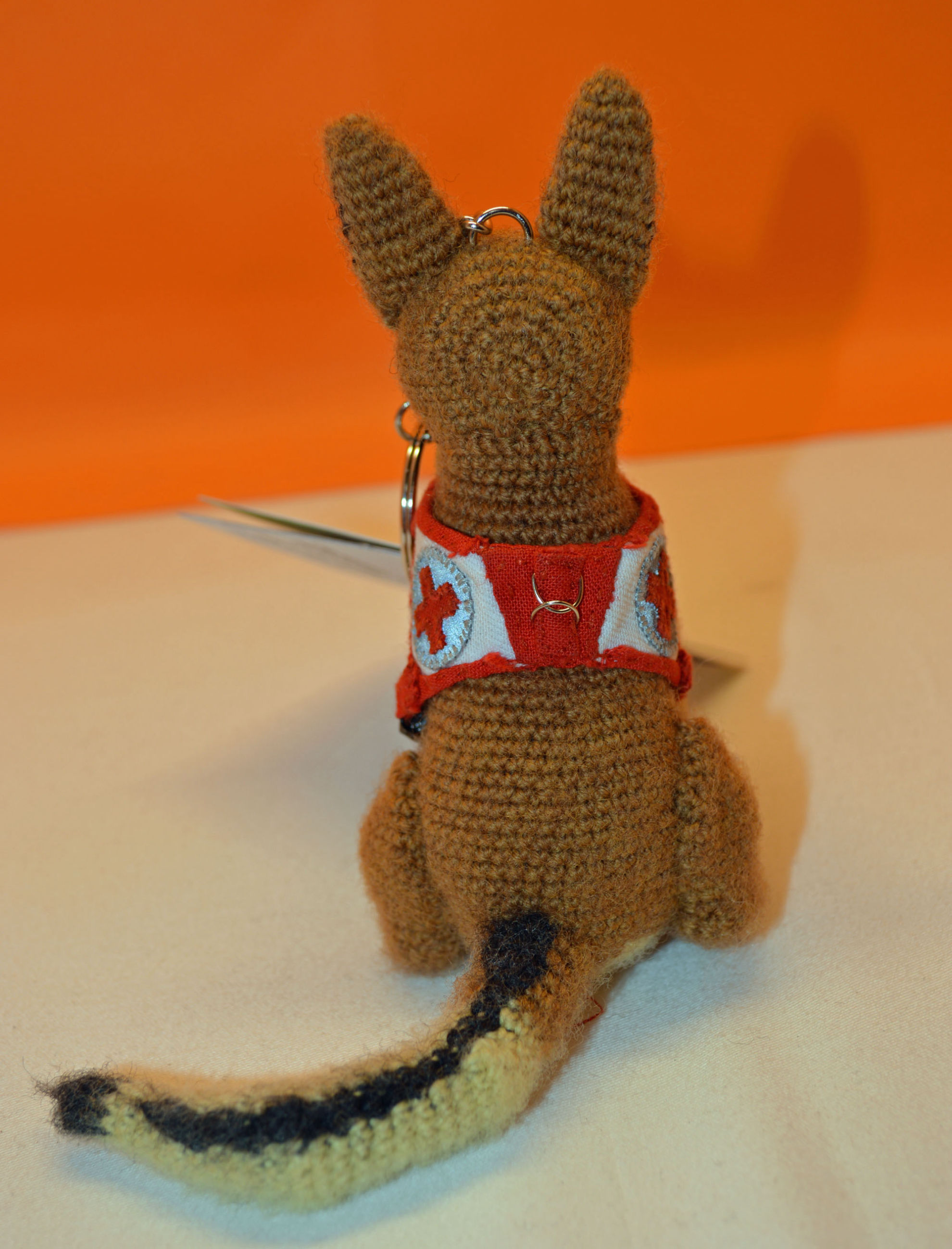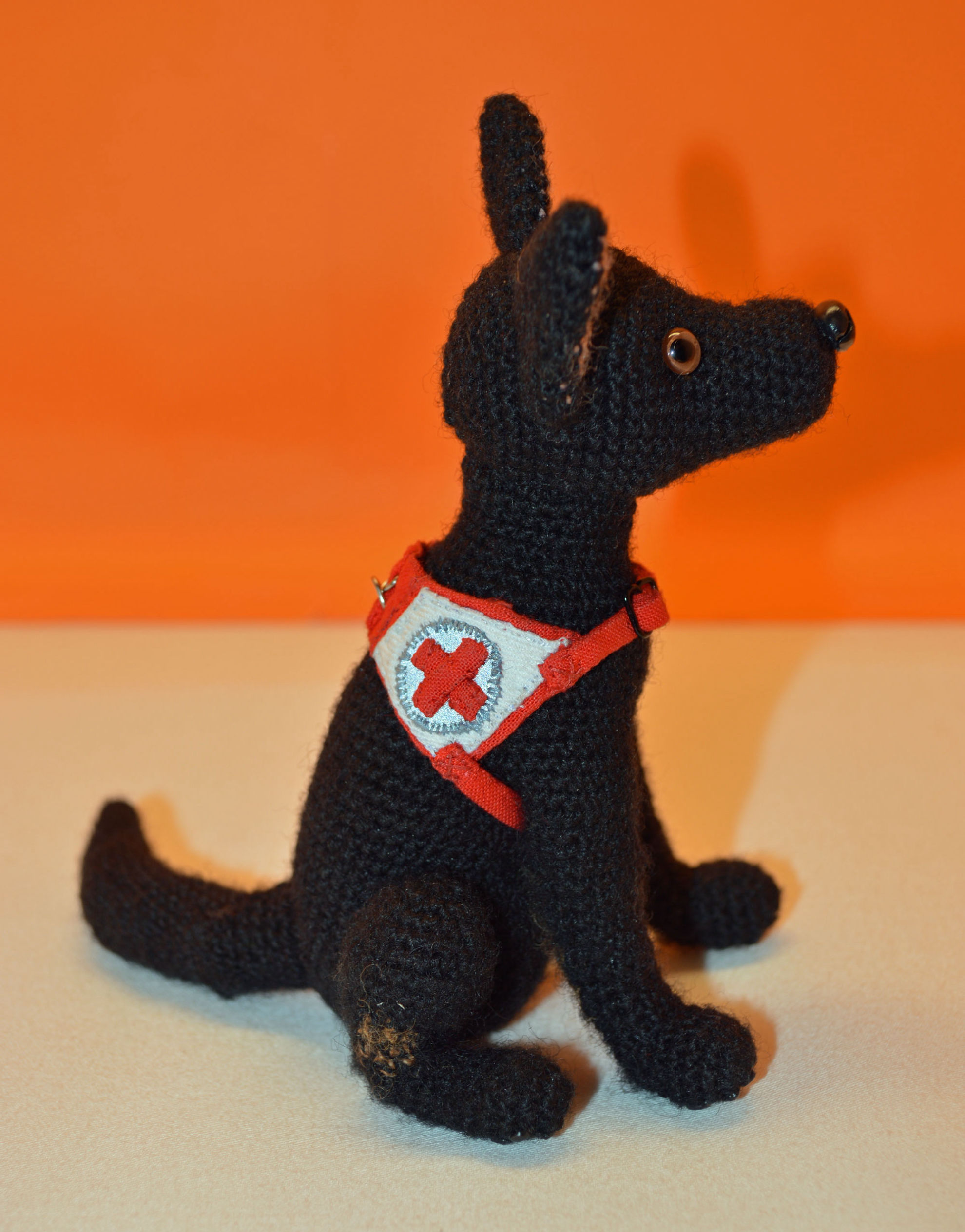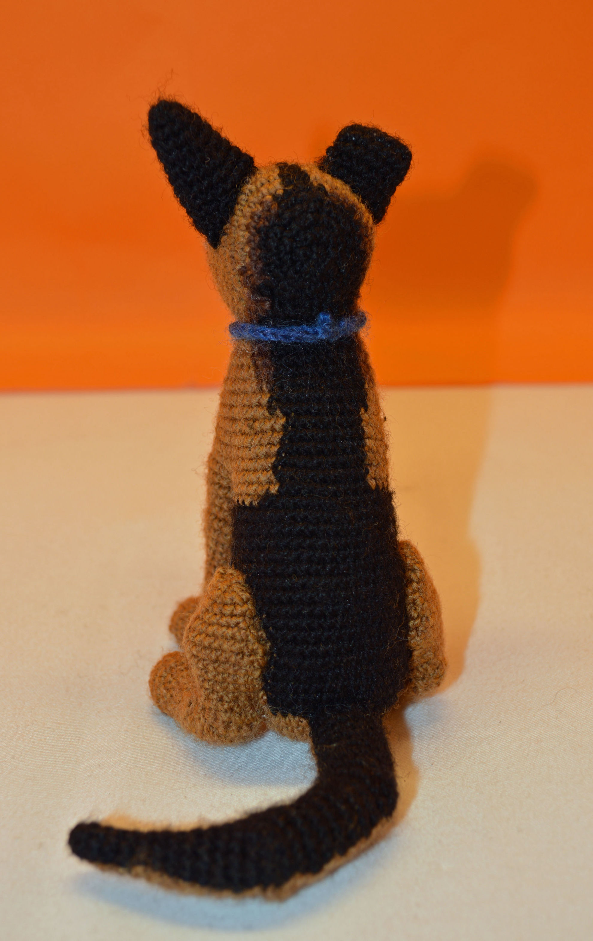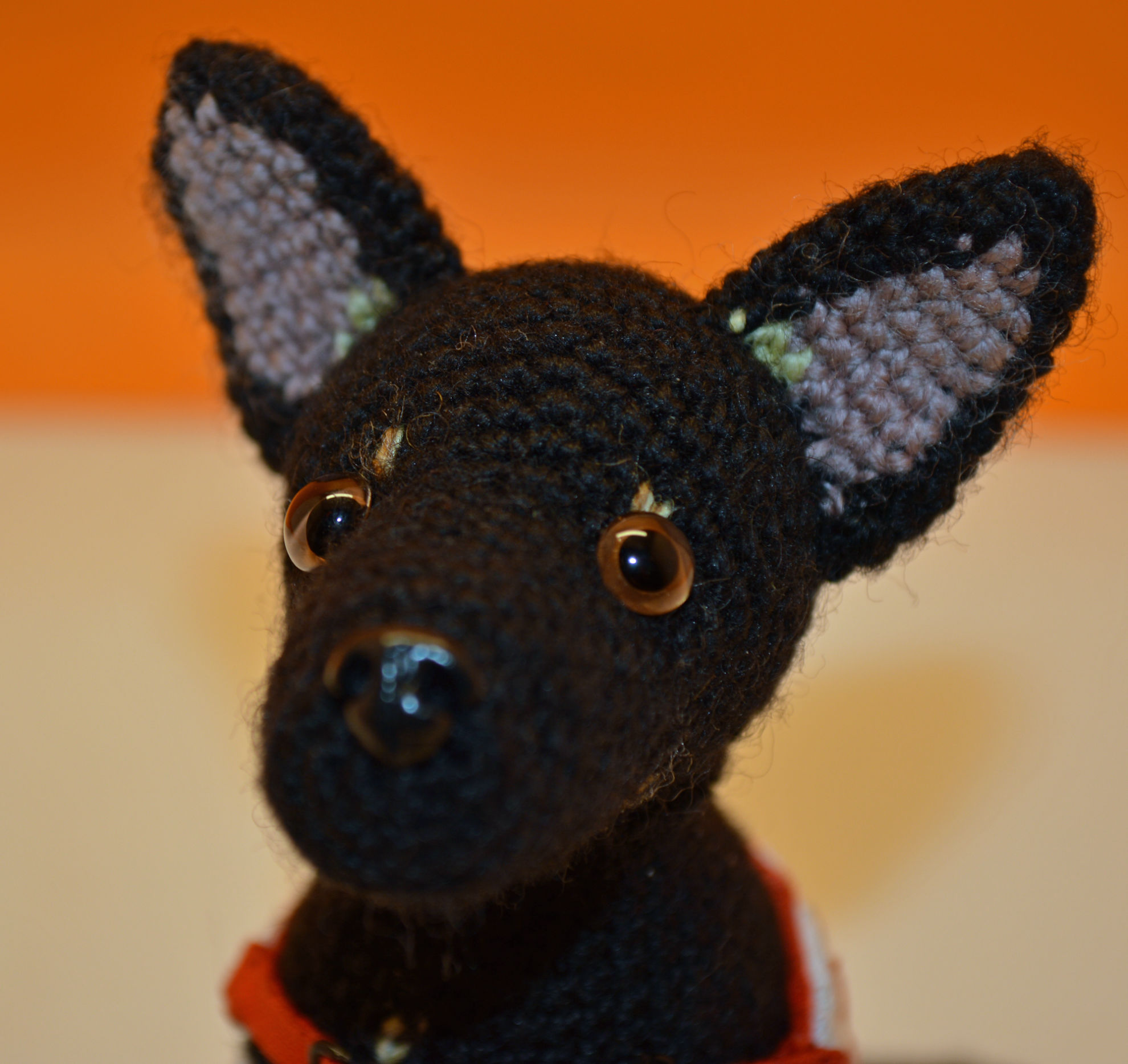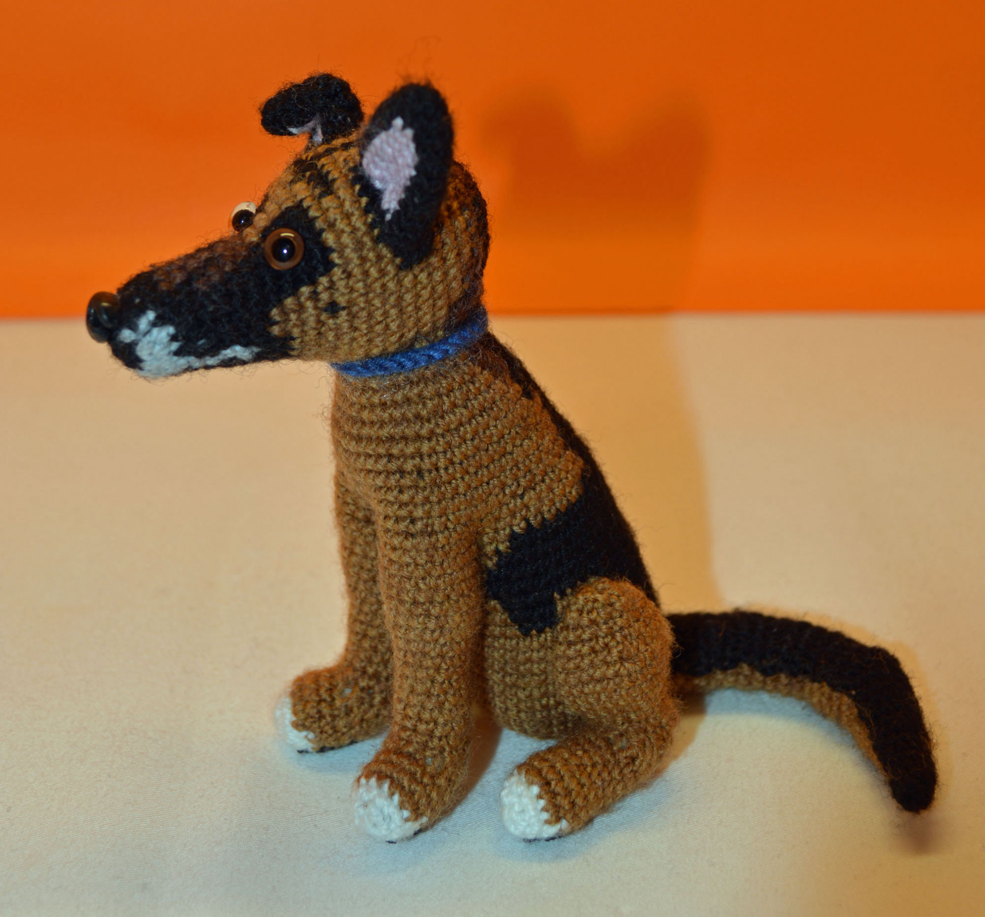 Material: Wolle verschiedene, Glasaugen, Hundenase Fimo (selbst gemacht), Bauernmalfarbe, Bastelwatte