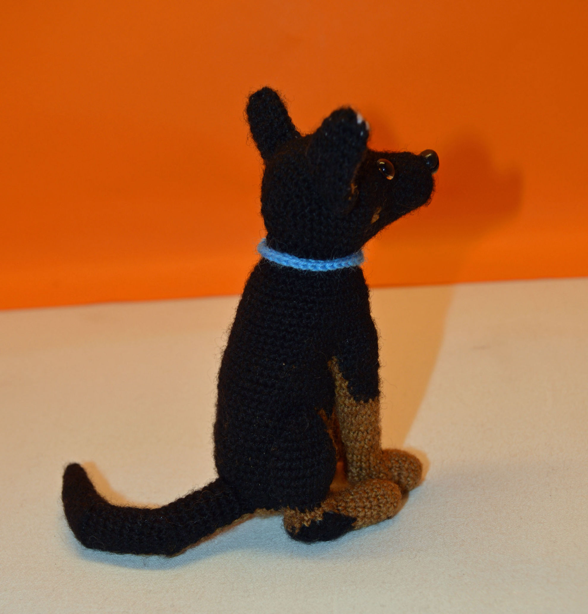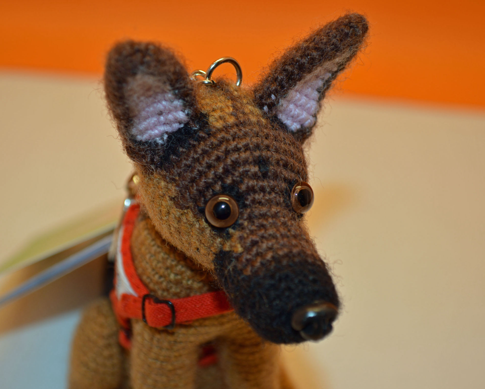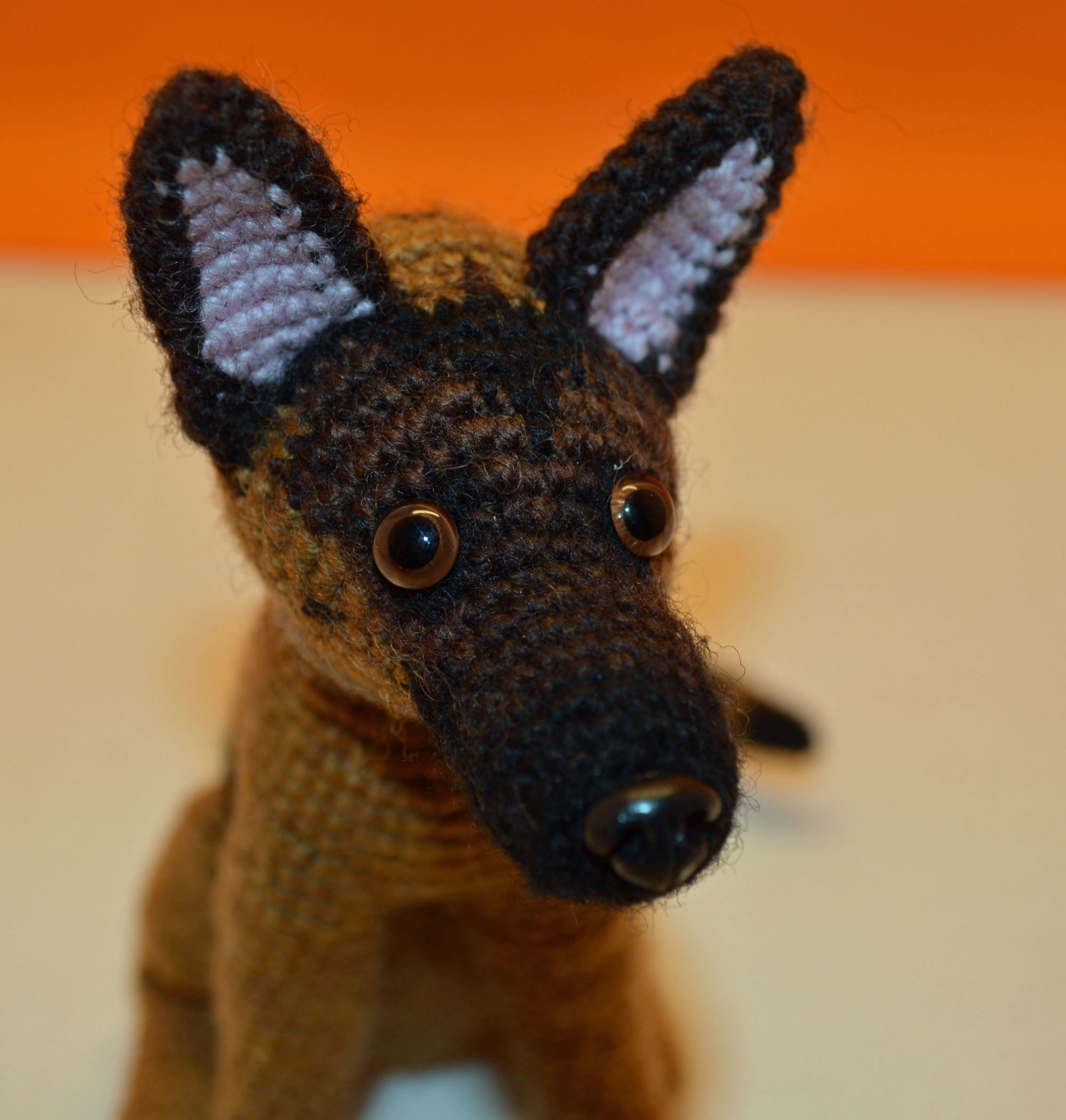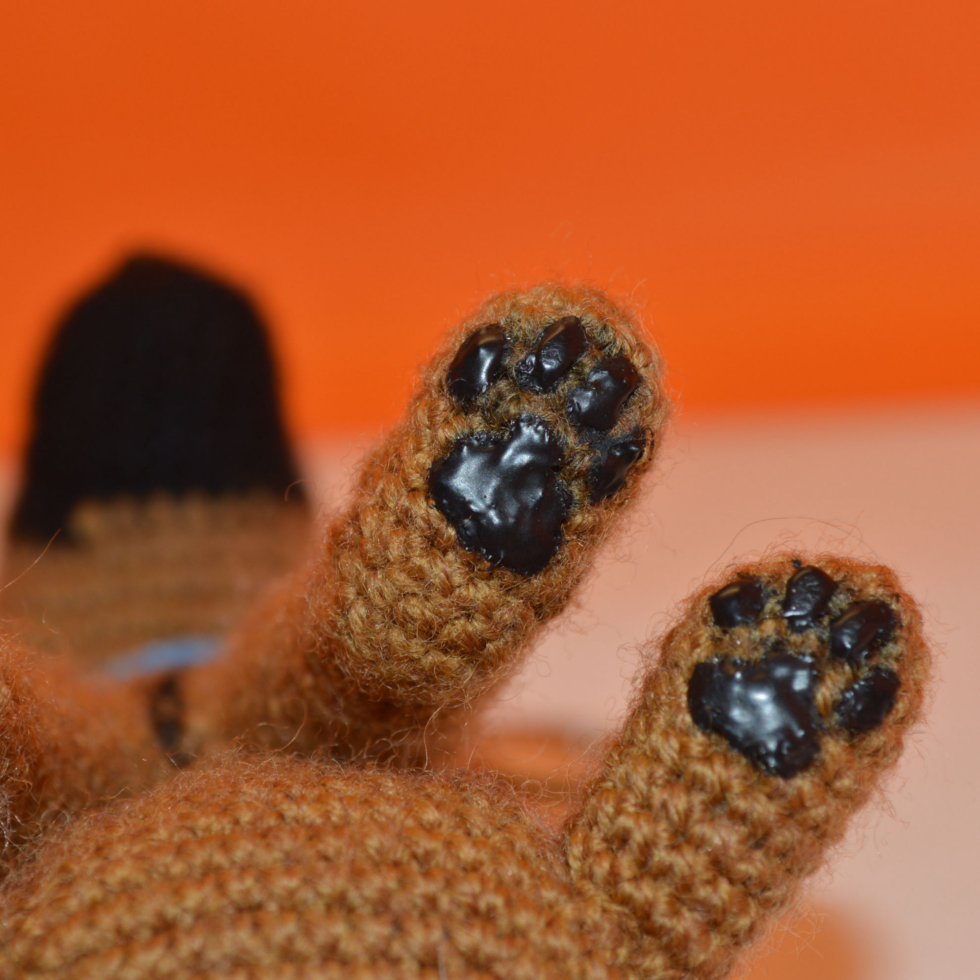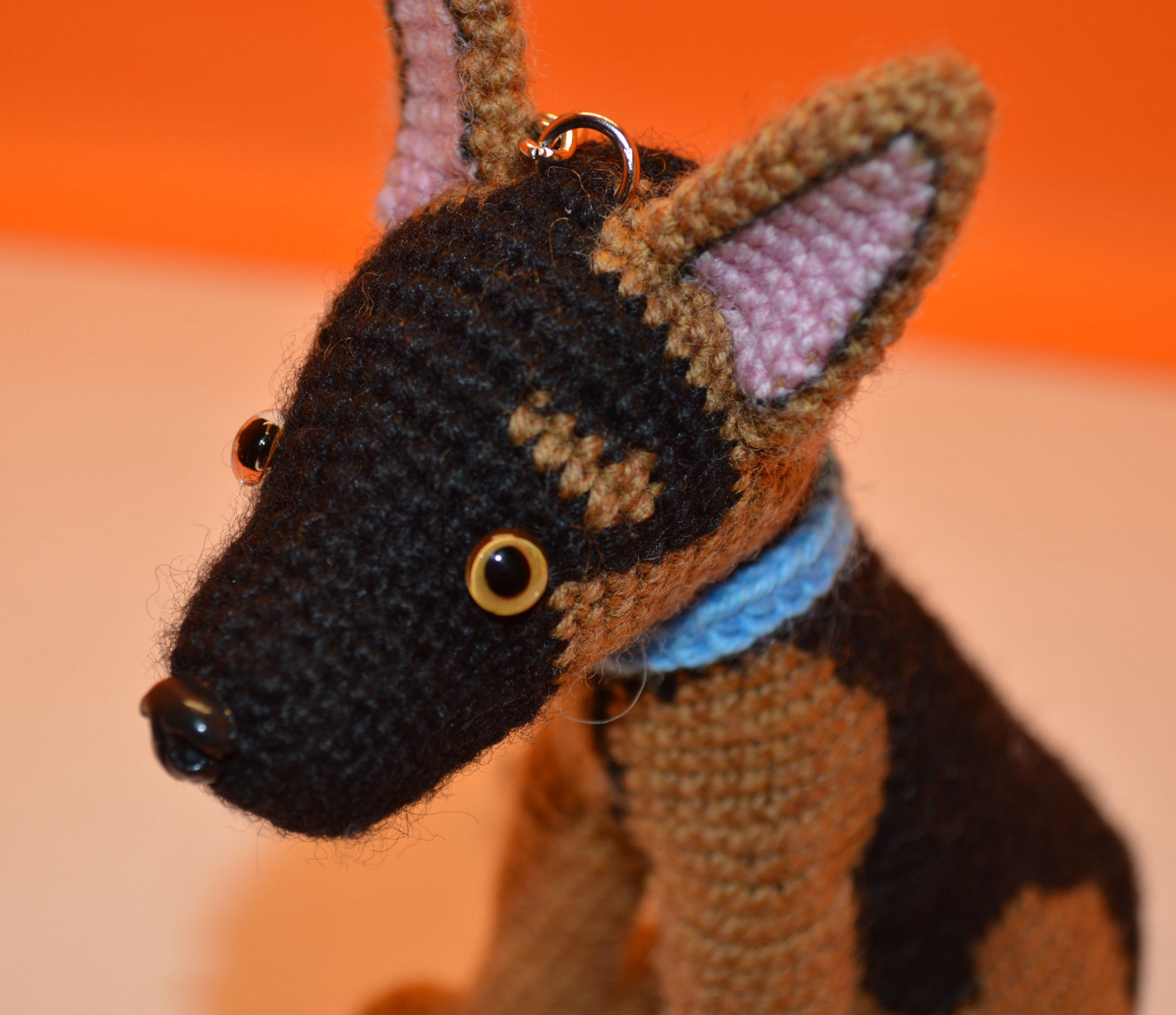 Material: Wolle verschiedene, Glasaugen, Hundenase Fimo (selbst gemacht), Bauernmalfarbe, Bastelwatte