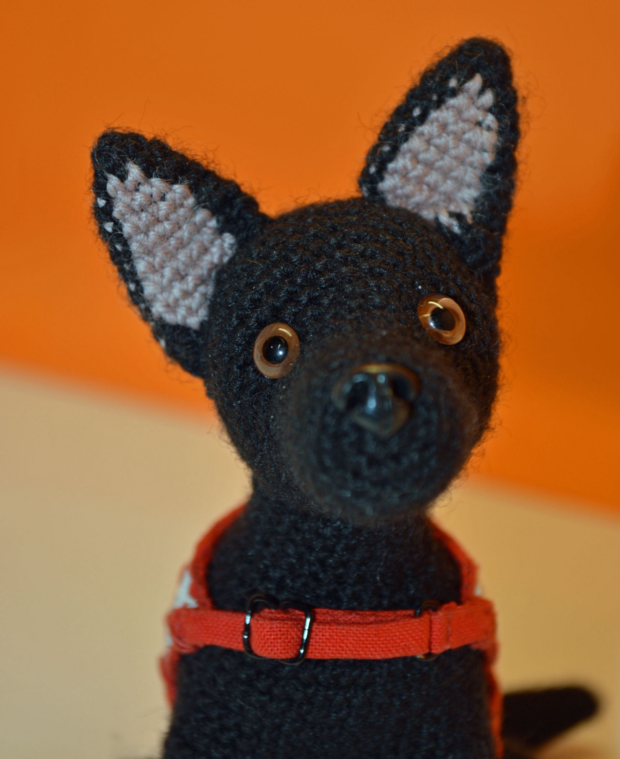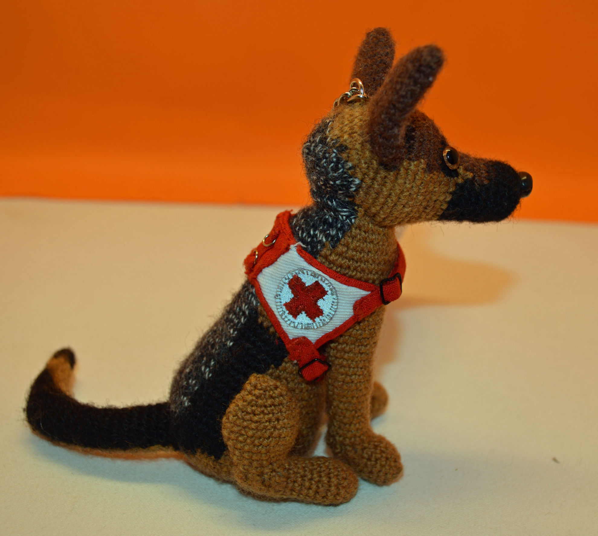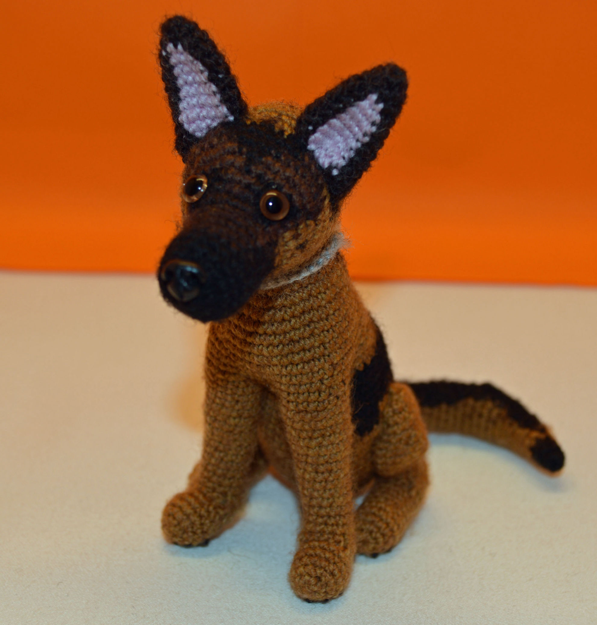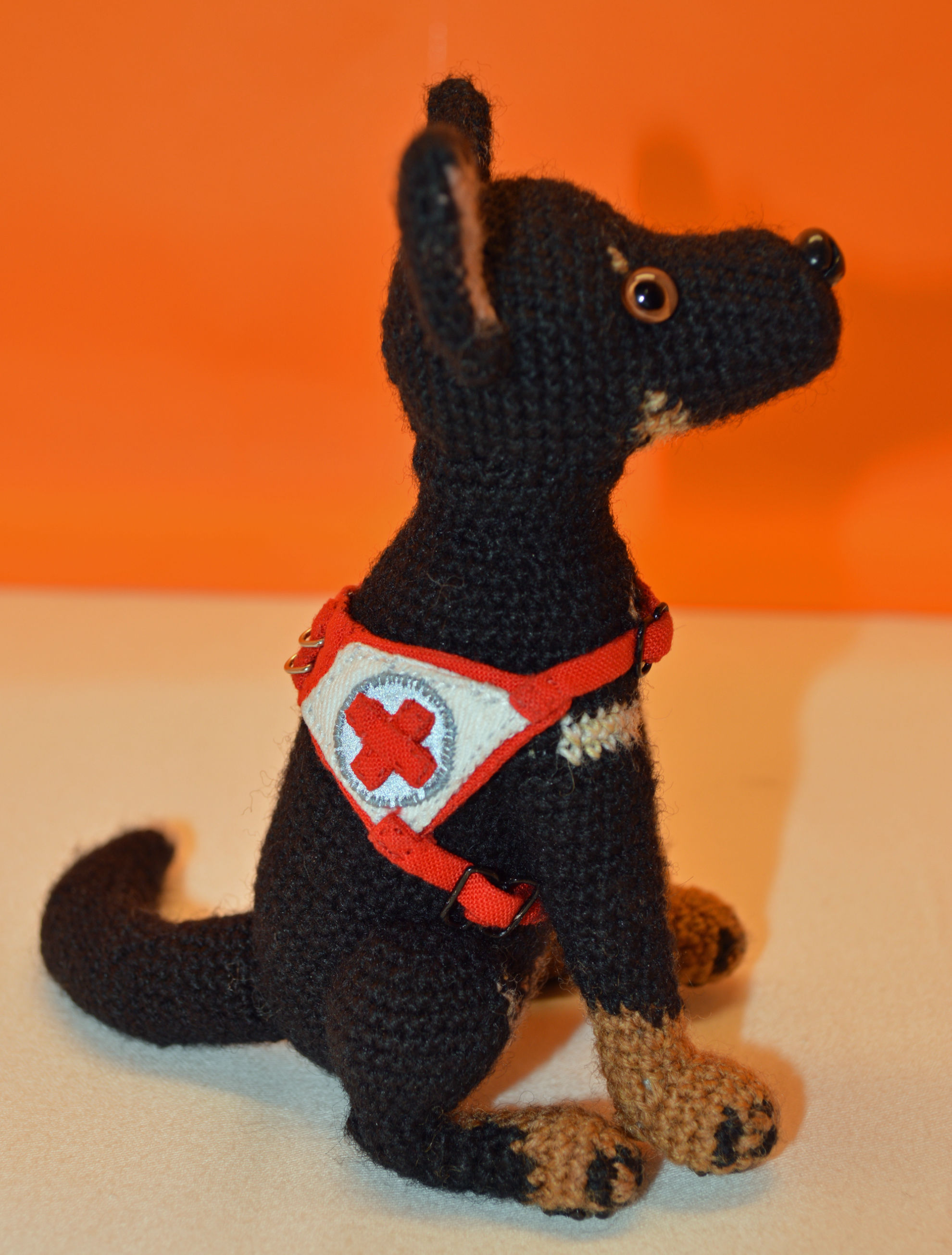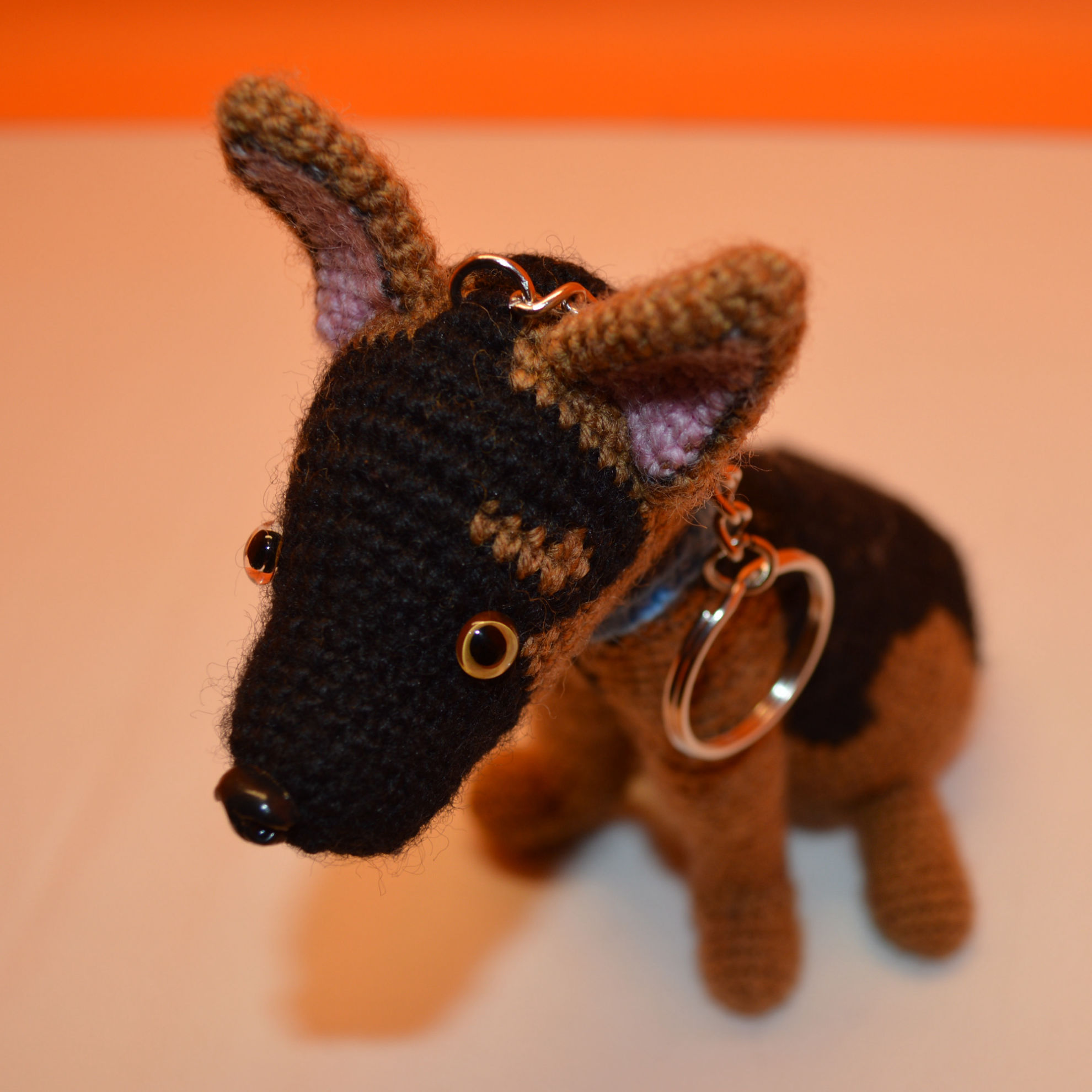 Material: Wolle verschiedene, Glasaugen, Hundenase Fimo (selbst gemacht), Bauernmalfarbe, Bastelwatte
