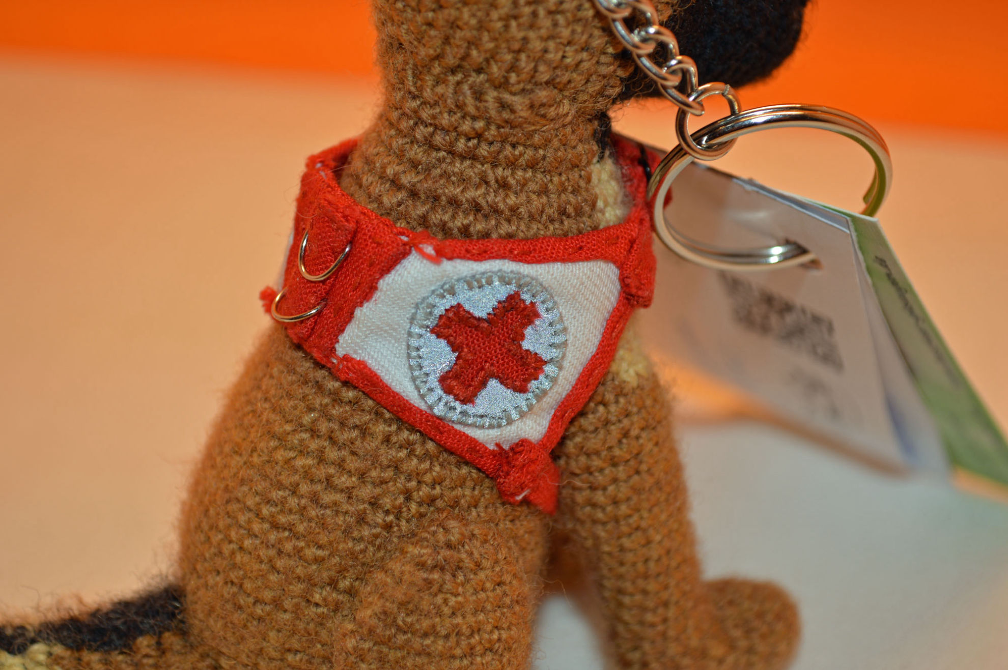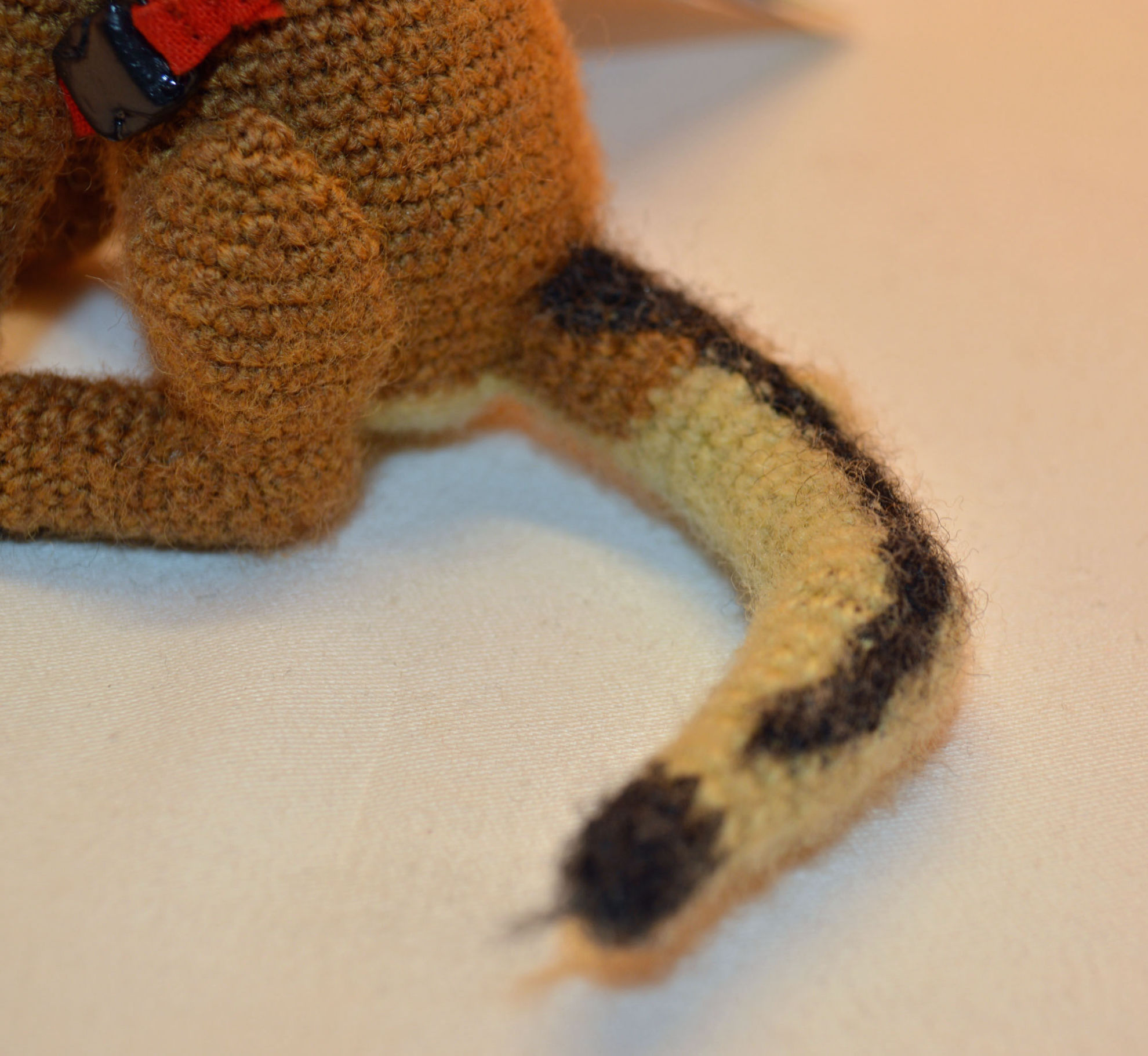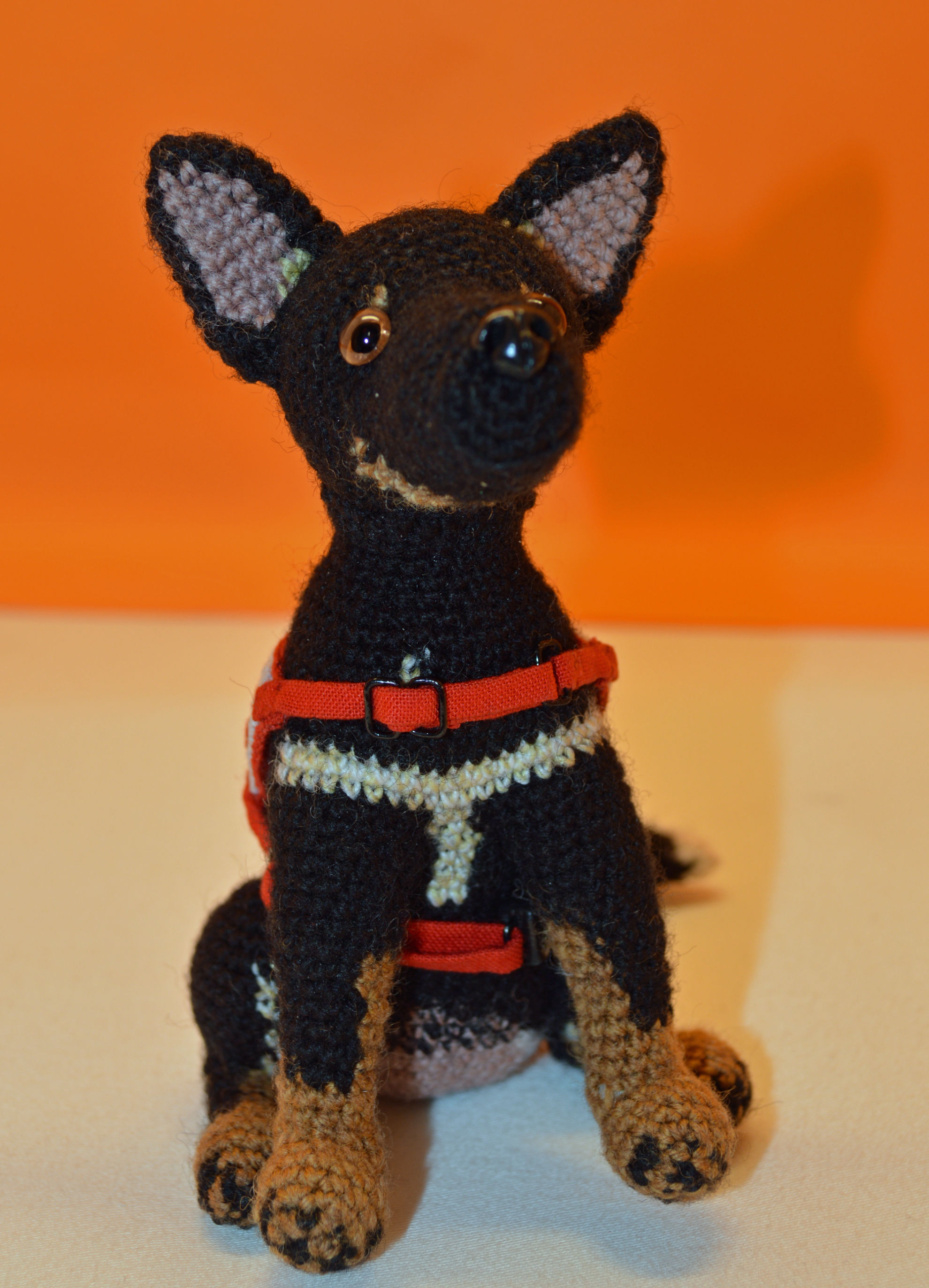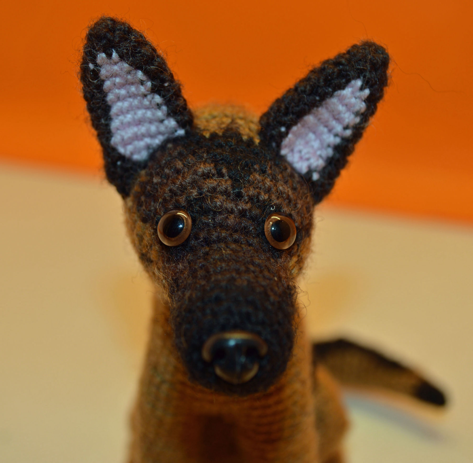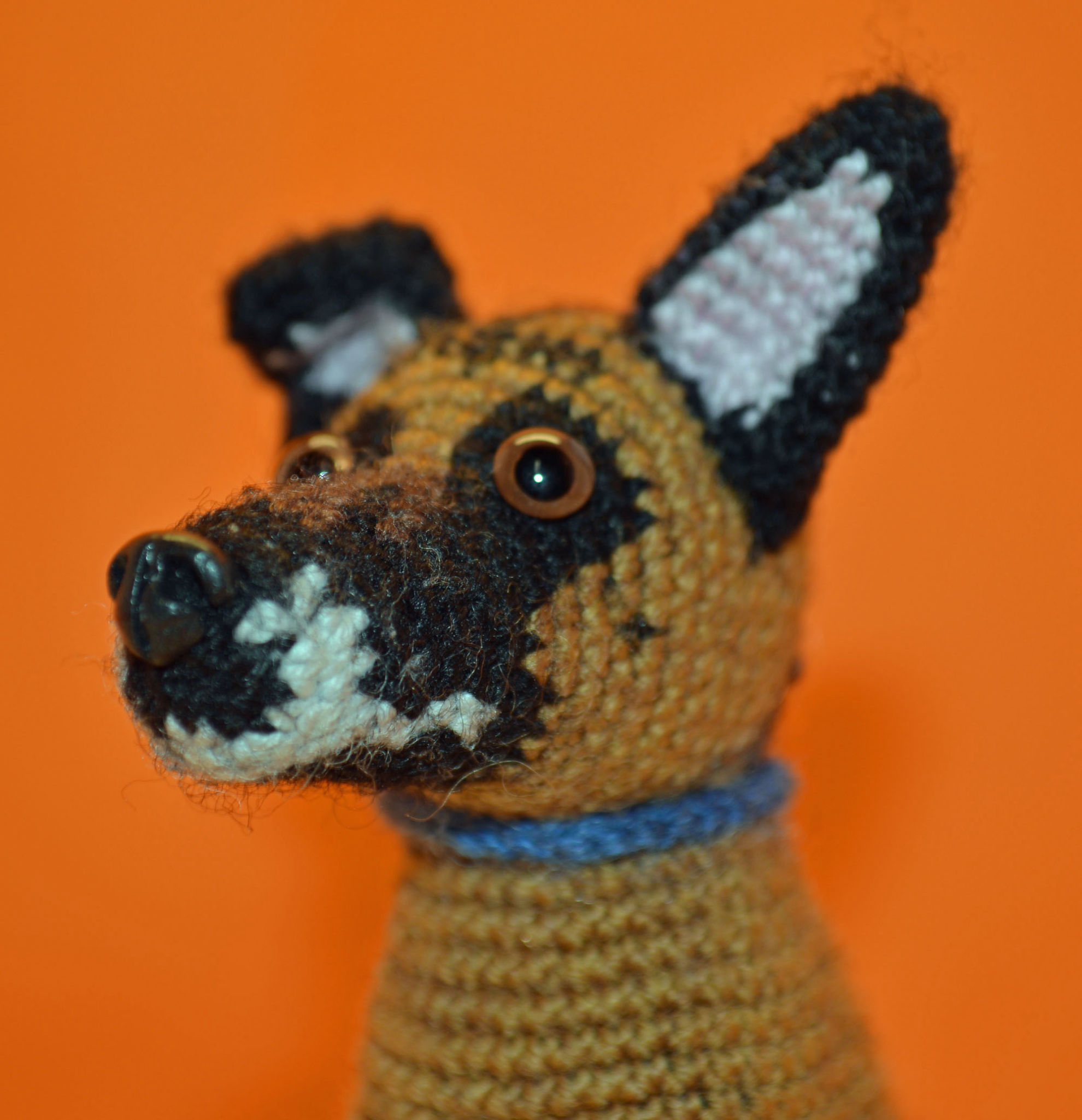 Material: Wolle verschiedene, Glasaugen, Hundenase Fimo (selbst gemacht), Bauernmalfarbe, Bastelwatte