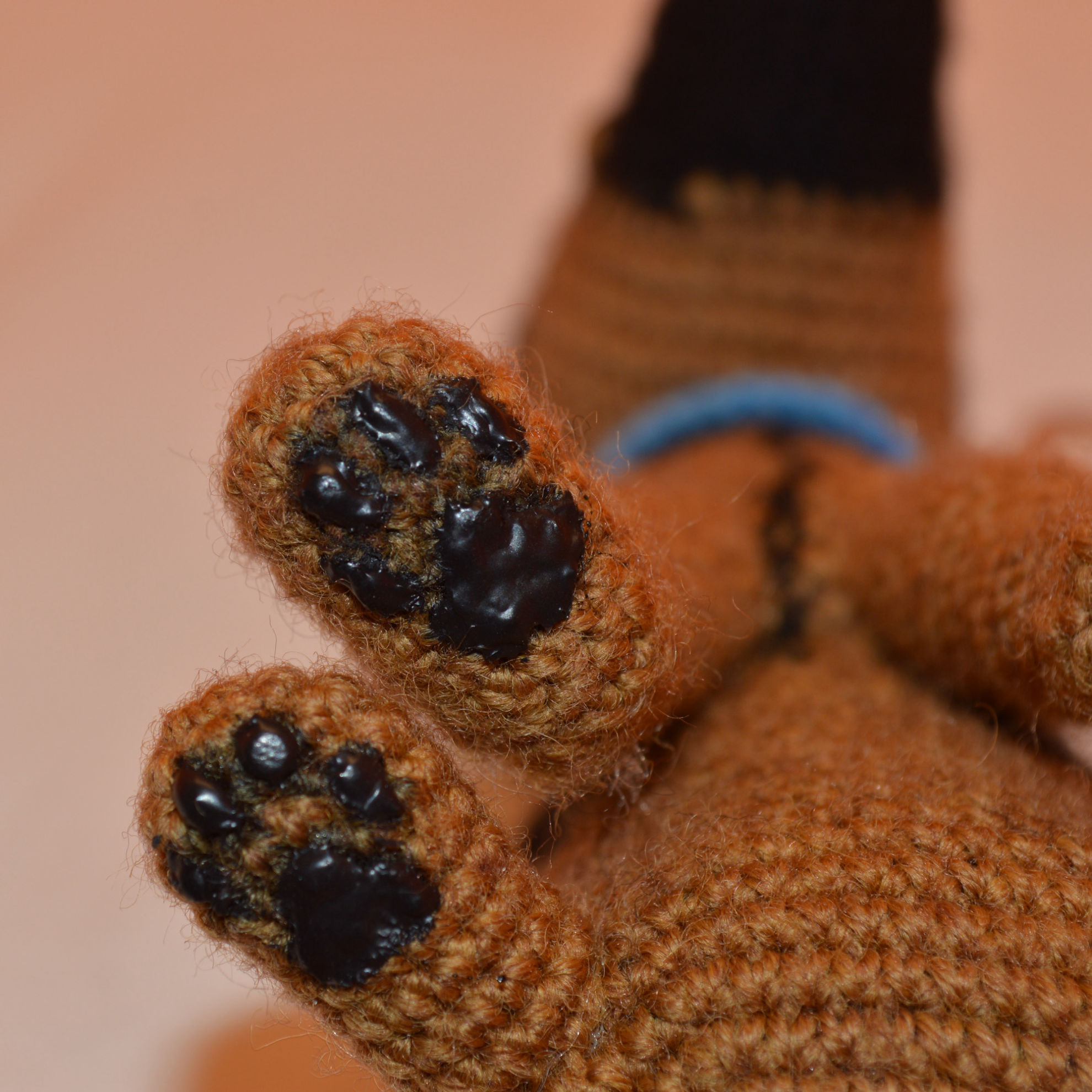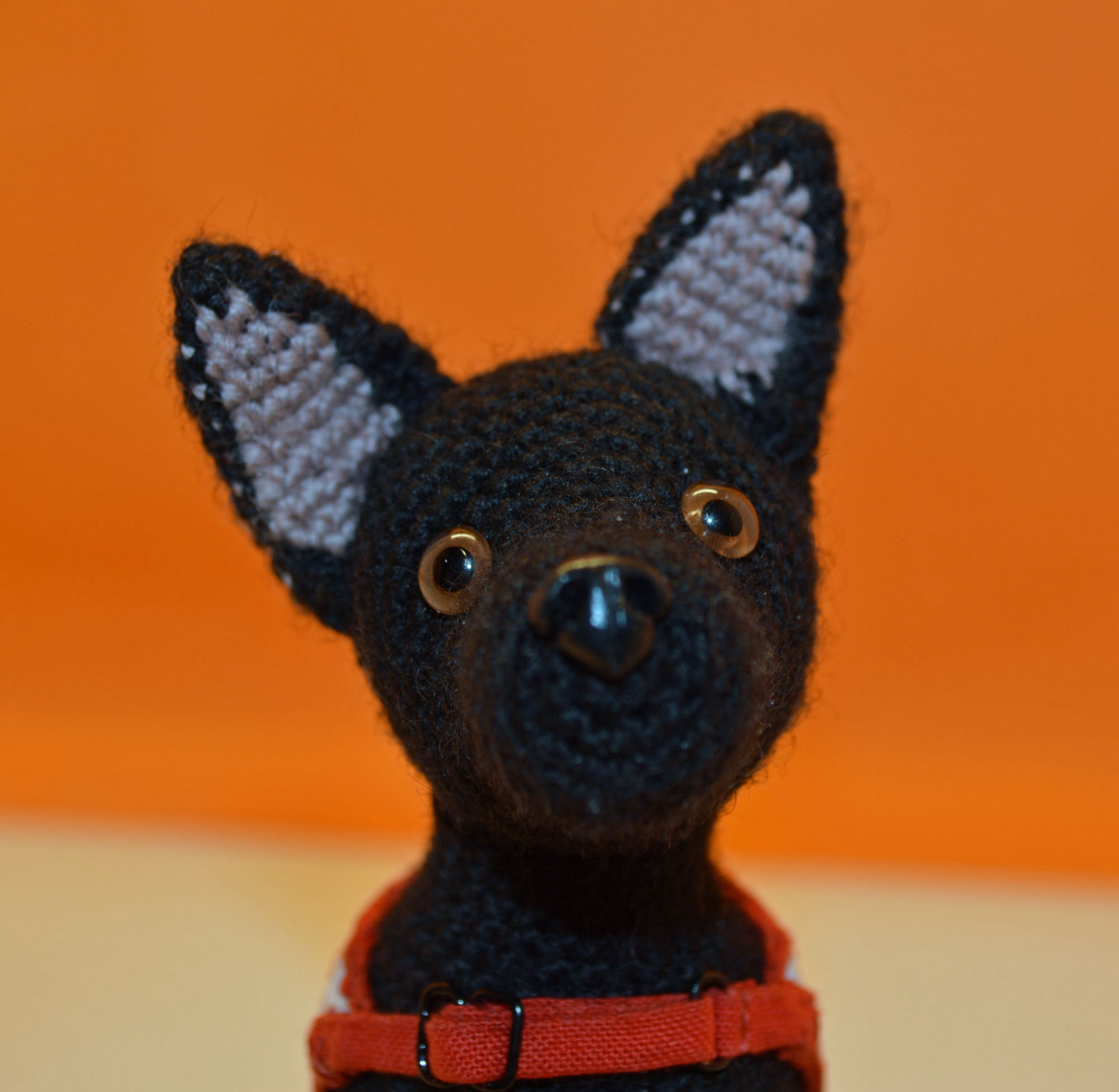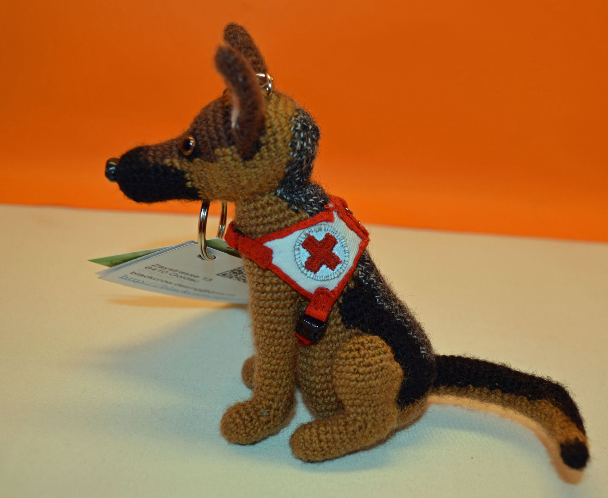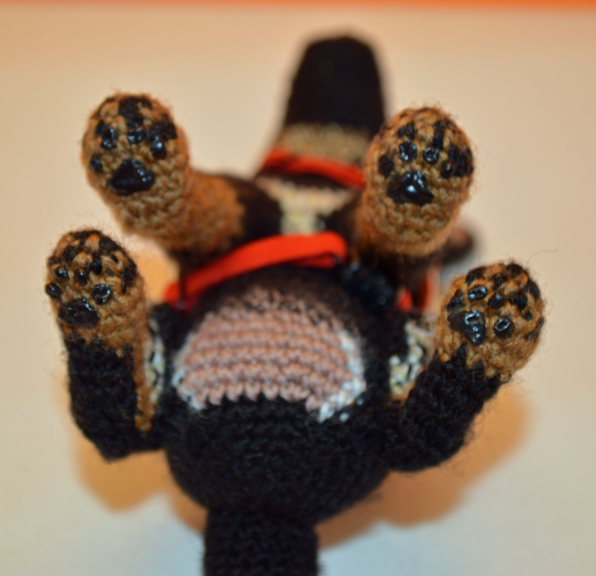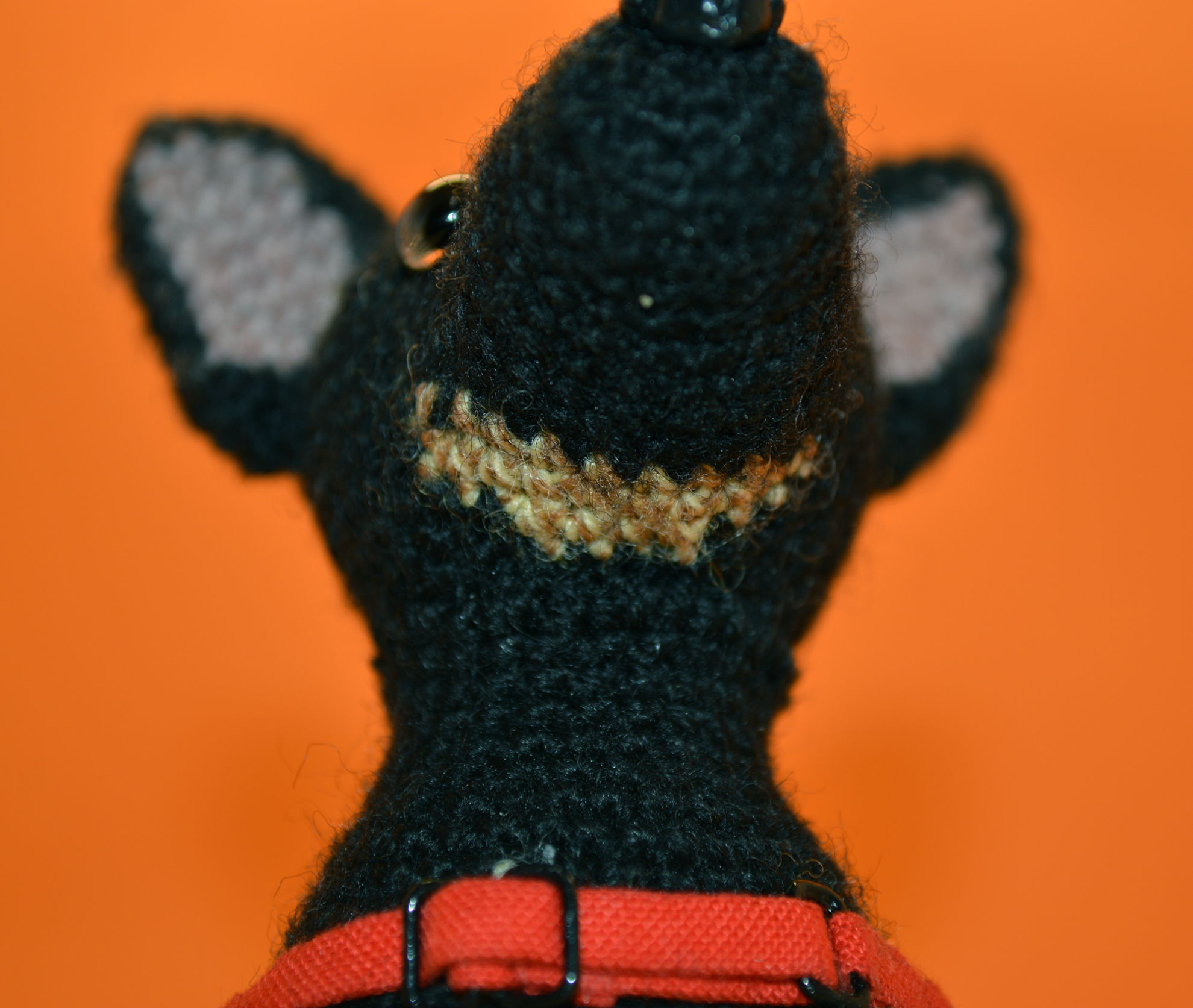 Material: Wolle verschiedene, Glasaugen, Hundenase Fimo (selbst gemacht), Bauernmalfarbe, Bastelwatte