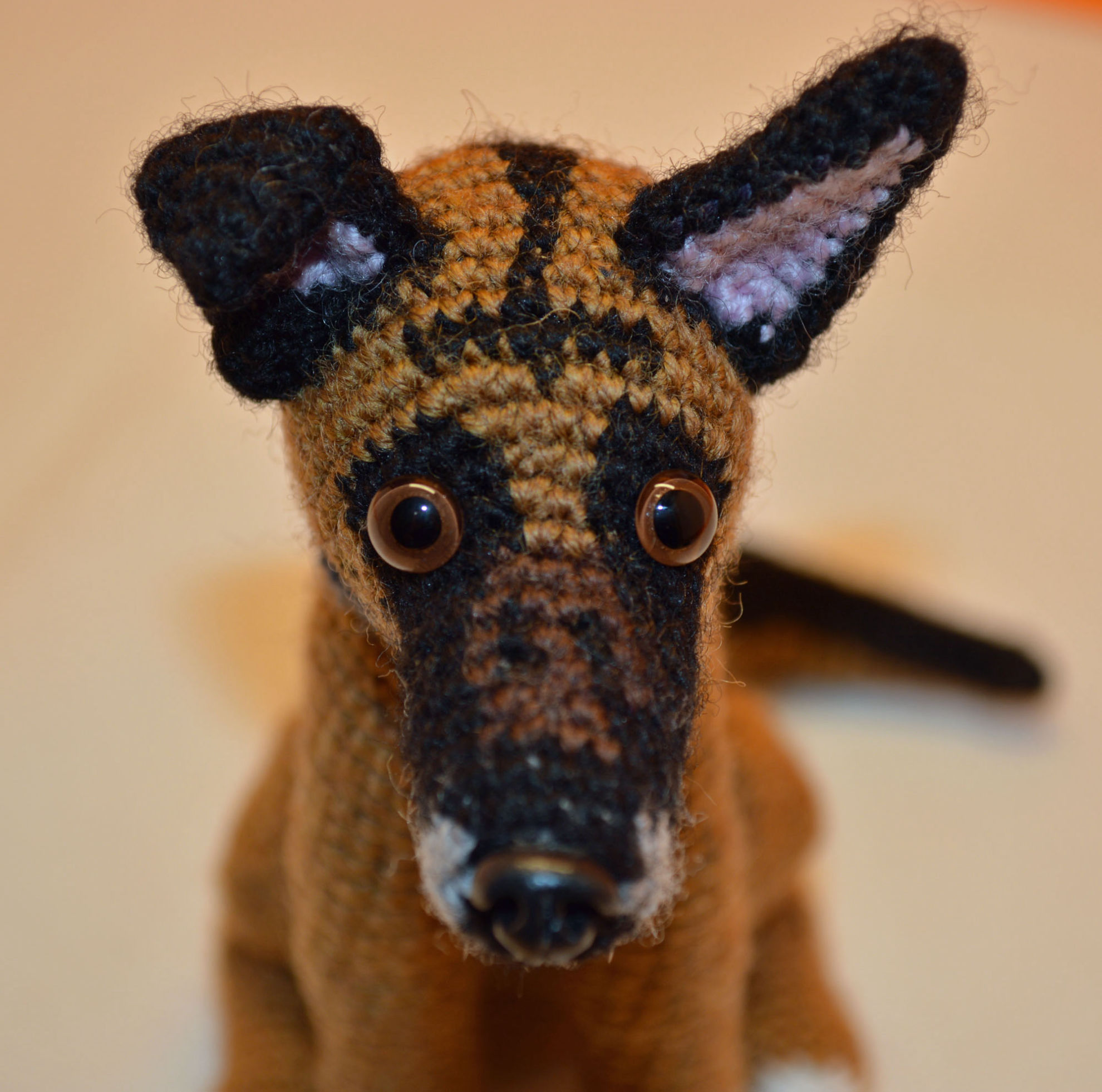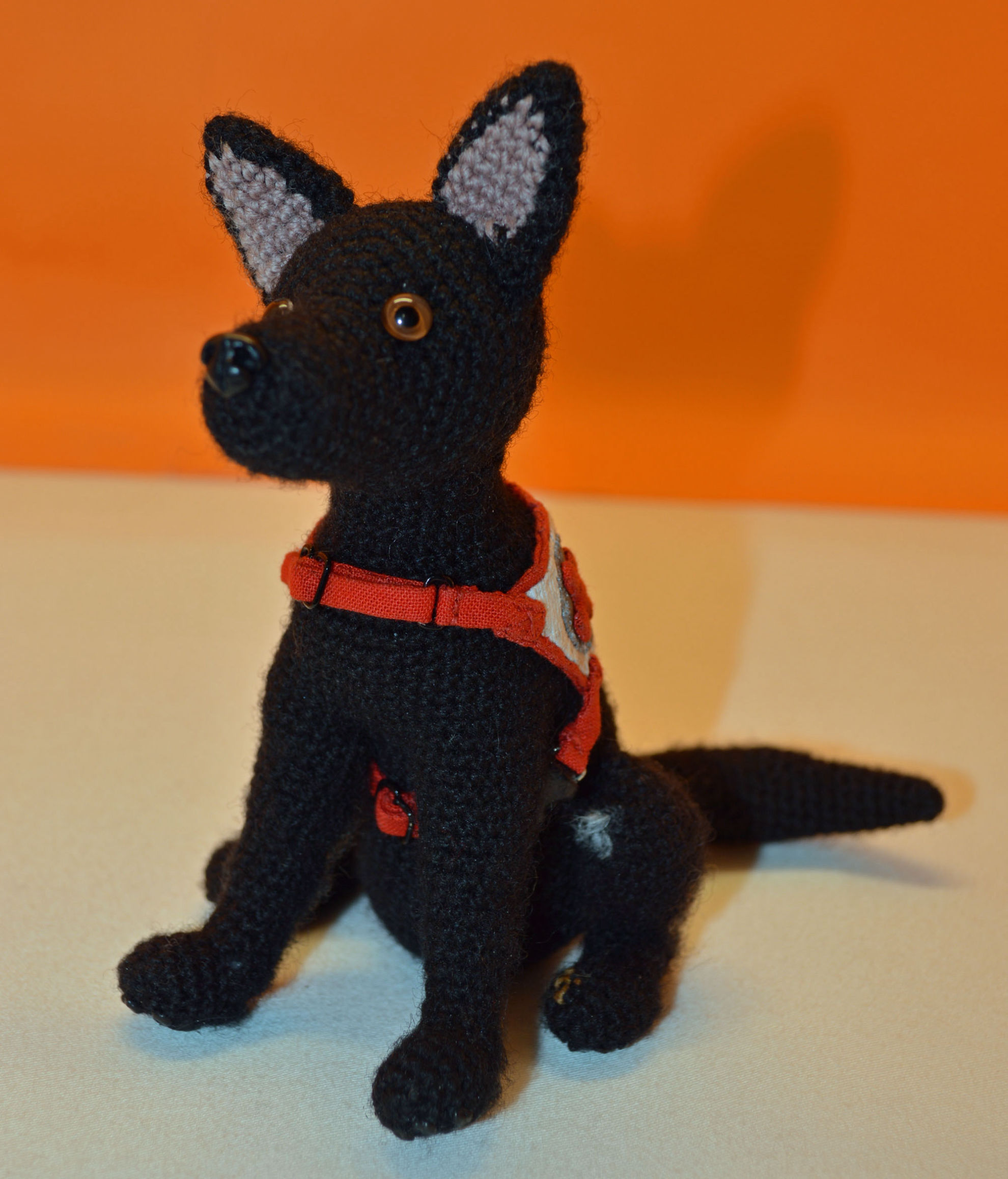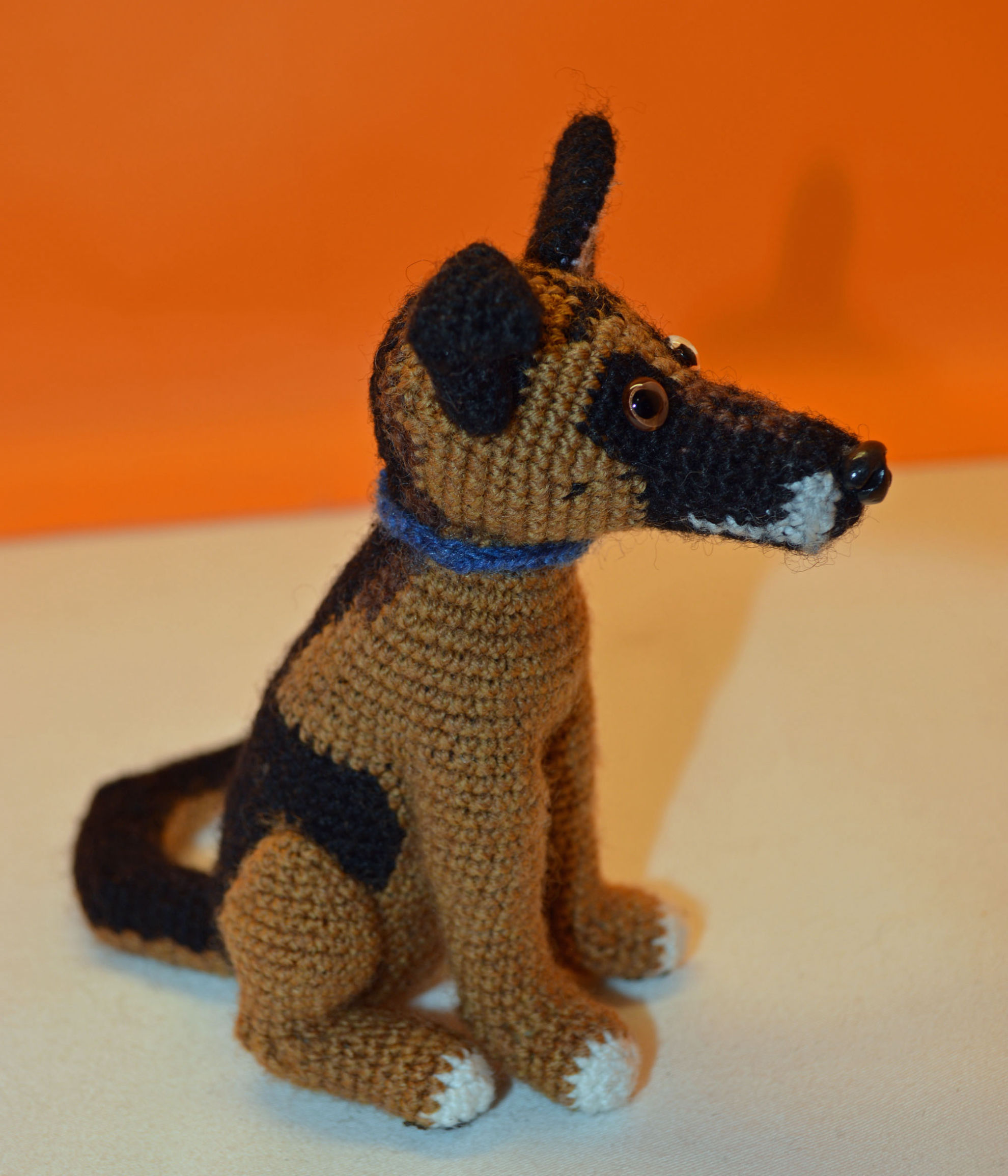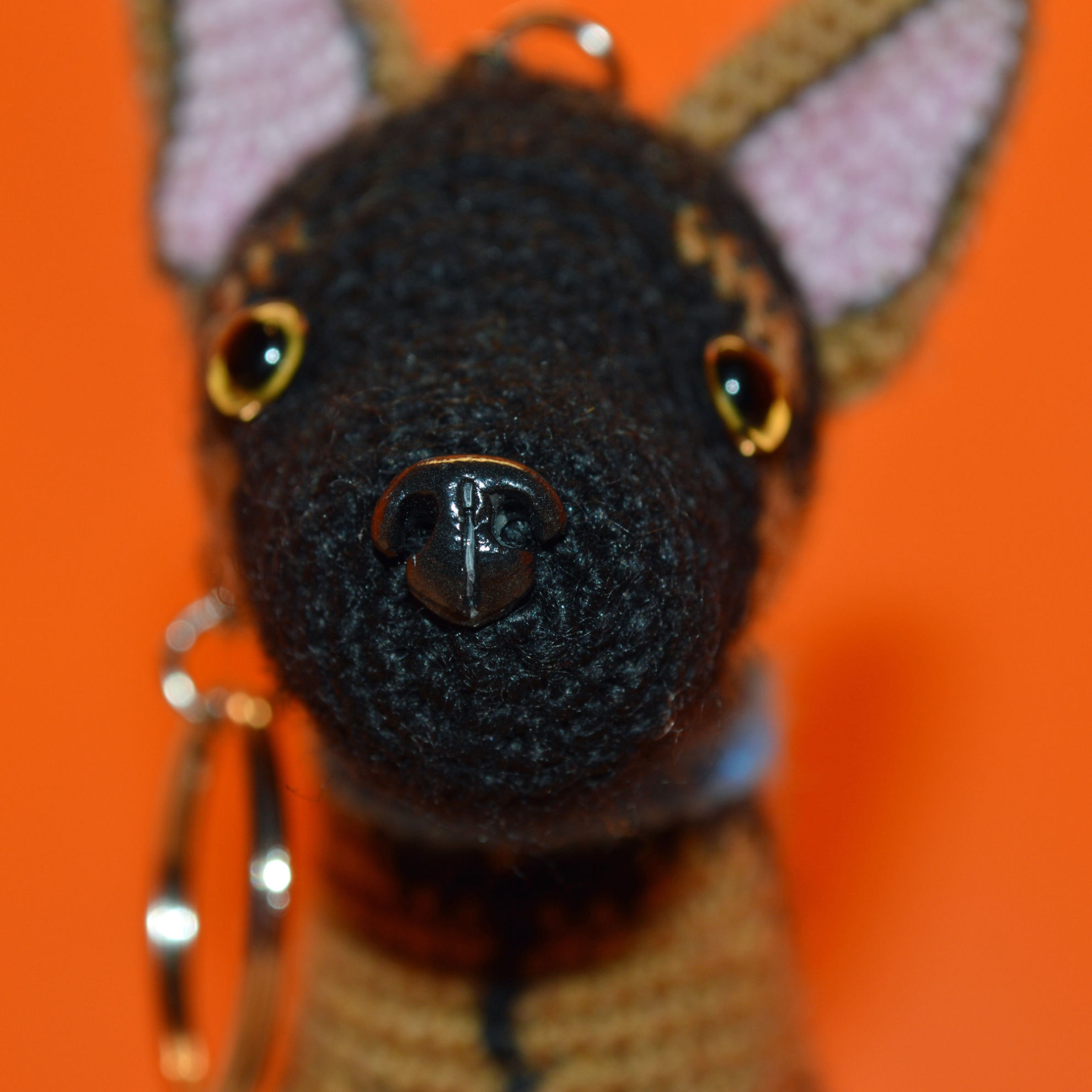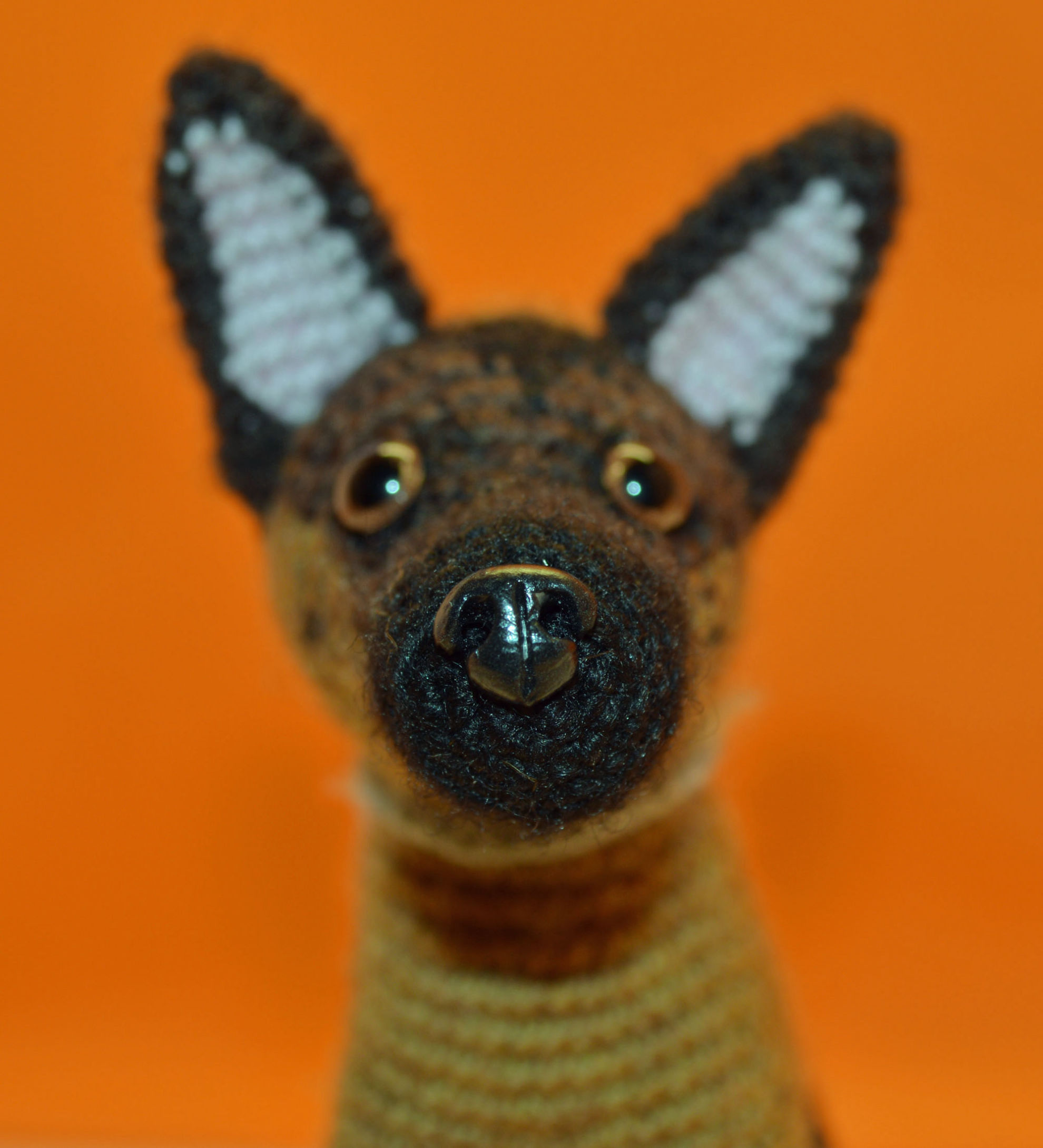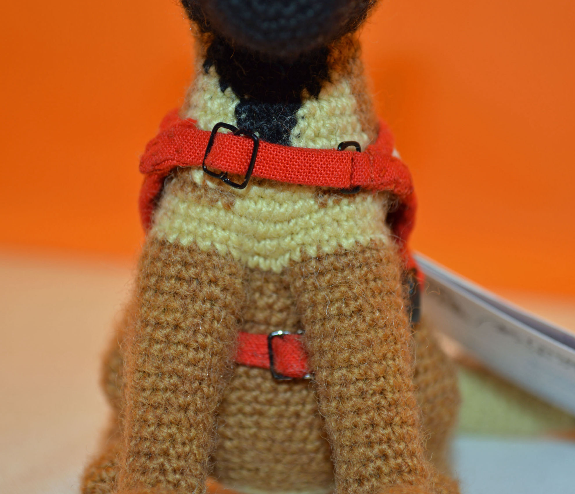 Material: Wolle verschiedene, Glasaugen, Hundenase Fimo (selbst gemacht), Bauernmalfarbe, Bastelwatte