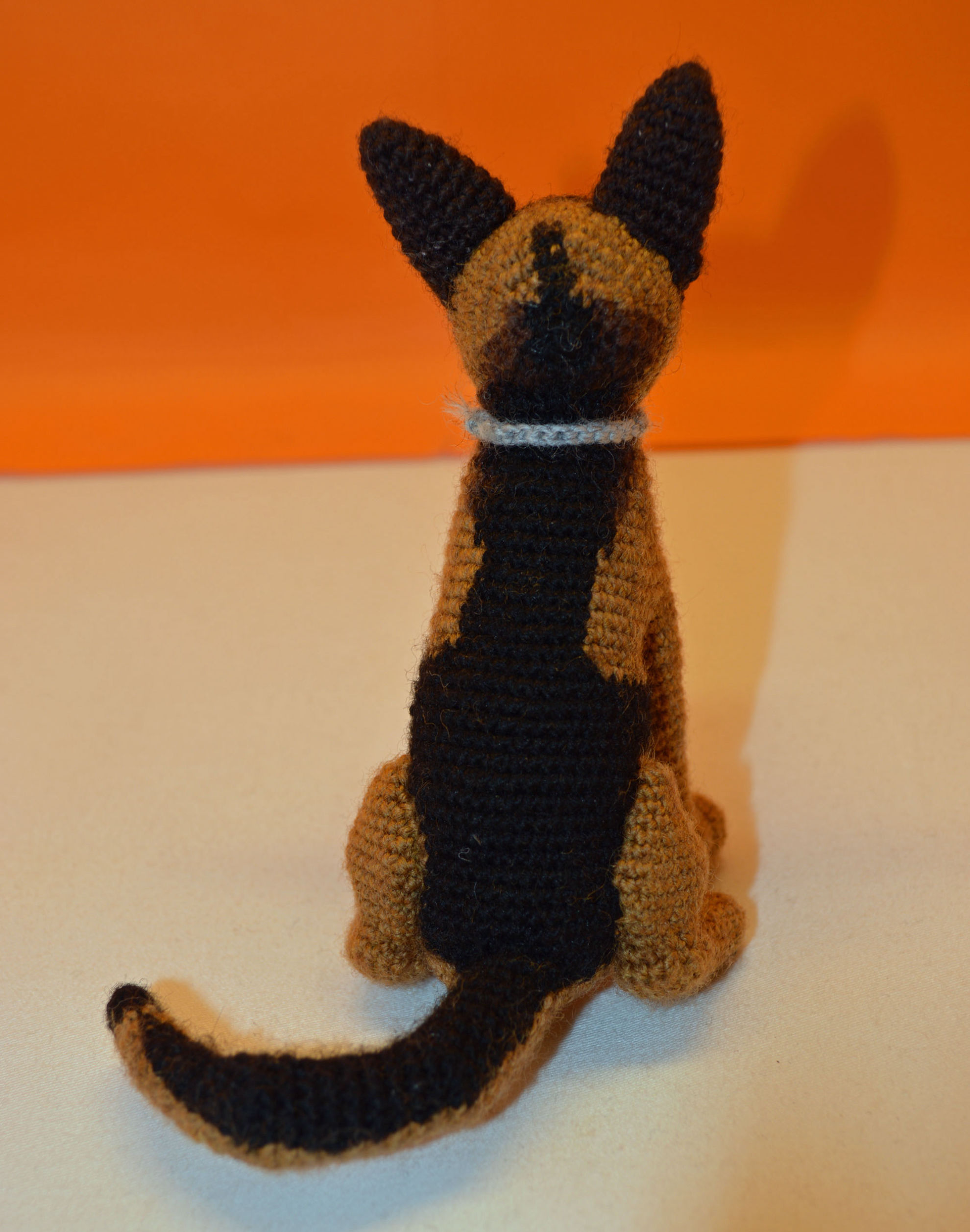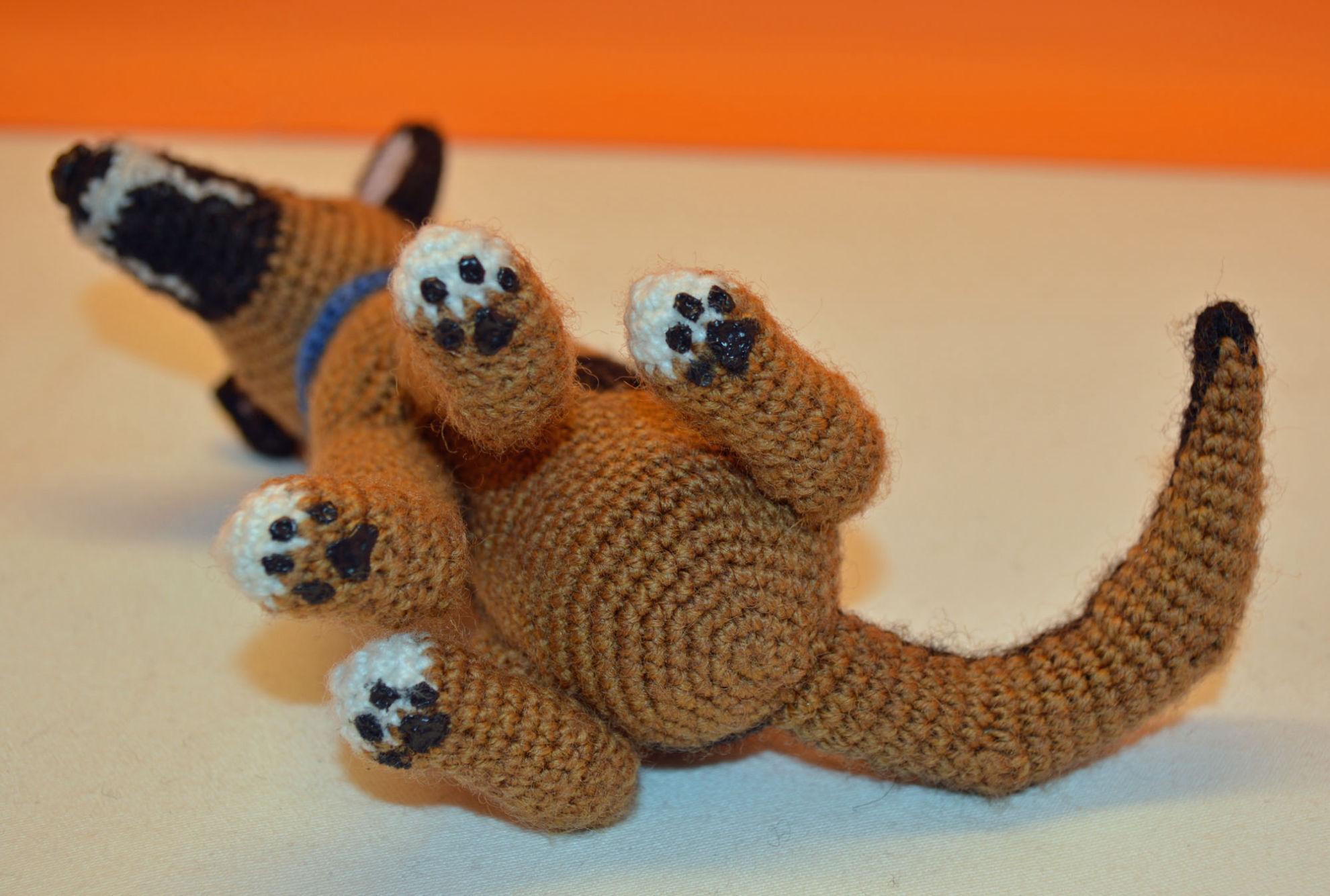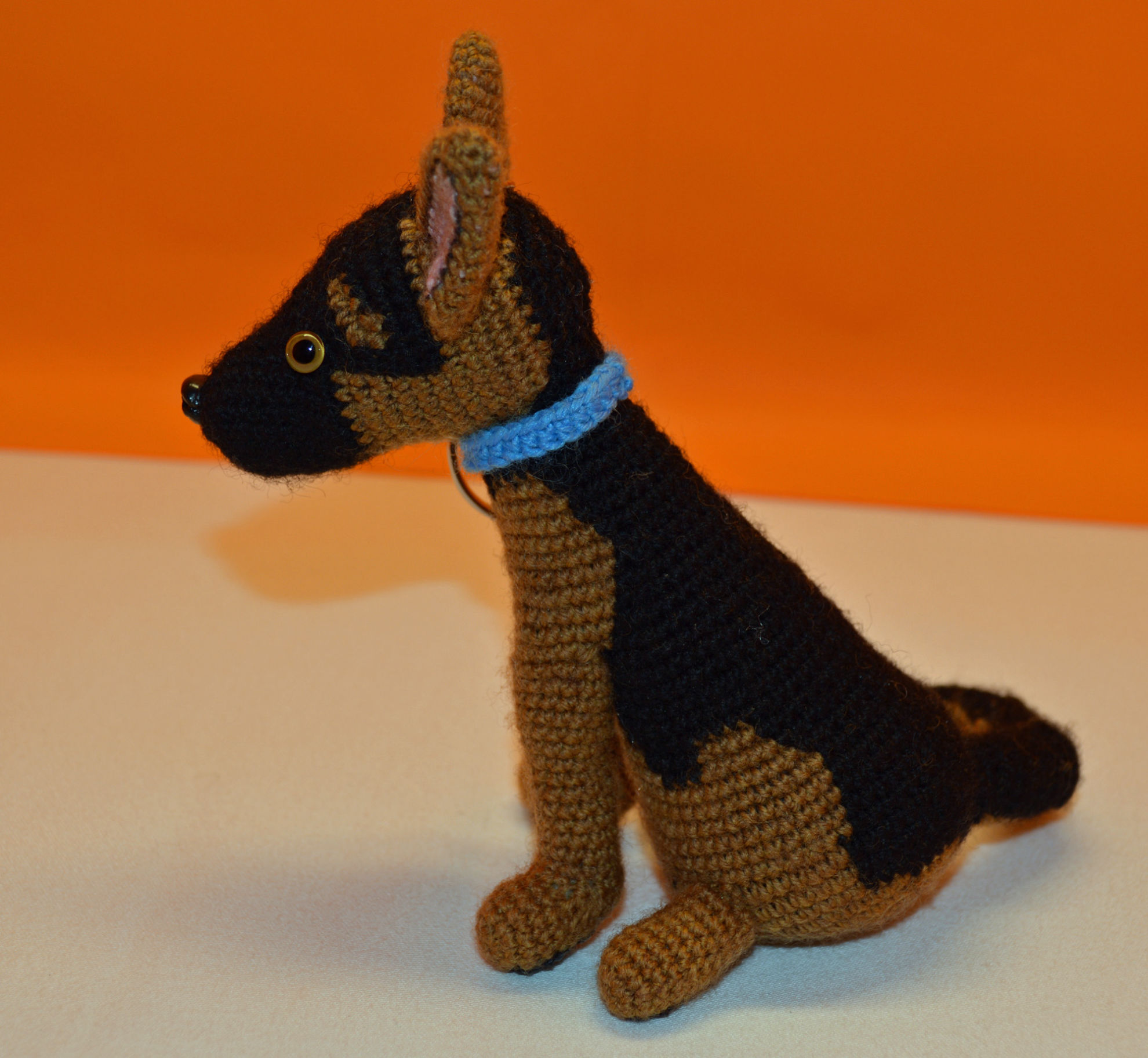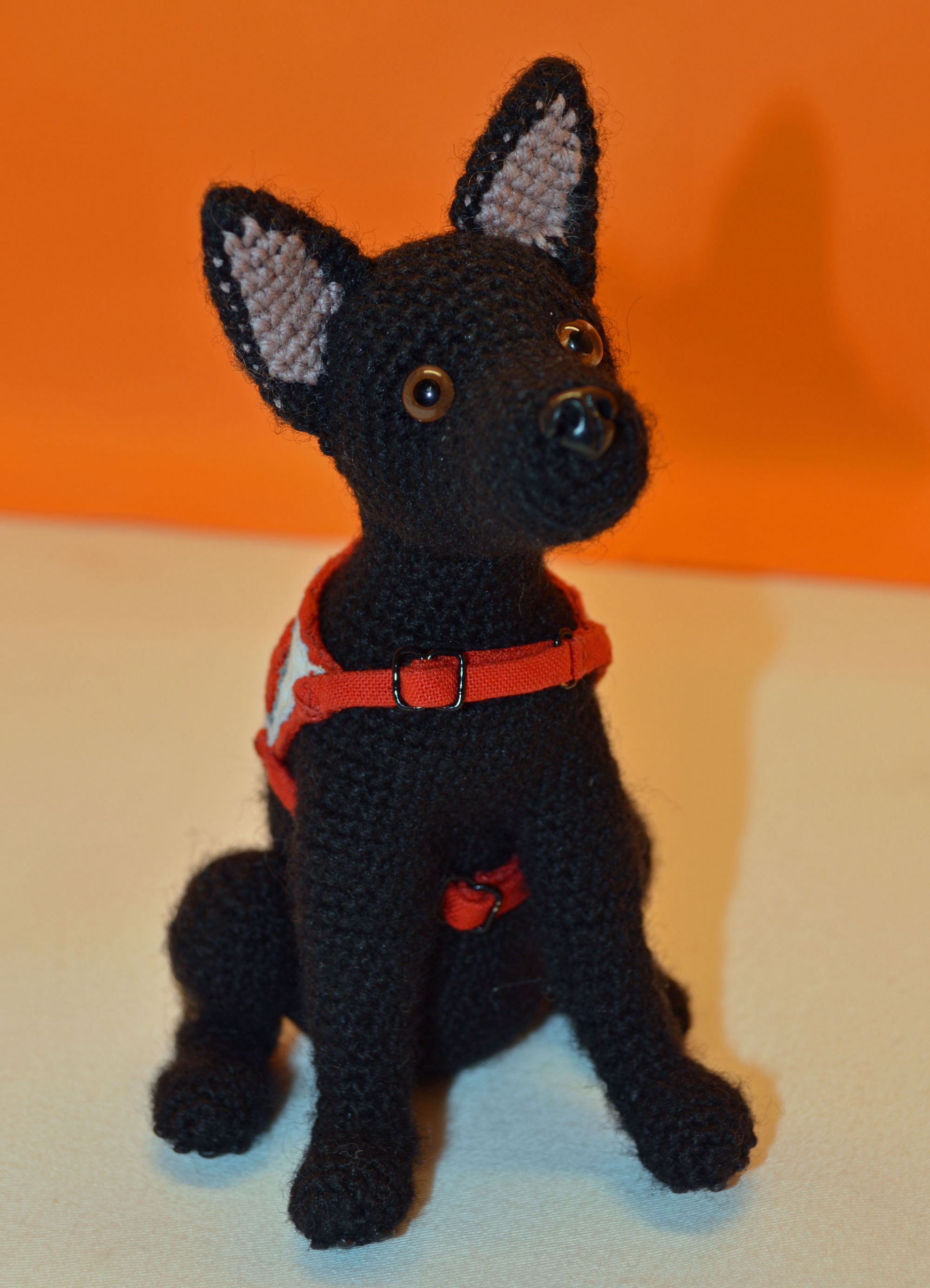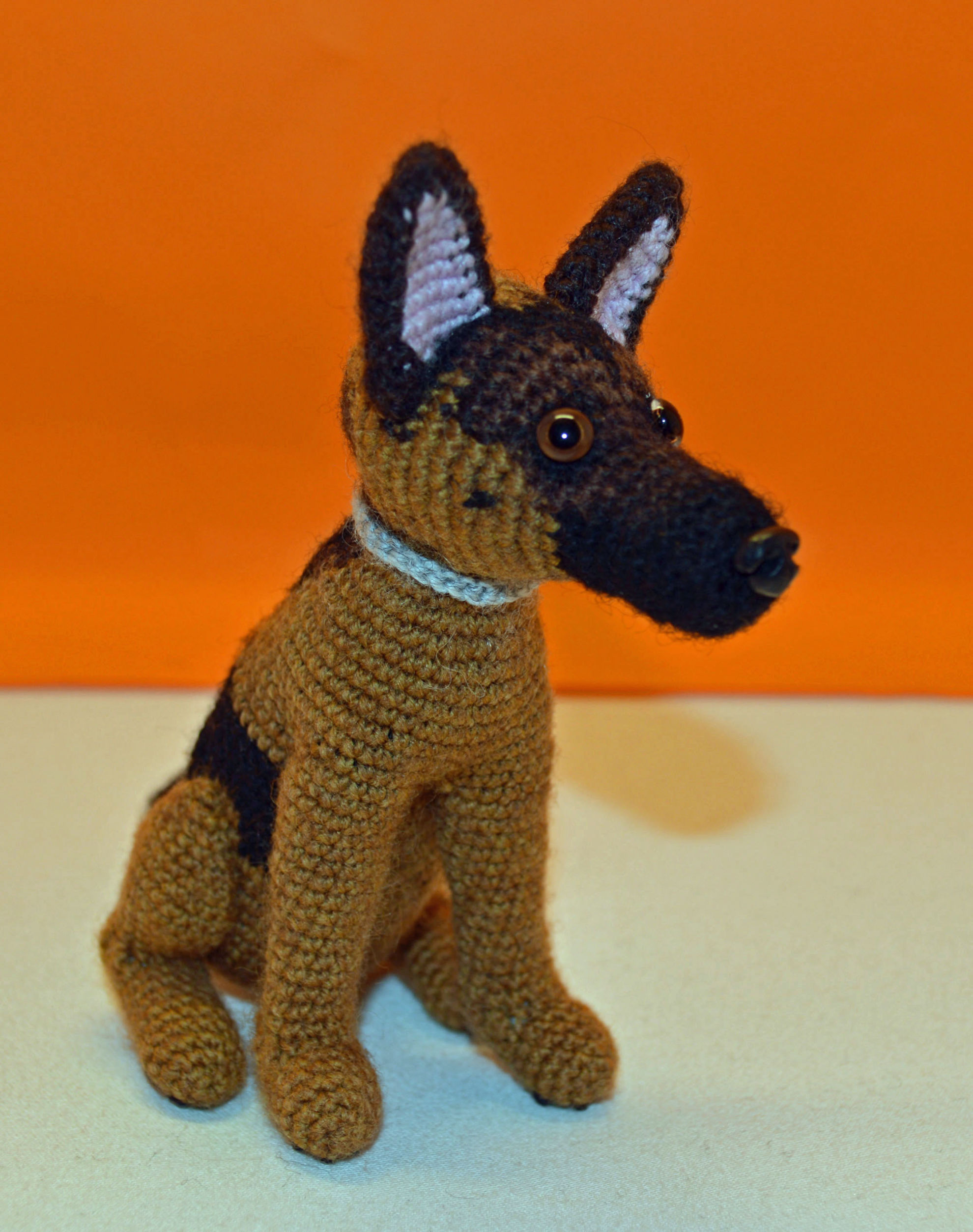 Material: Wolle verschiedene, Glasaugen, Hundenase Fimo (selbst gemacht), Bauernmalfarbe, Bastelwatte