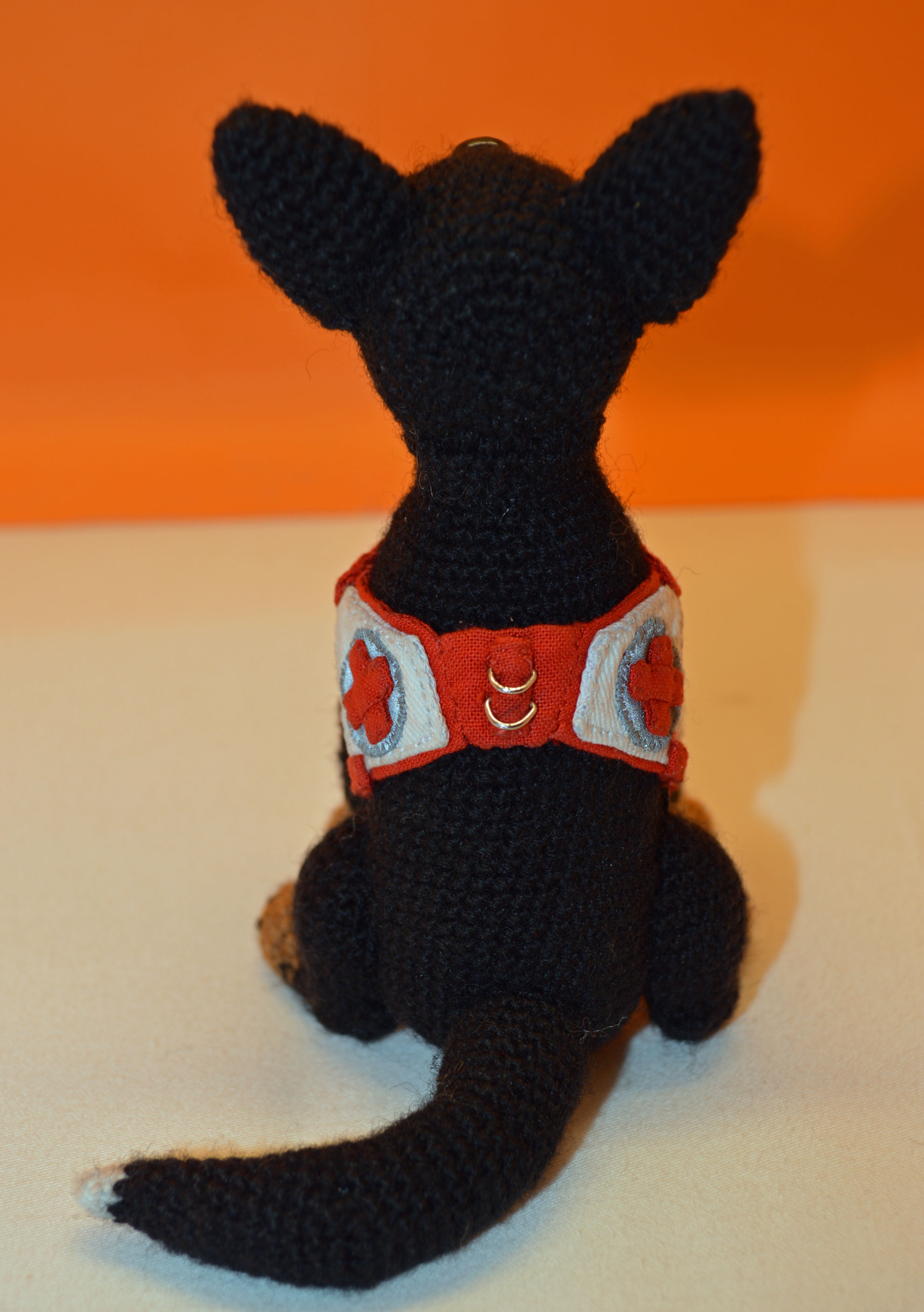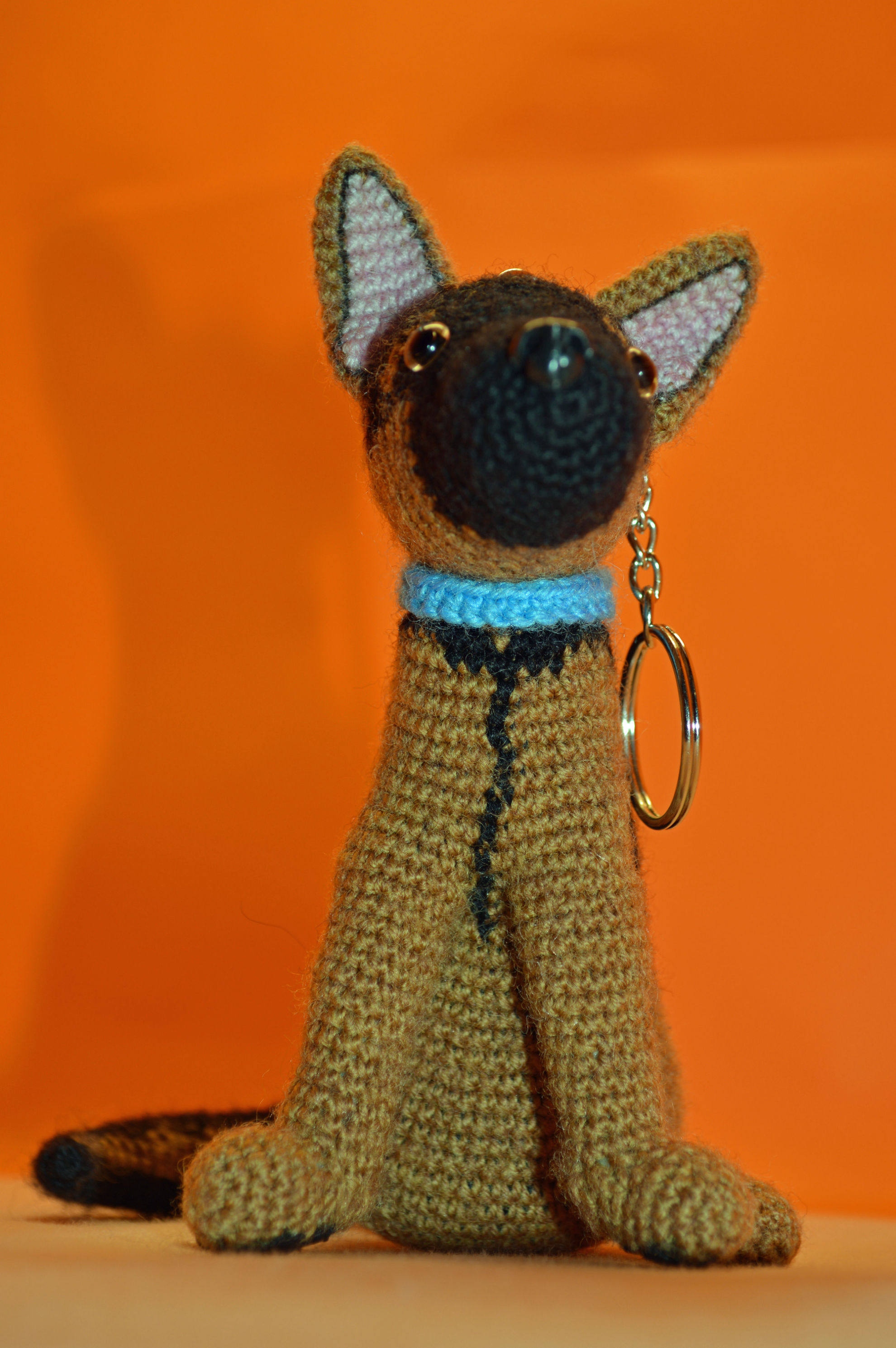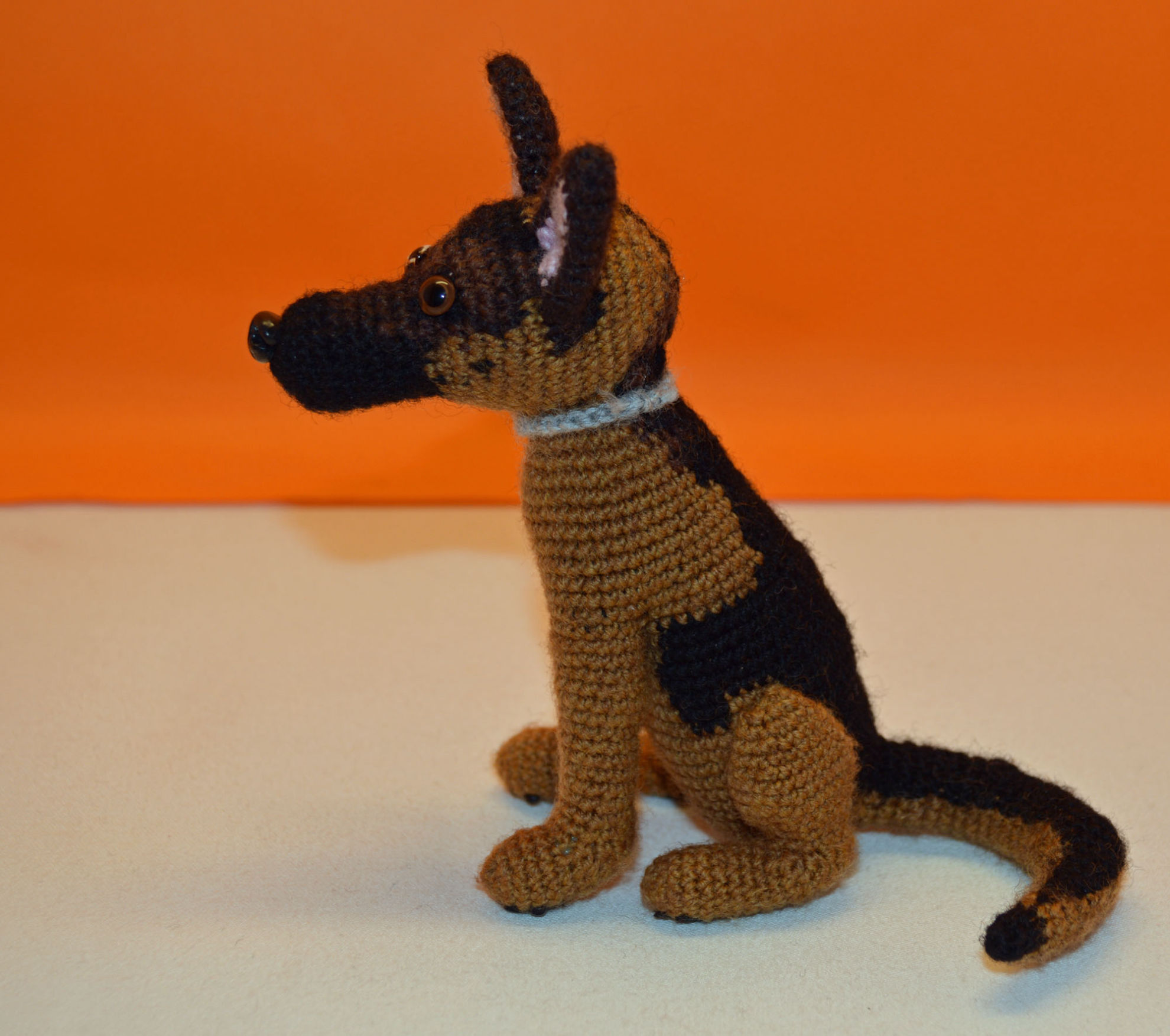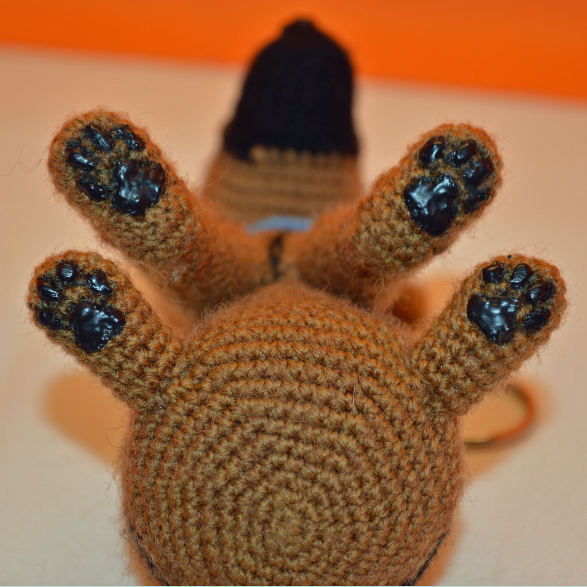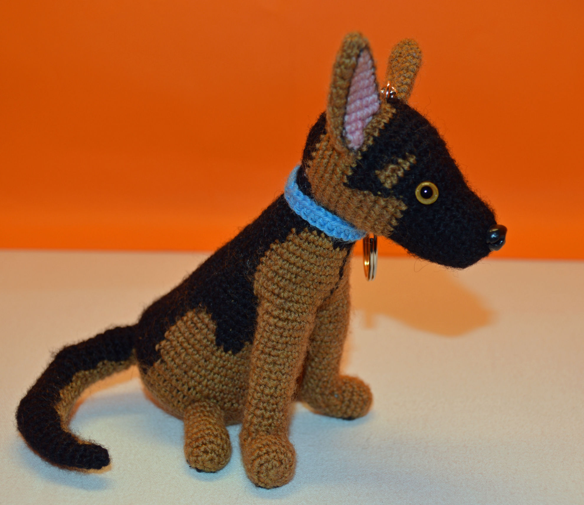 Material: Wolle verschiedene, Glasaugen, Hundenase Fimo (selbst gemacht), Bauernmalfarbe, Bastelwatte