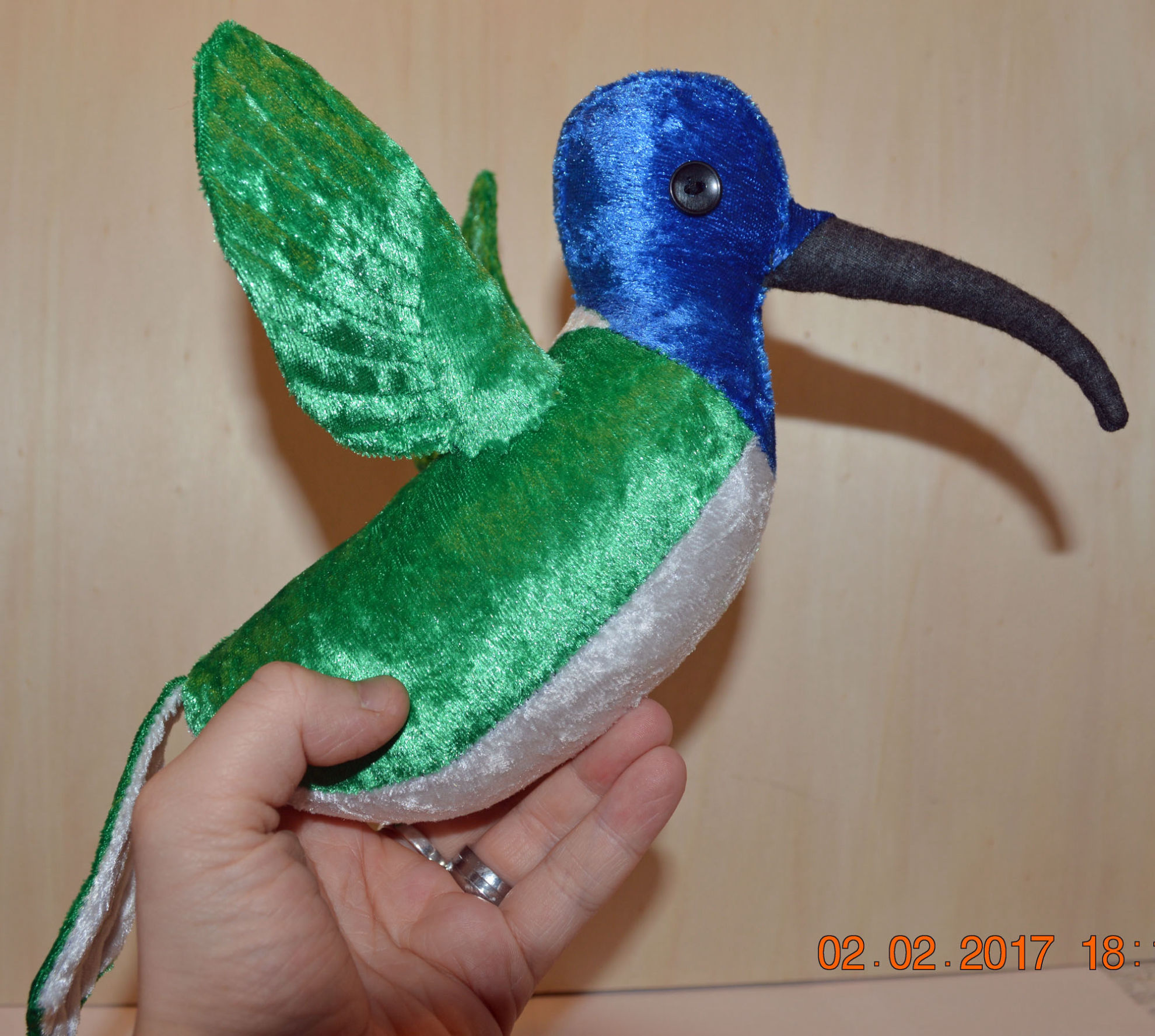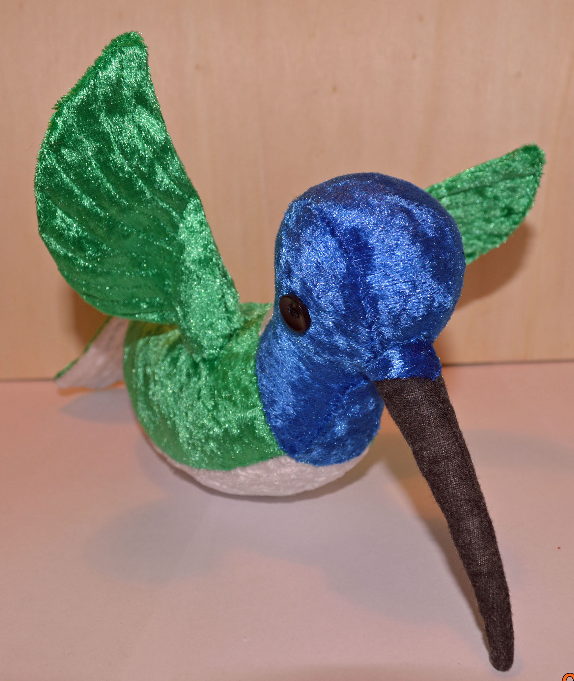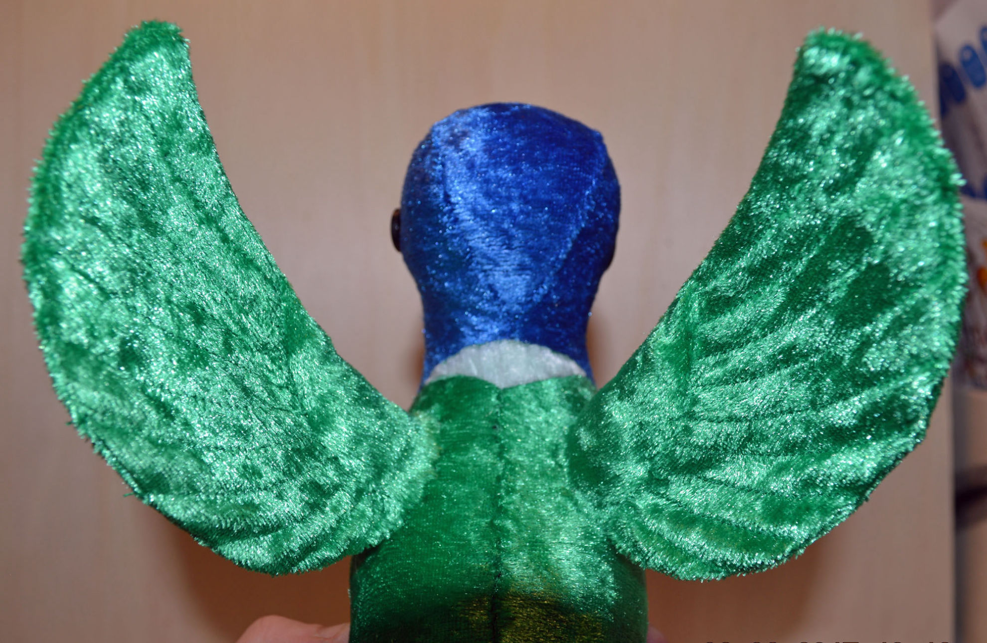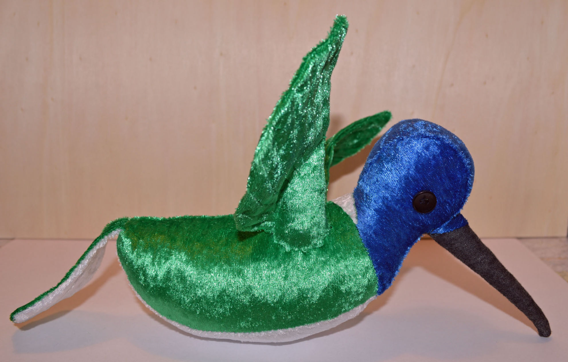 Material: Stoff Grün, Blau, Weiss, Jerseystoff Grau, Knöpfe, Bastelwatte