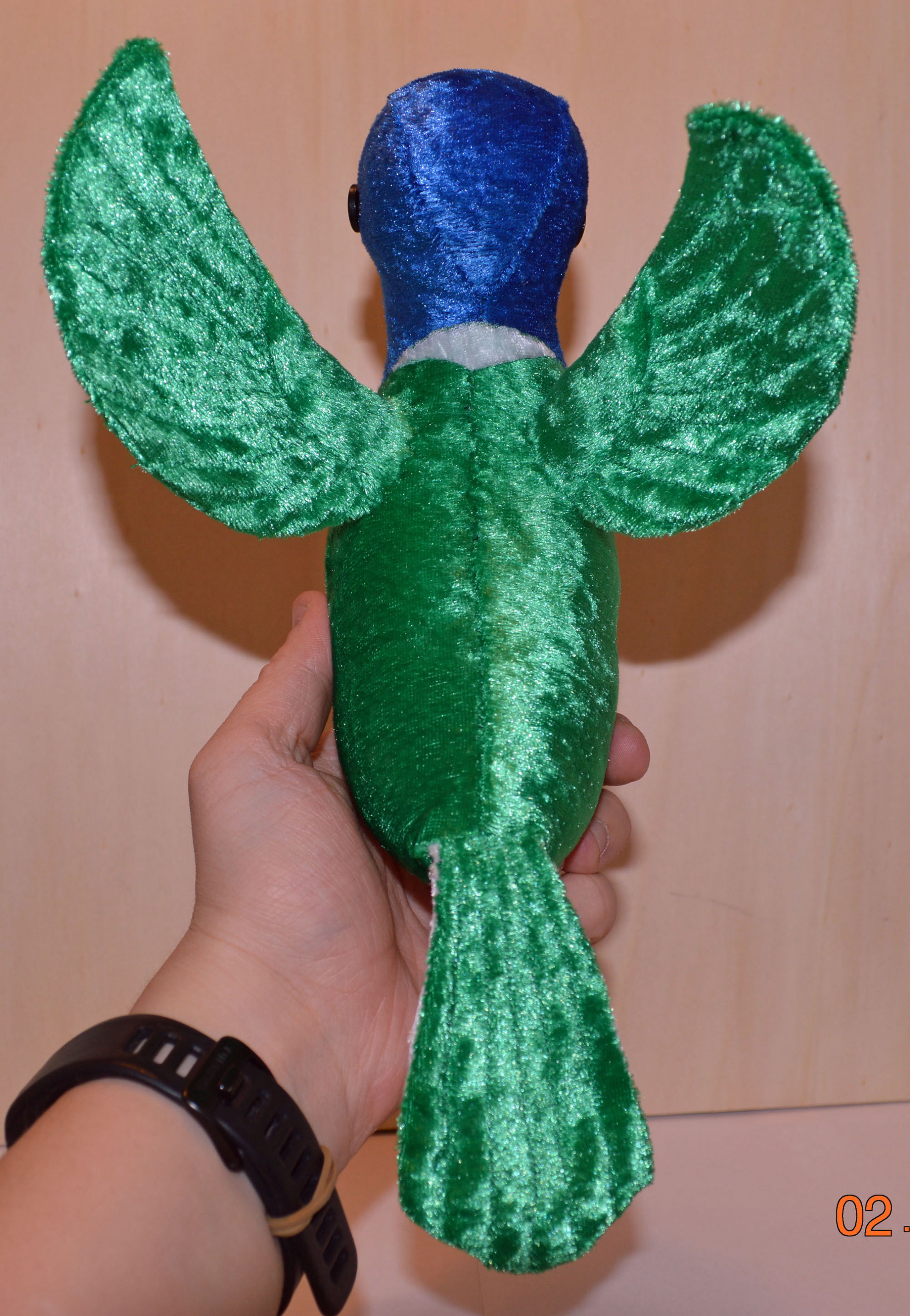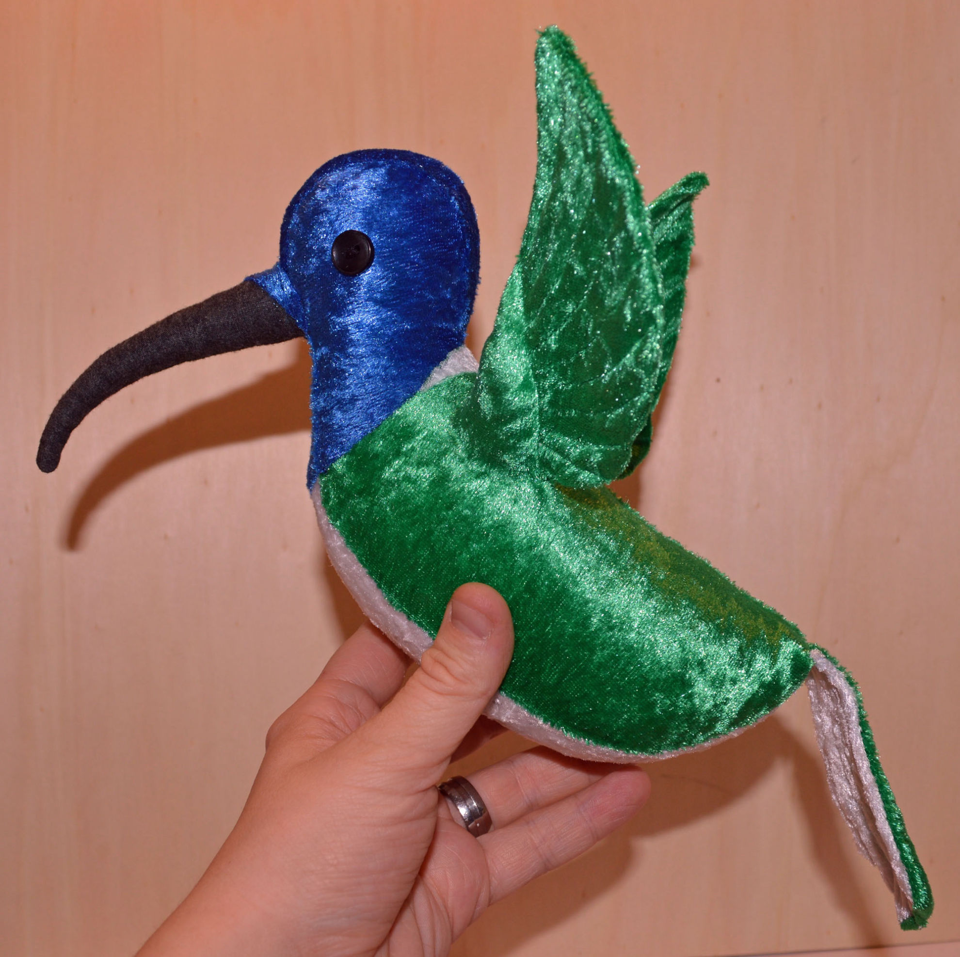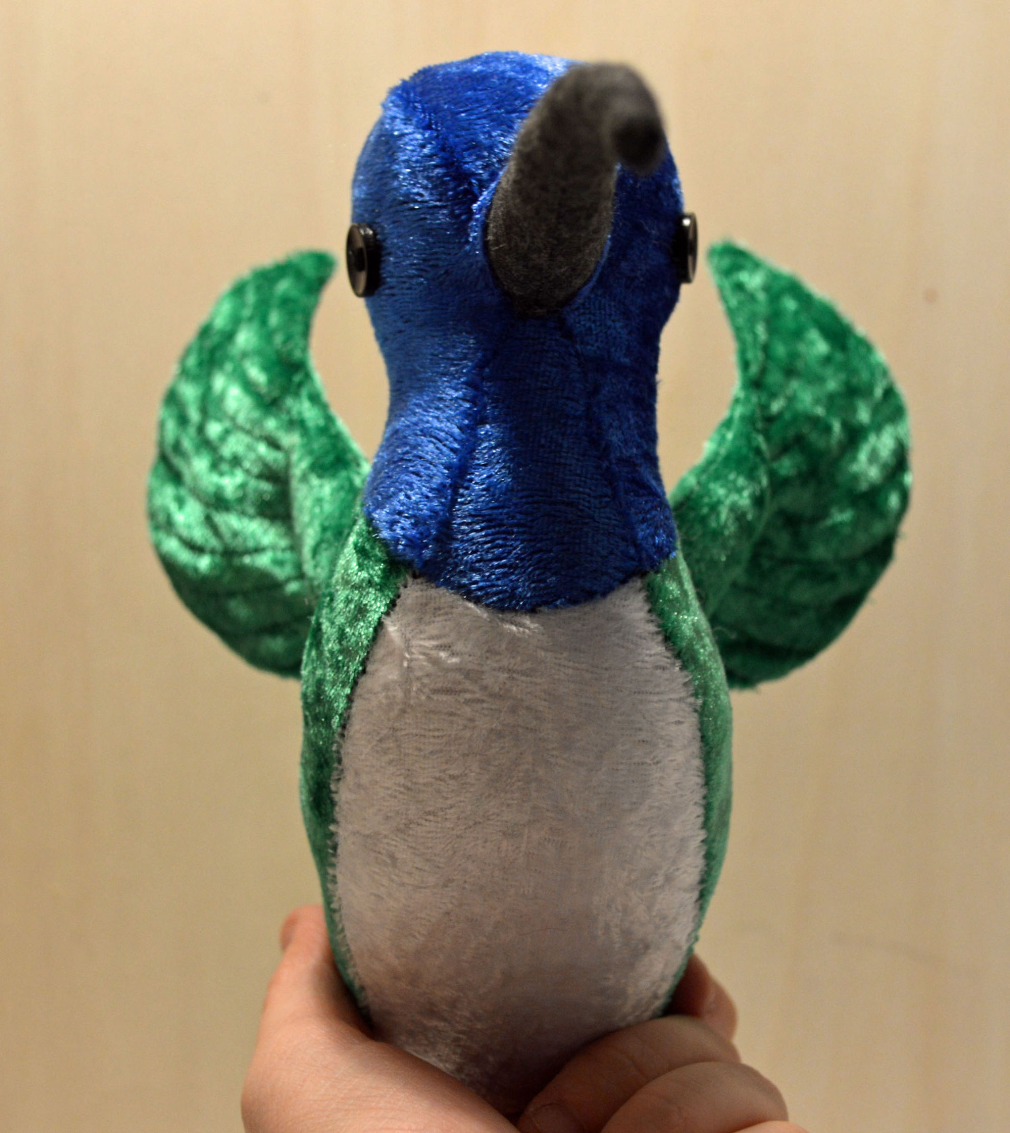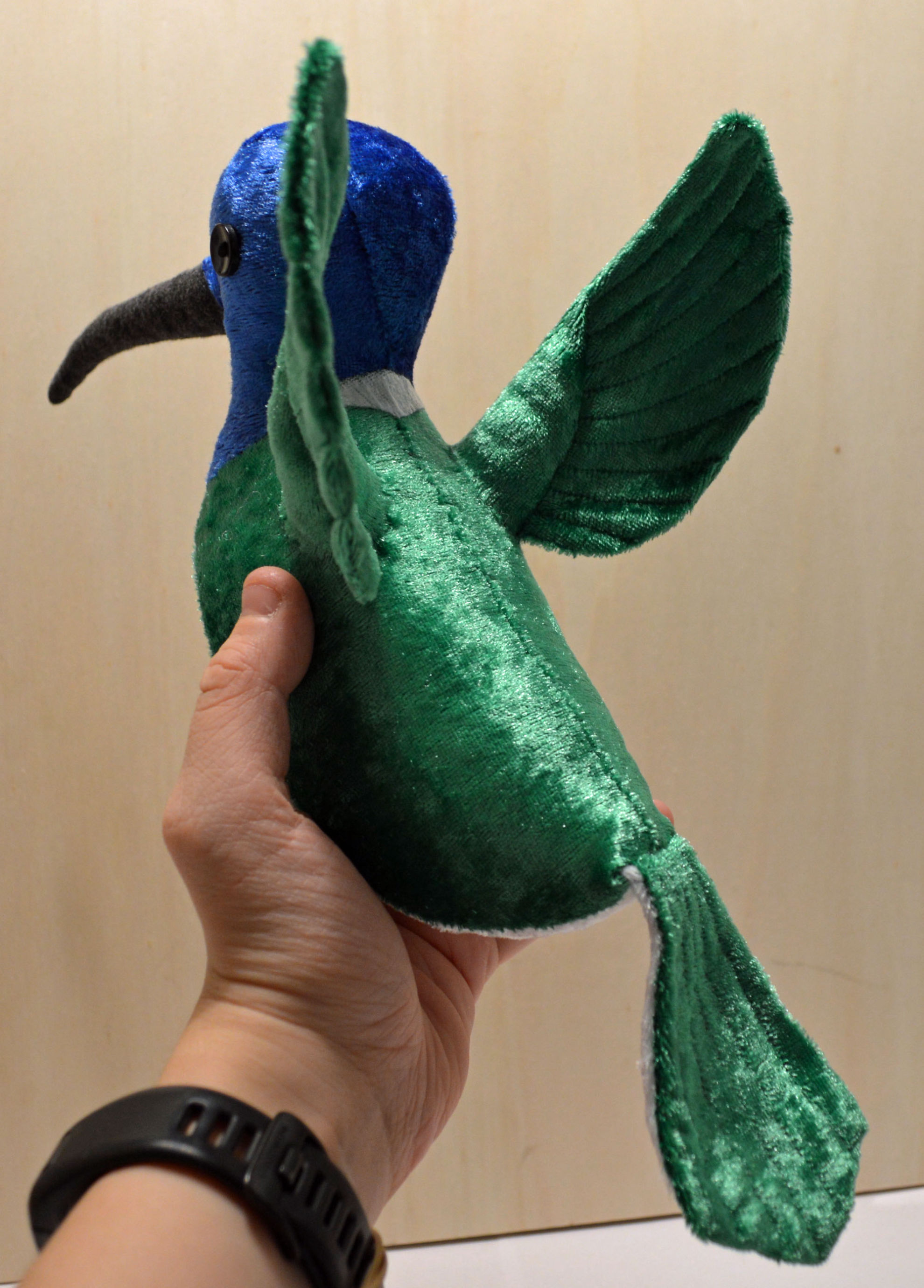 Material: Stoff Grün, Blau, Weiss, Jerseystoff Grau, Knöpfe, Bastelwatte