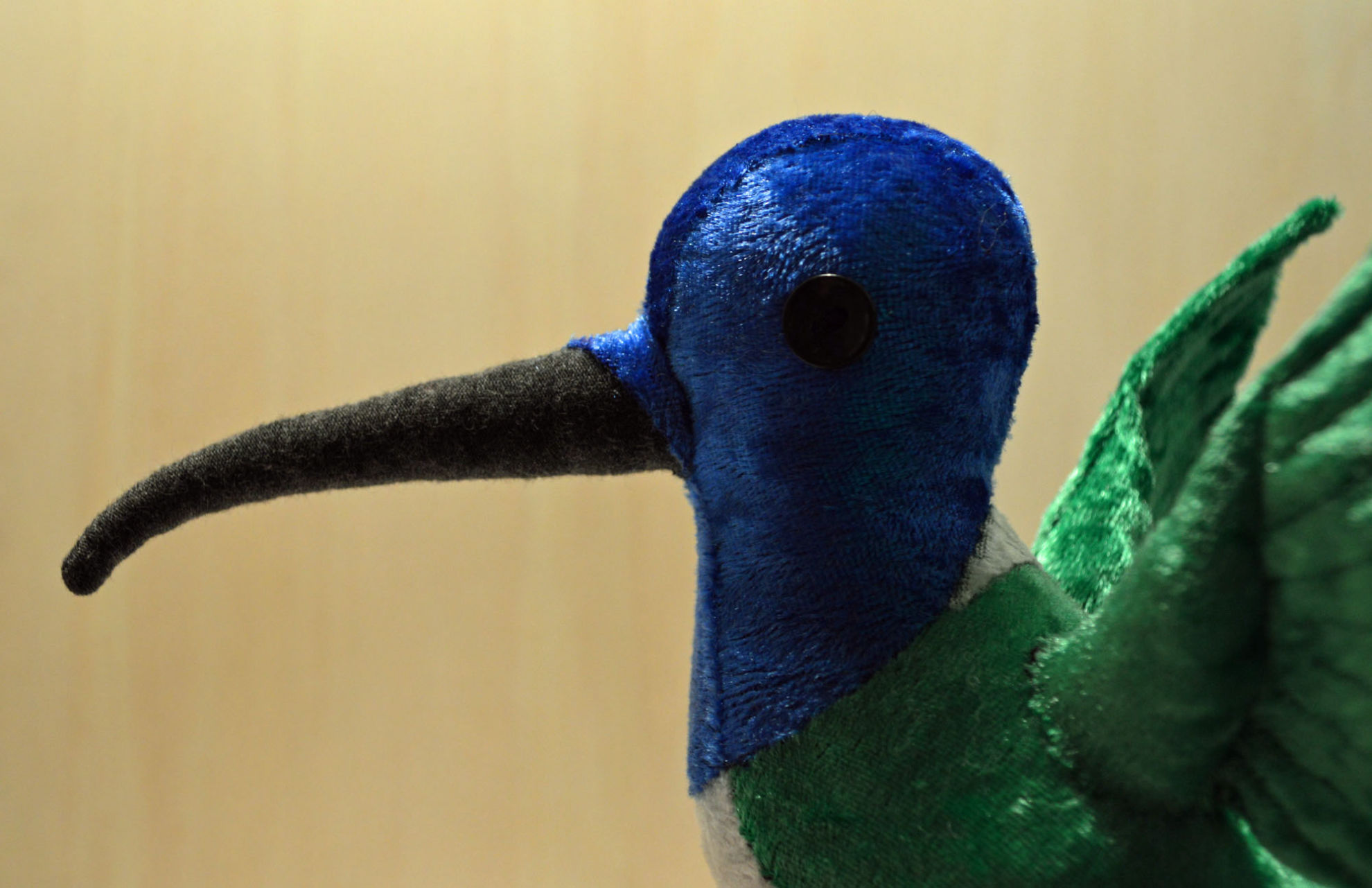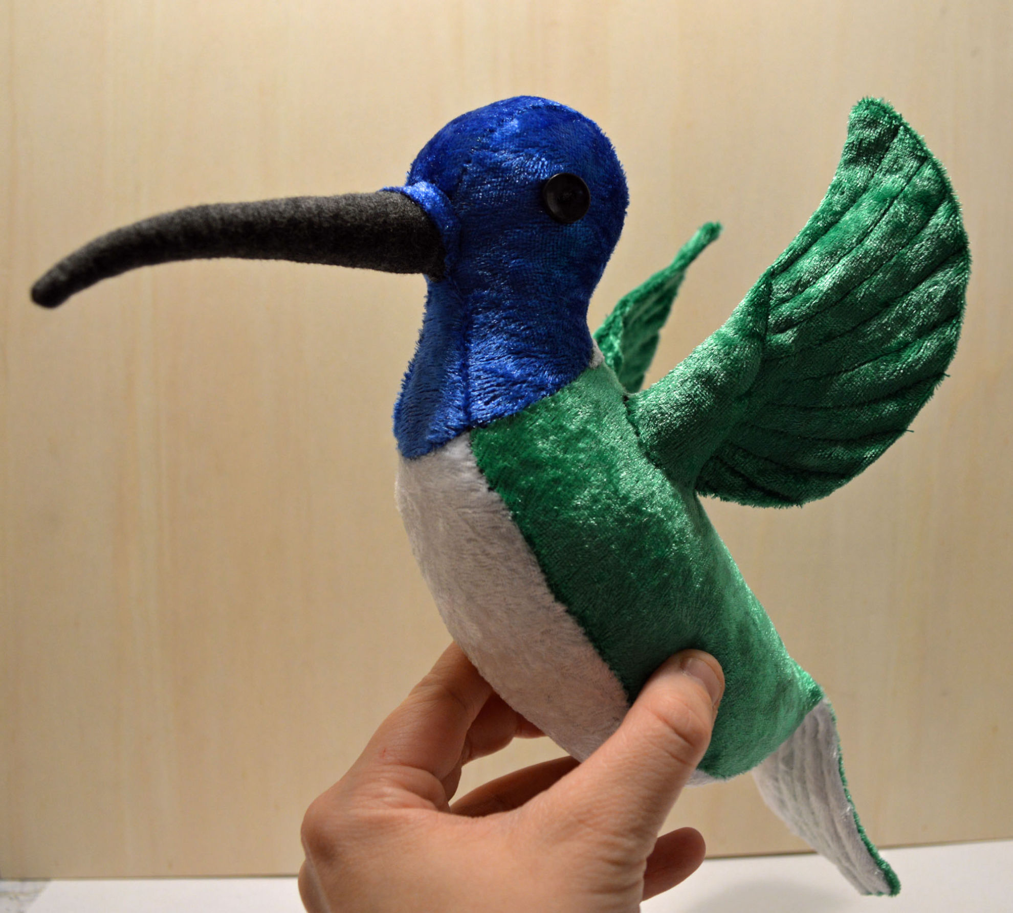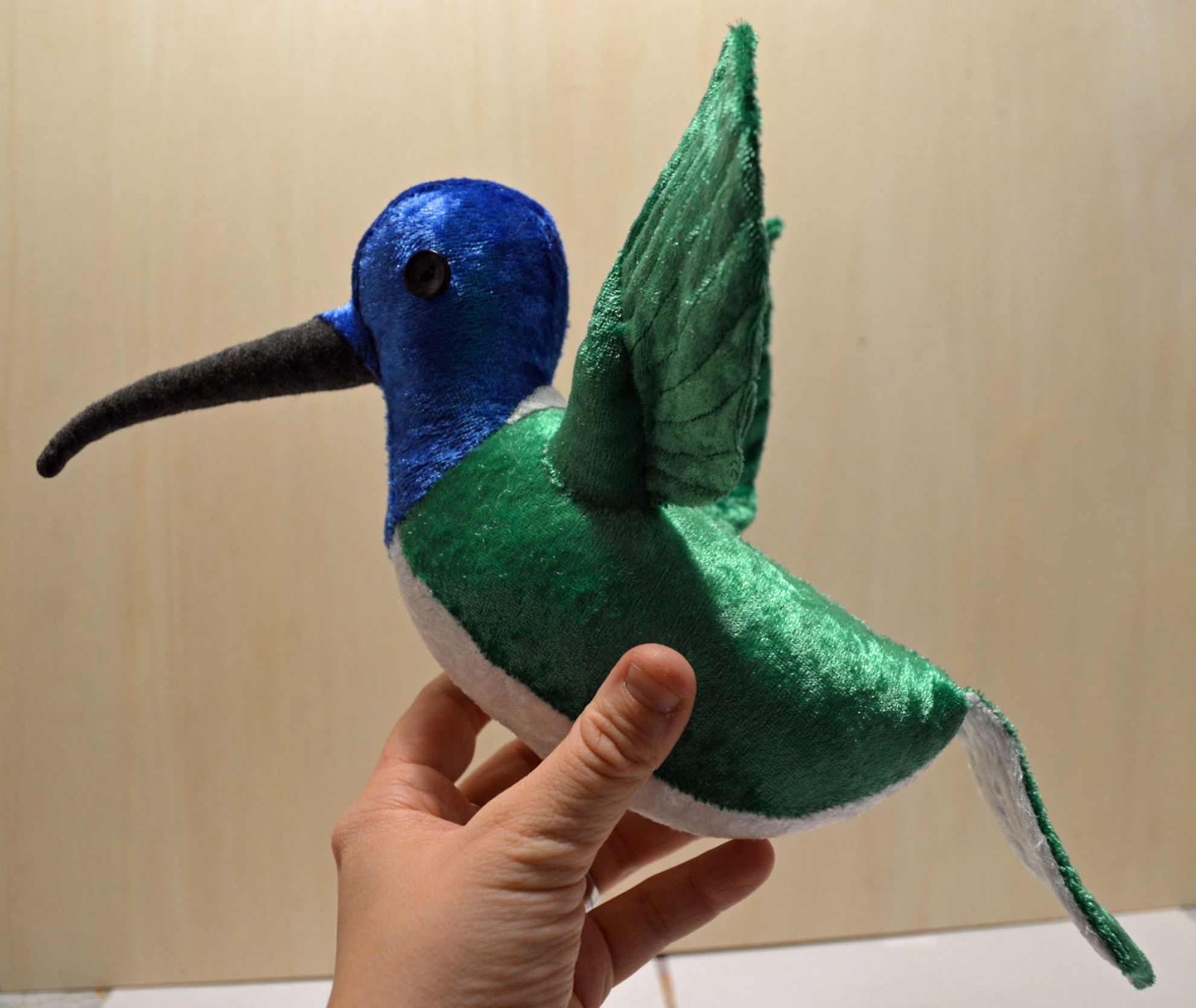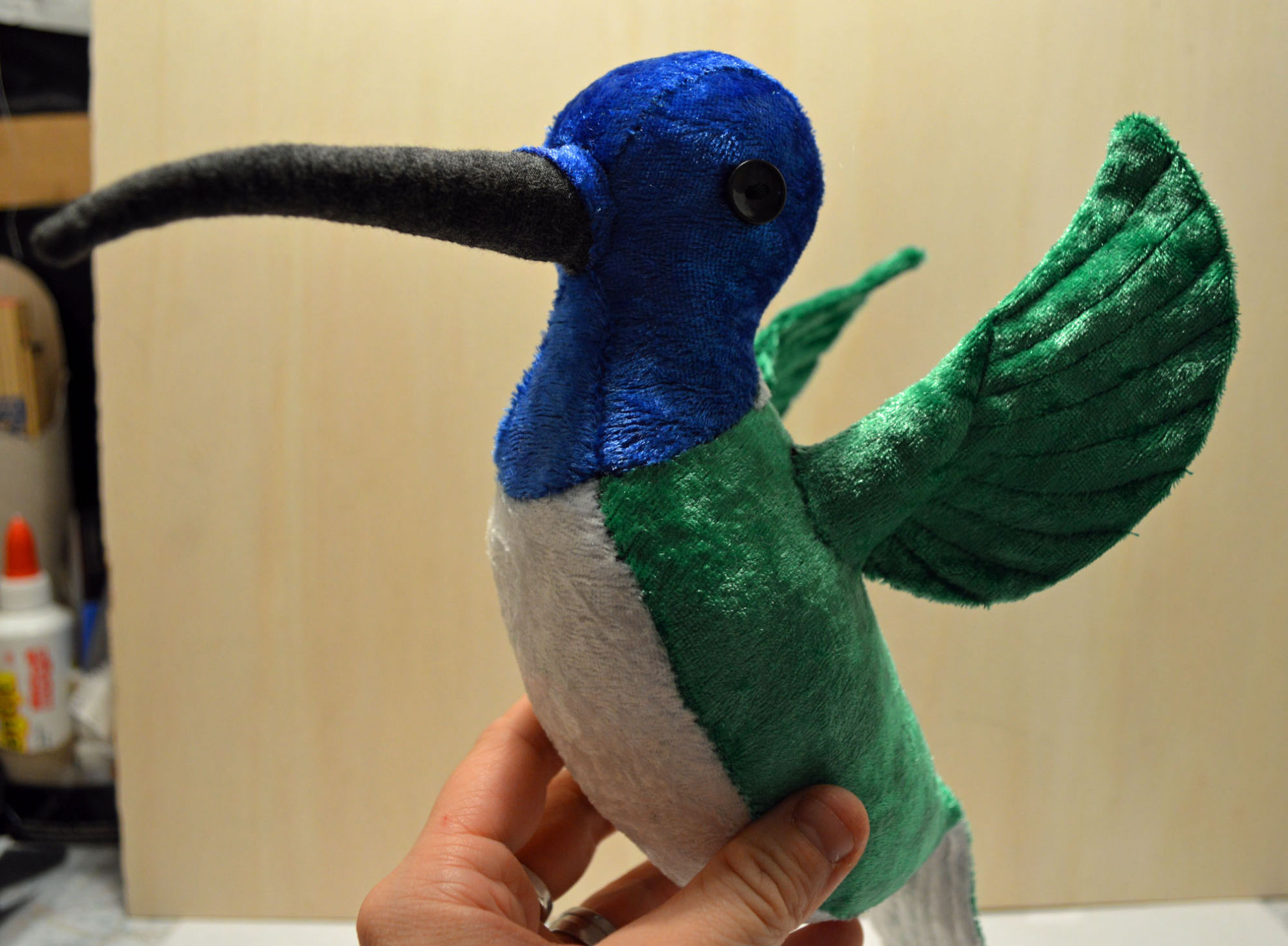 Material: Stoff Grün, Blau, Weiss, Jerseystoff Grau, Knöpfe, Bastelwatte