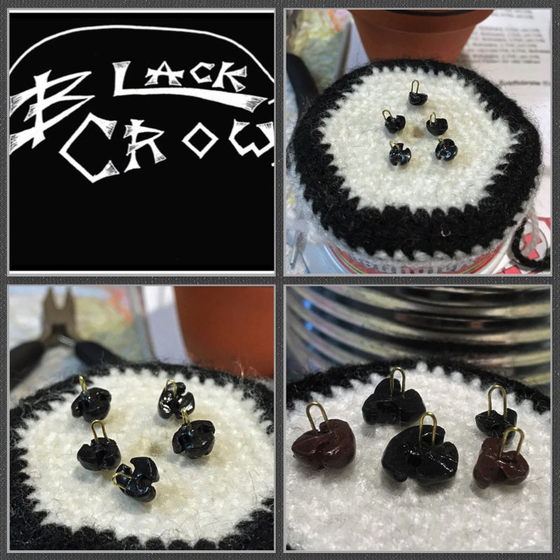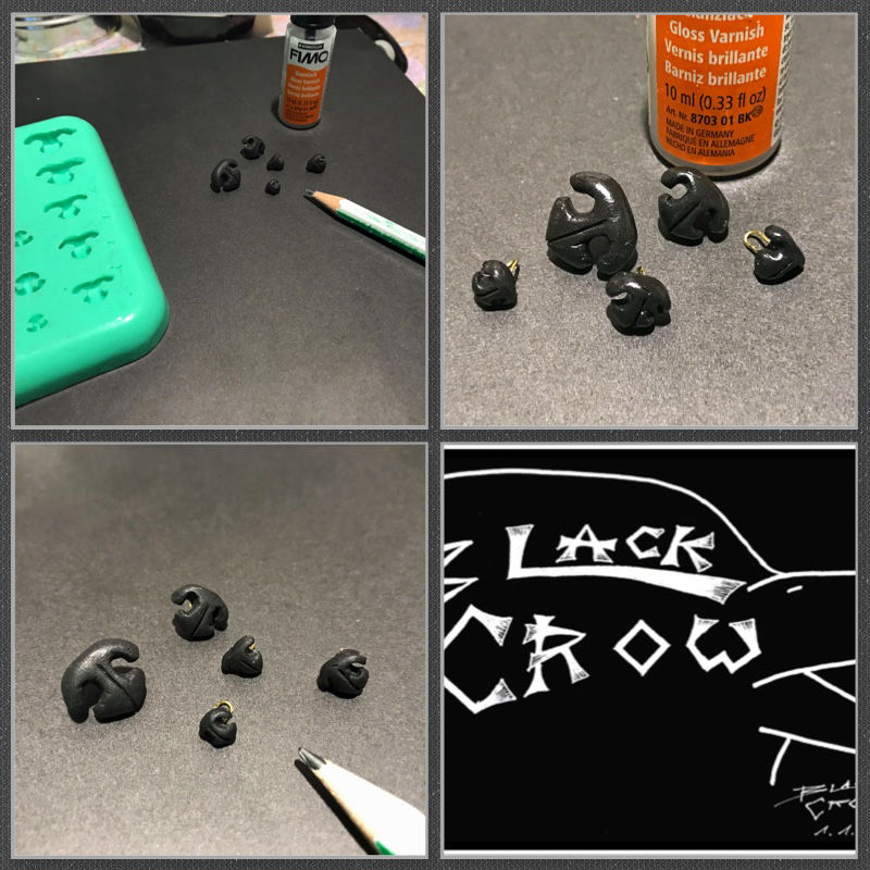 Die Ösen aus Draht, selbst geformt, werden beim Fimo formen mit rein gedrückt damit sie bleiben wo sie sollen und halten.