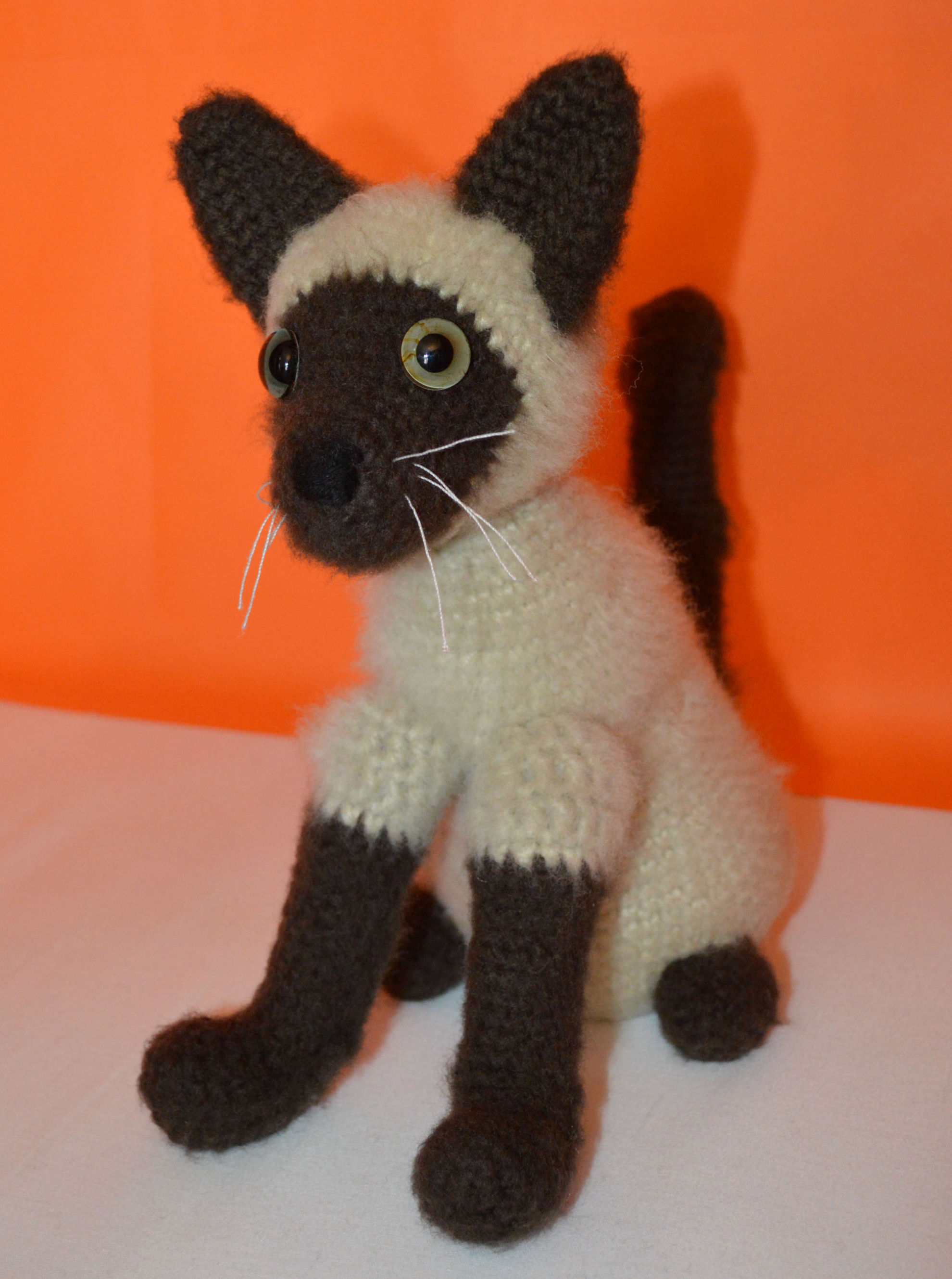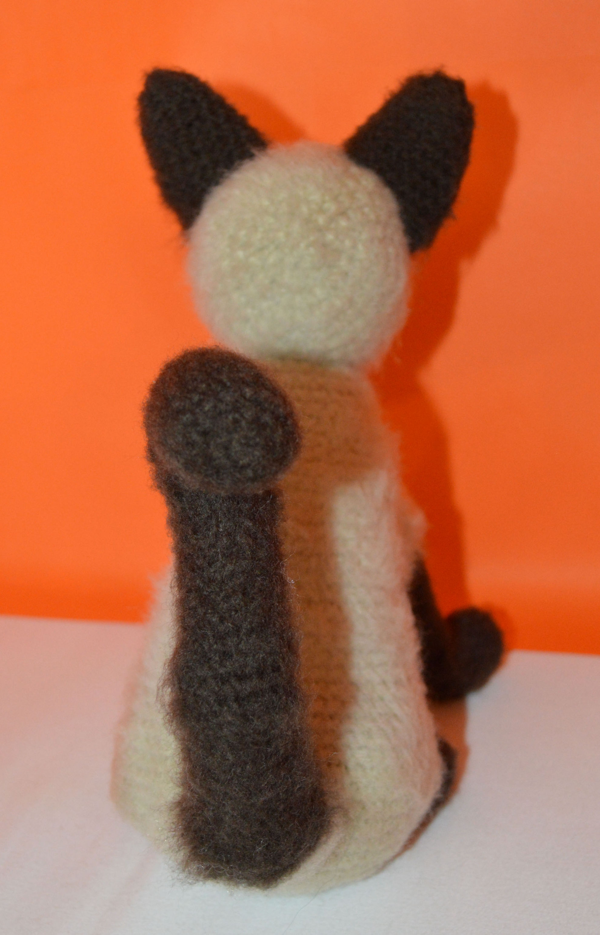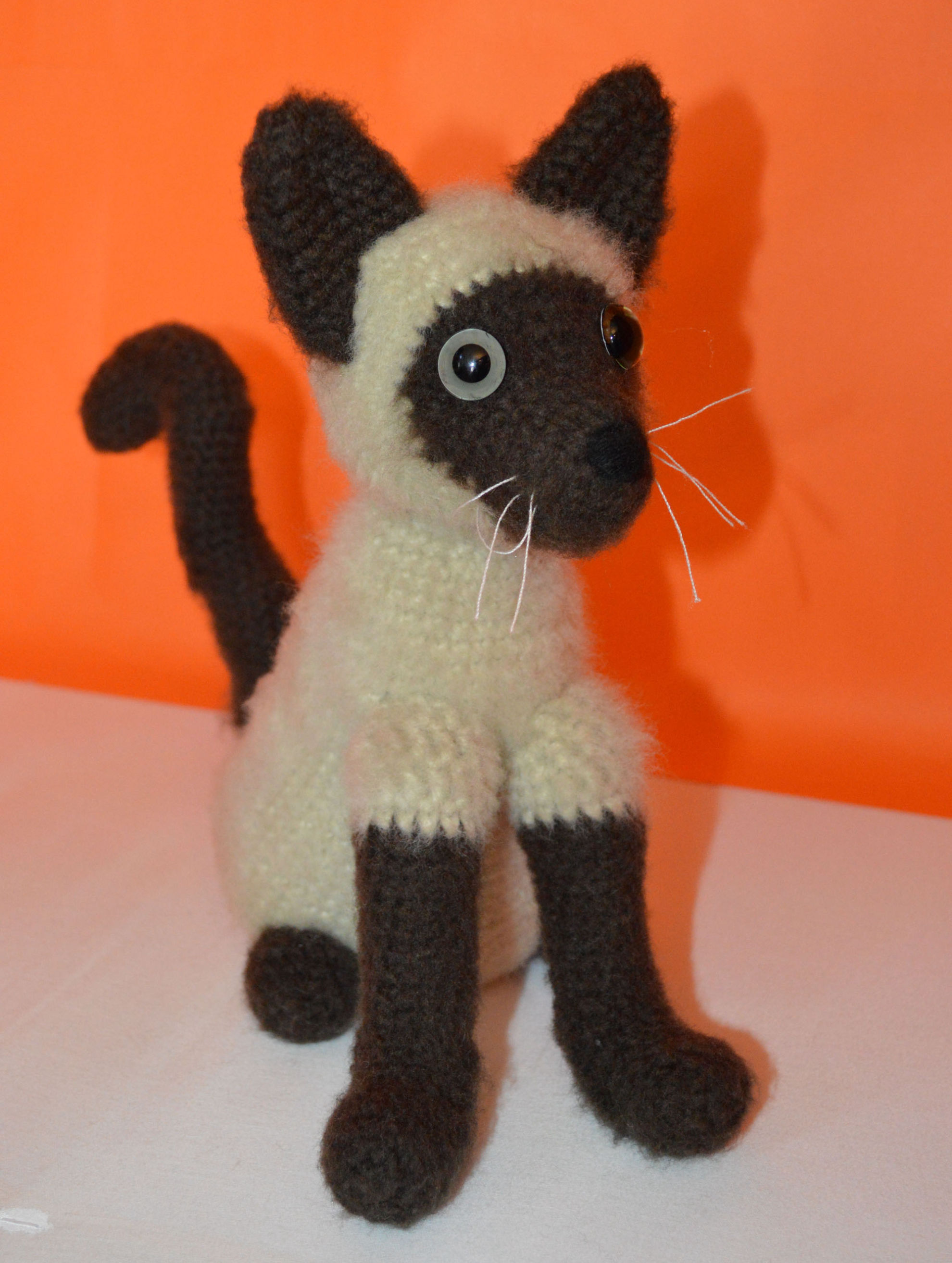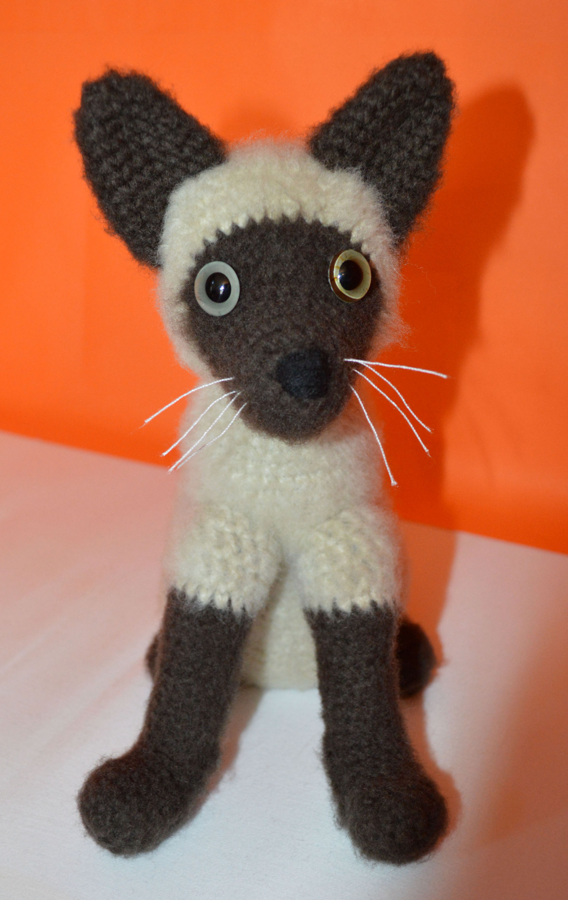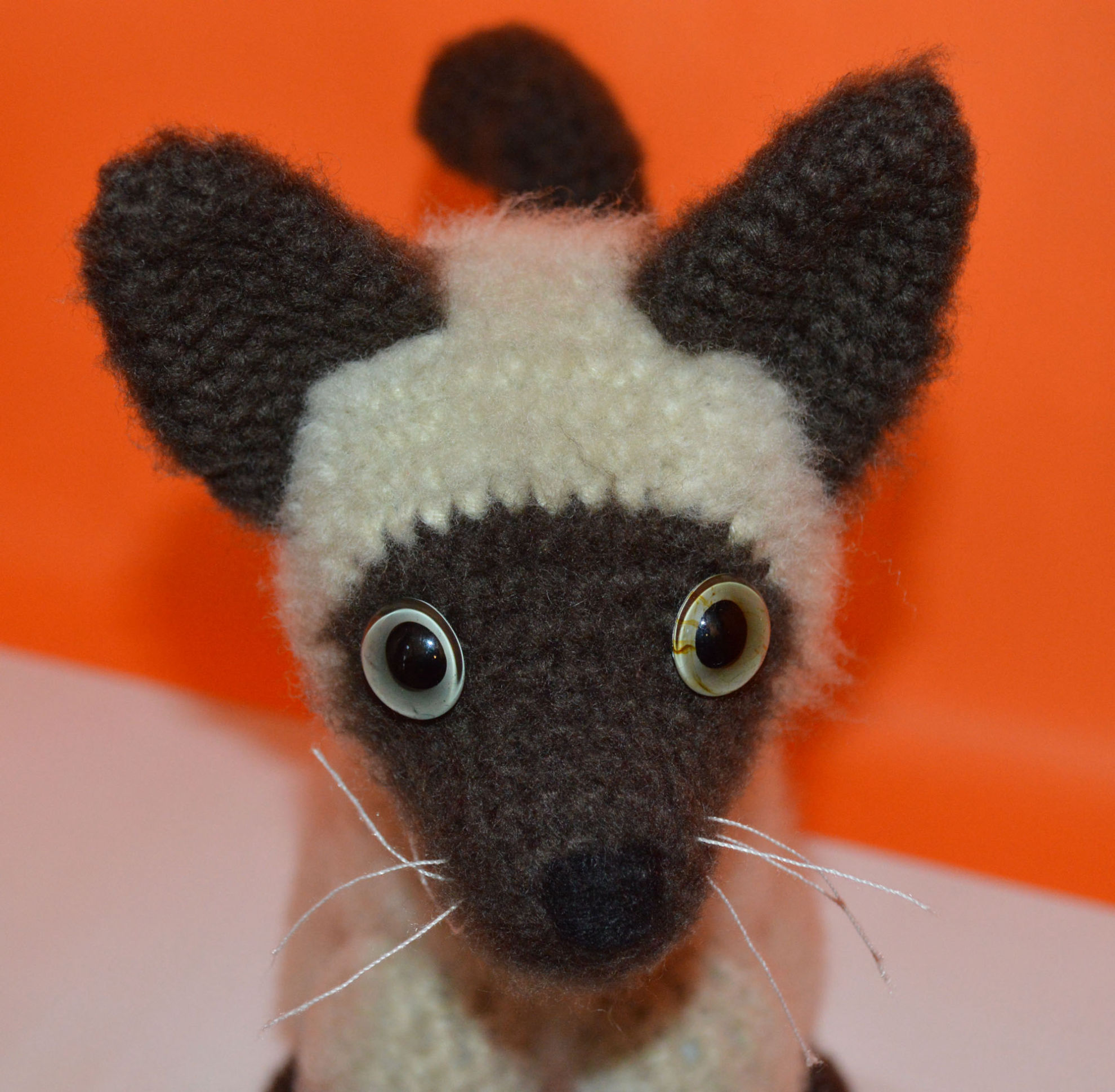 Material: My Boshi Garn No. 1 Braun, Beige, Glasaugen, Bastelwatte, Faden Weiss