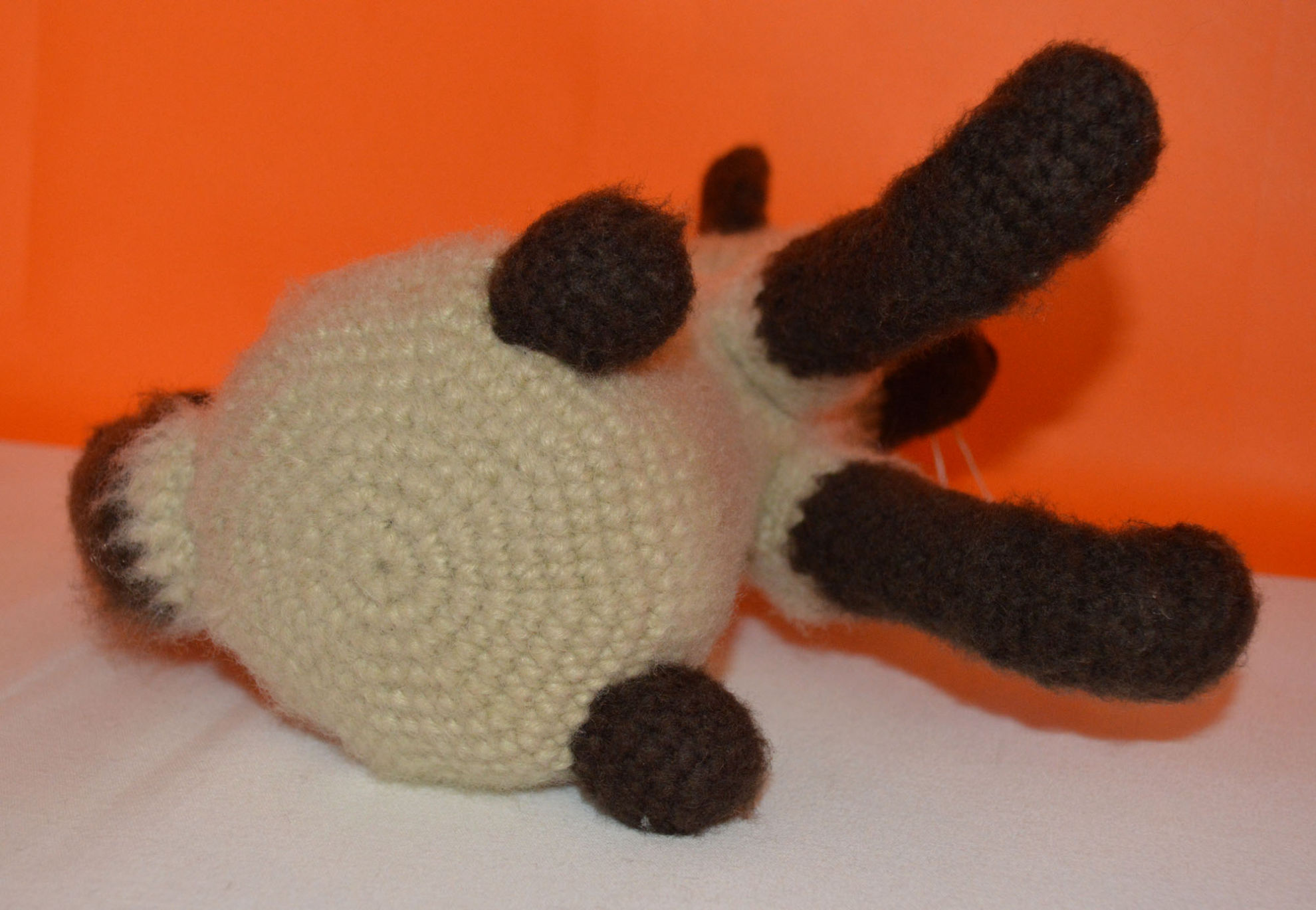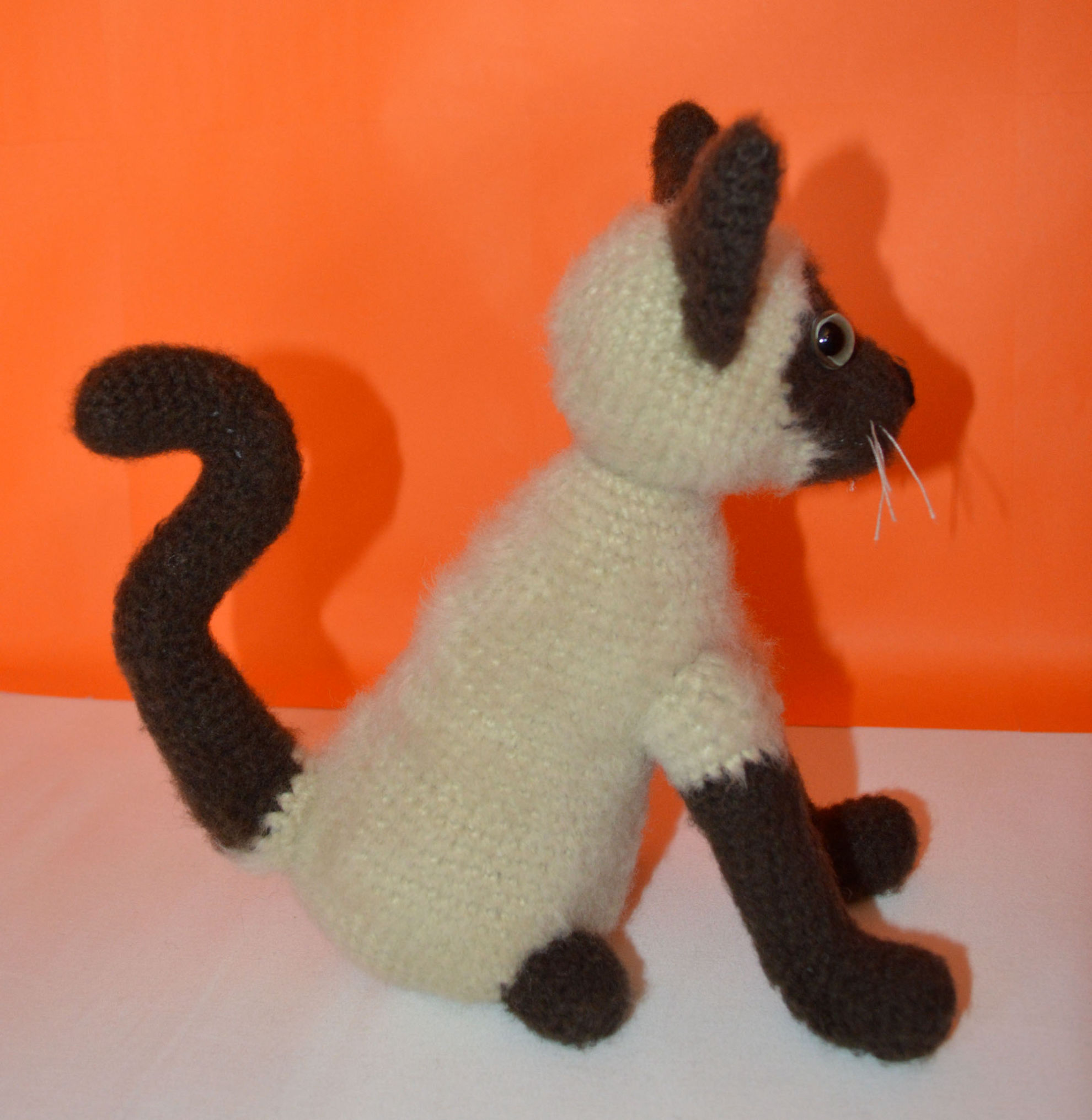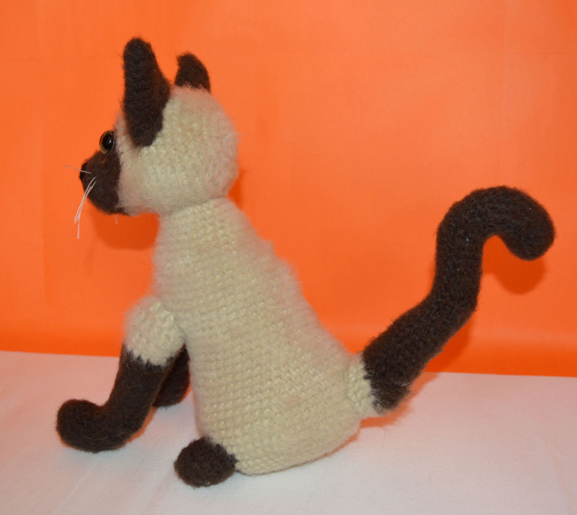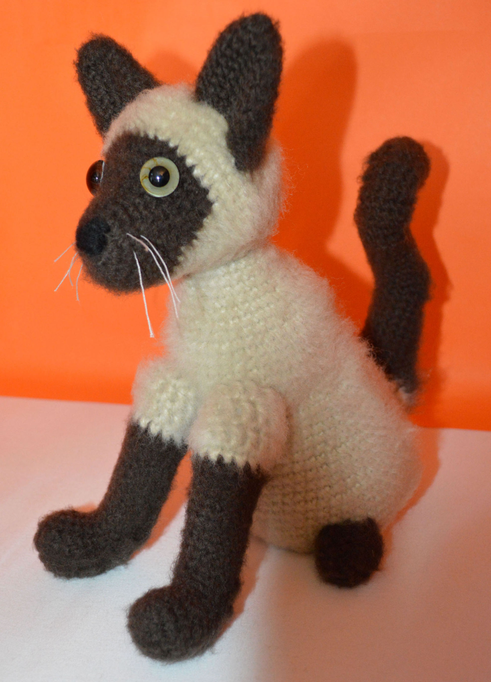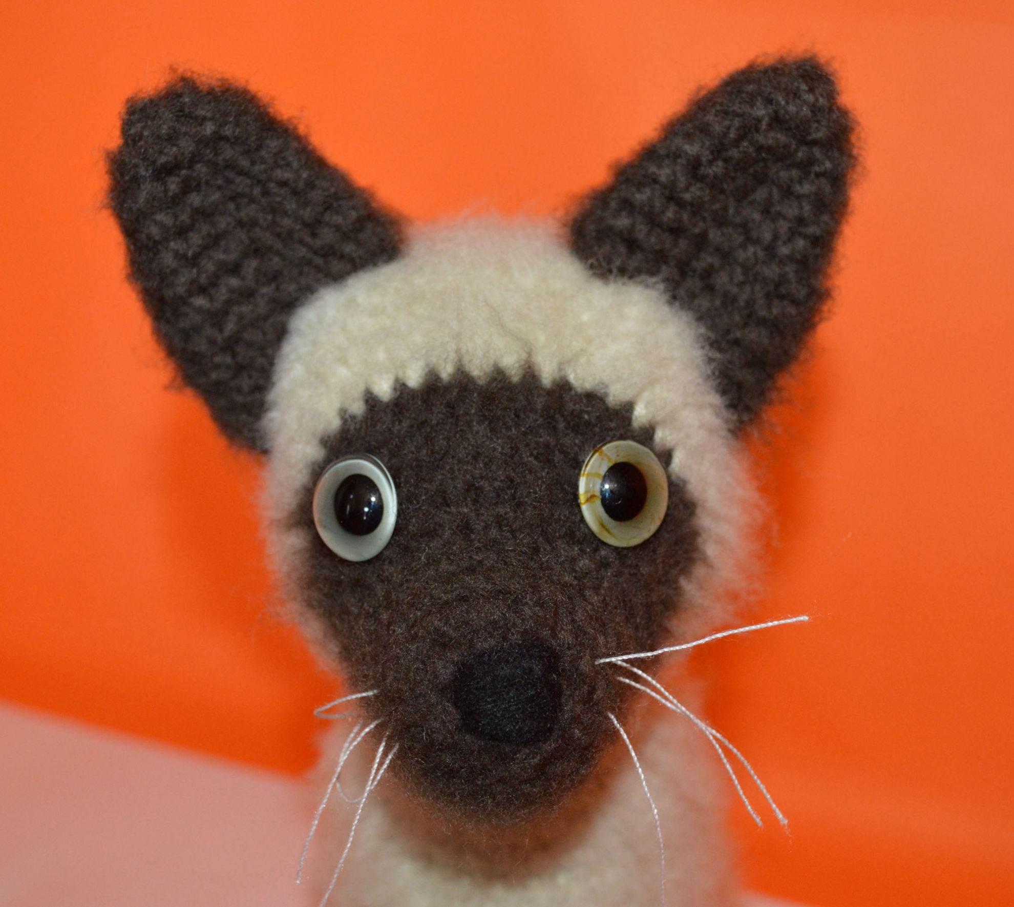 Material: My Boshi Garn No. 1 Braun, Beige, Glasaugen, Bastelwatte, Faden Weiss
