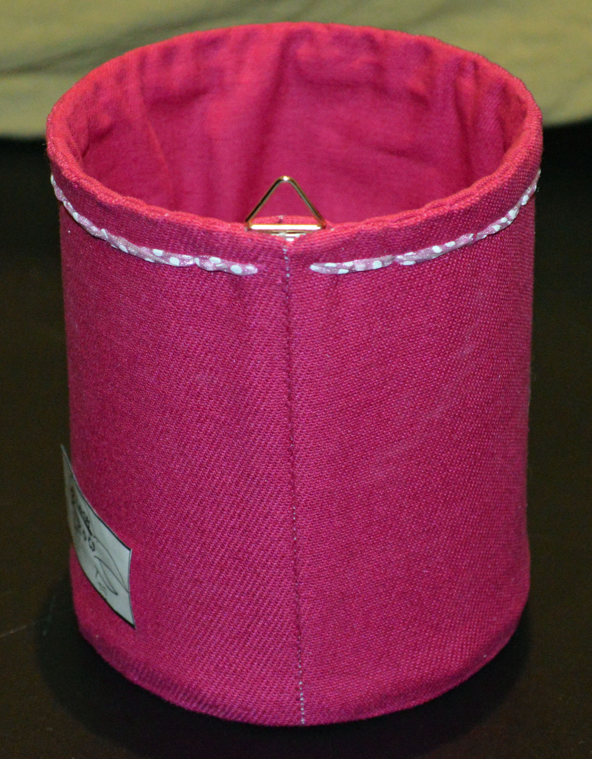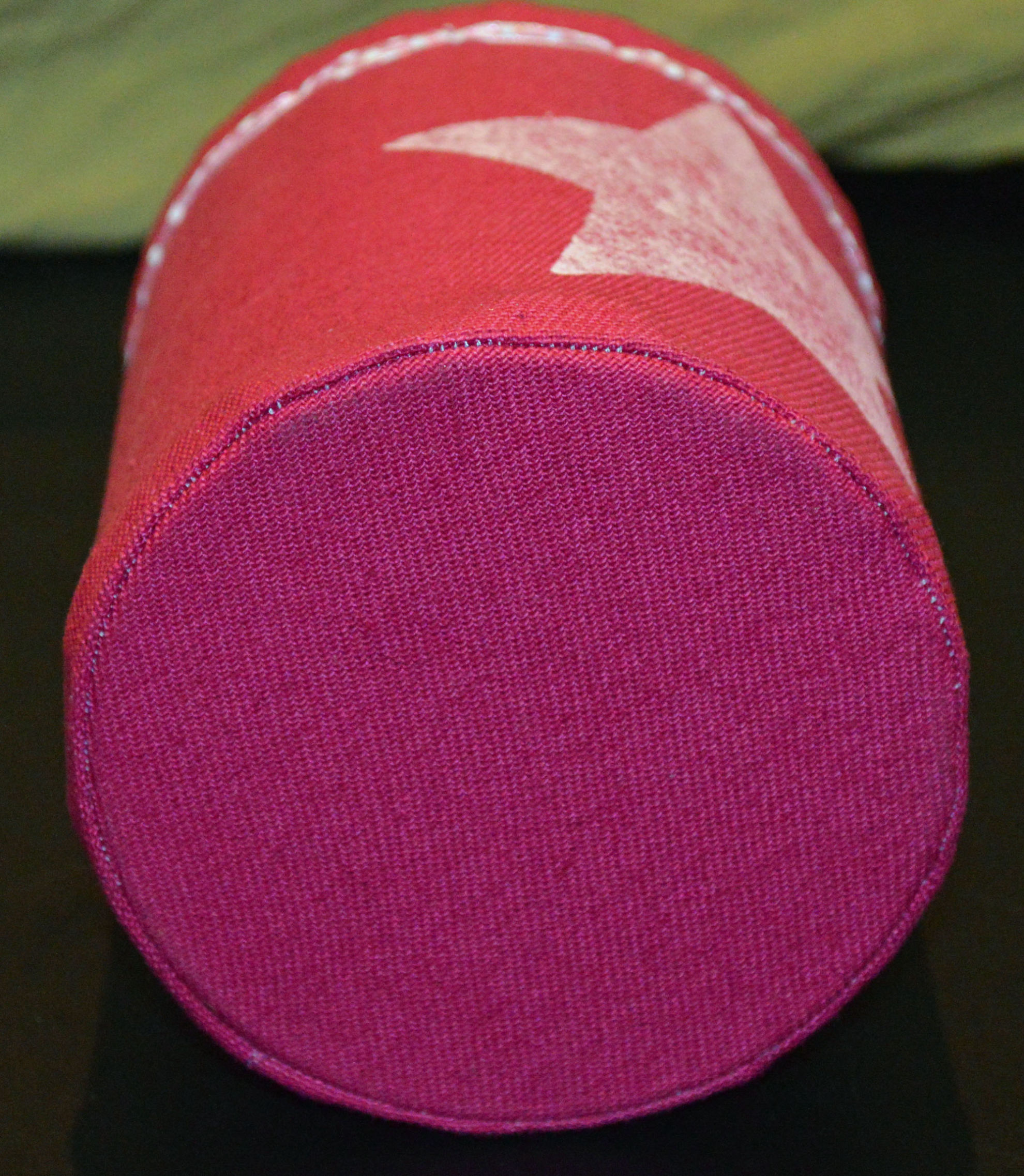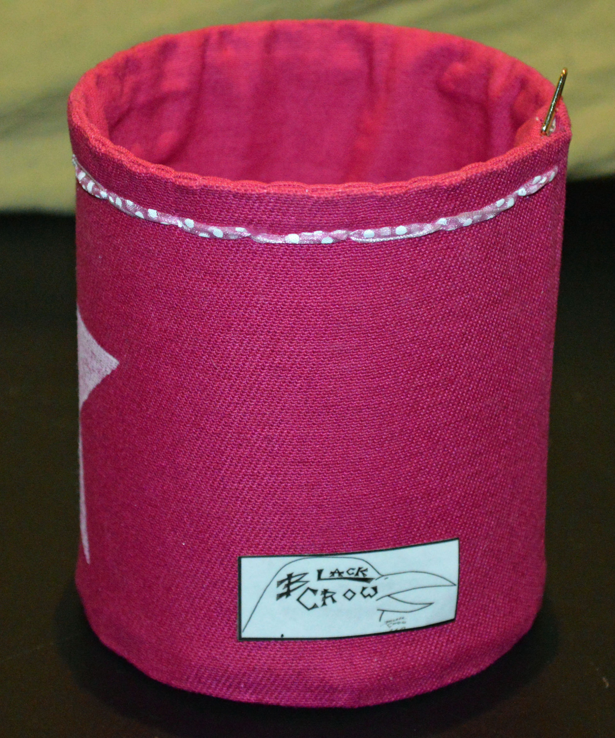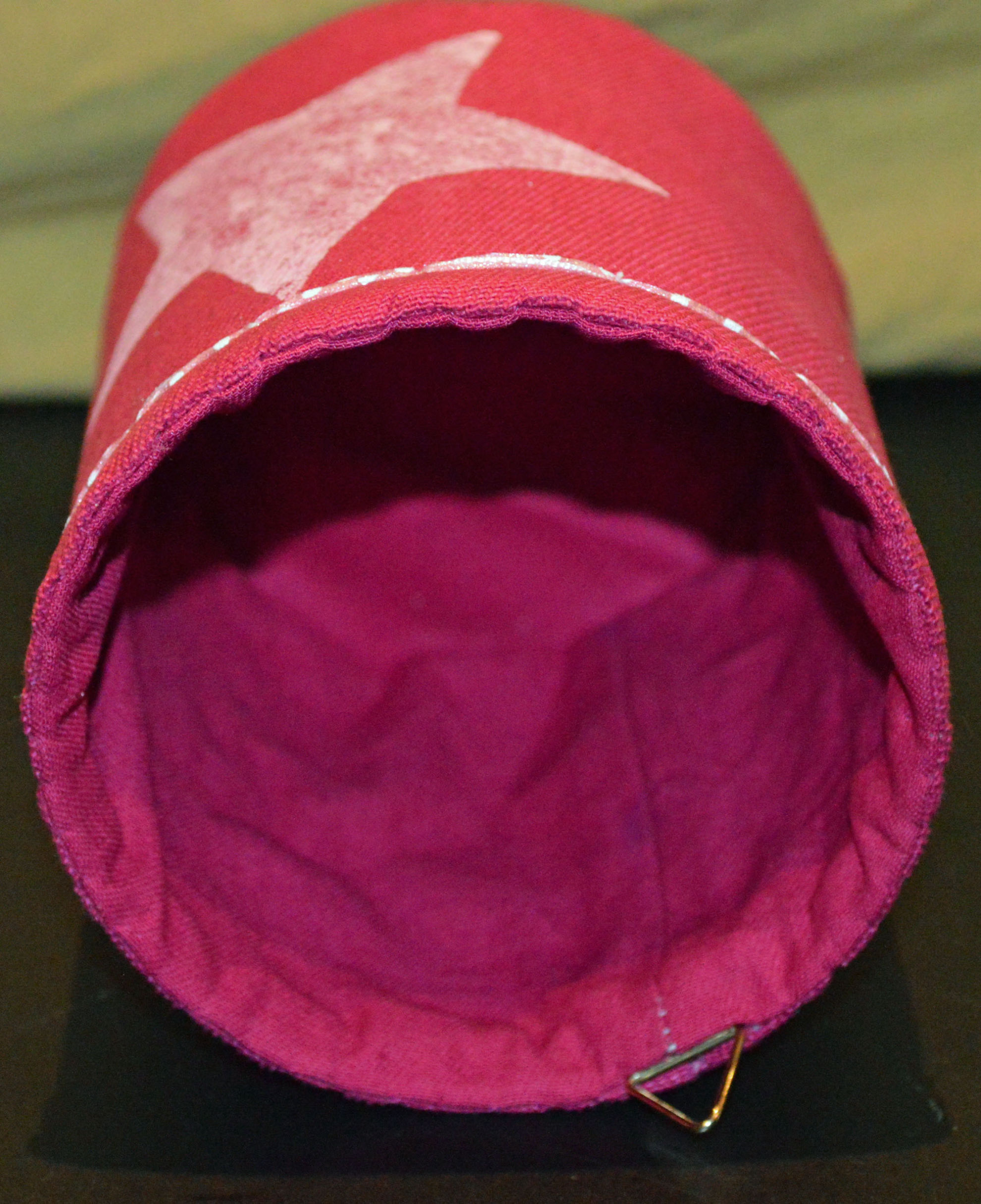 Material: Stoff Pink, Aludose, Motiv selber gestaltet "Stern", Bilderösen, Band, Bauernmalfarbe,