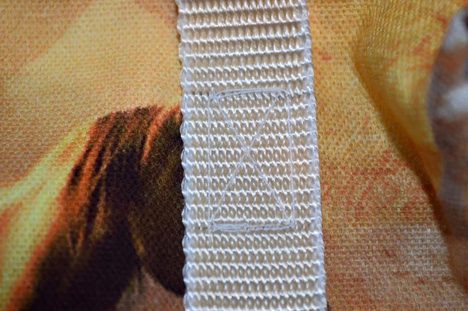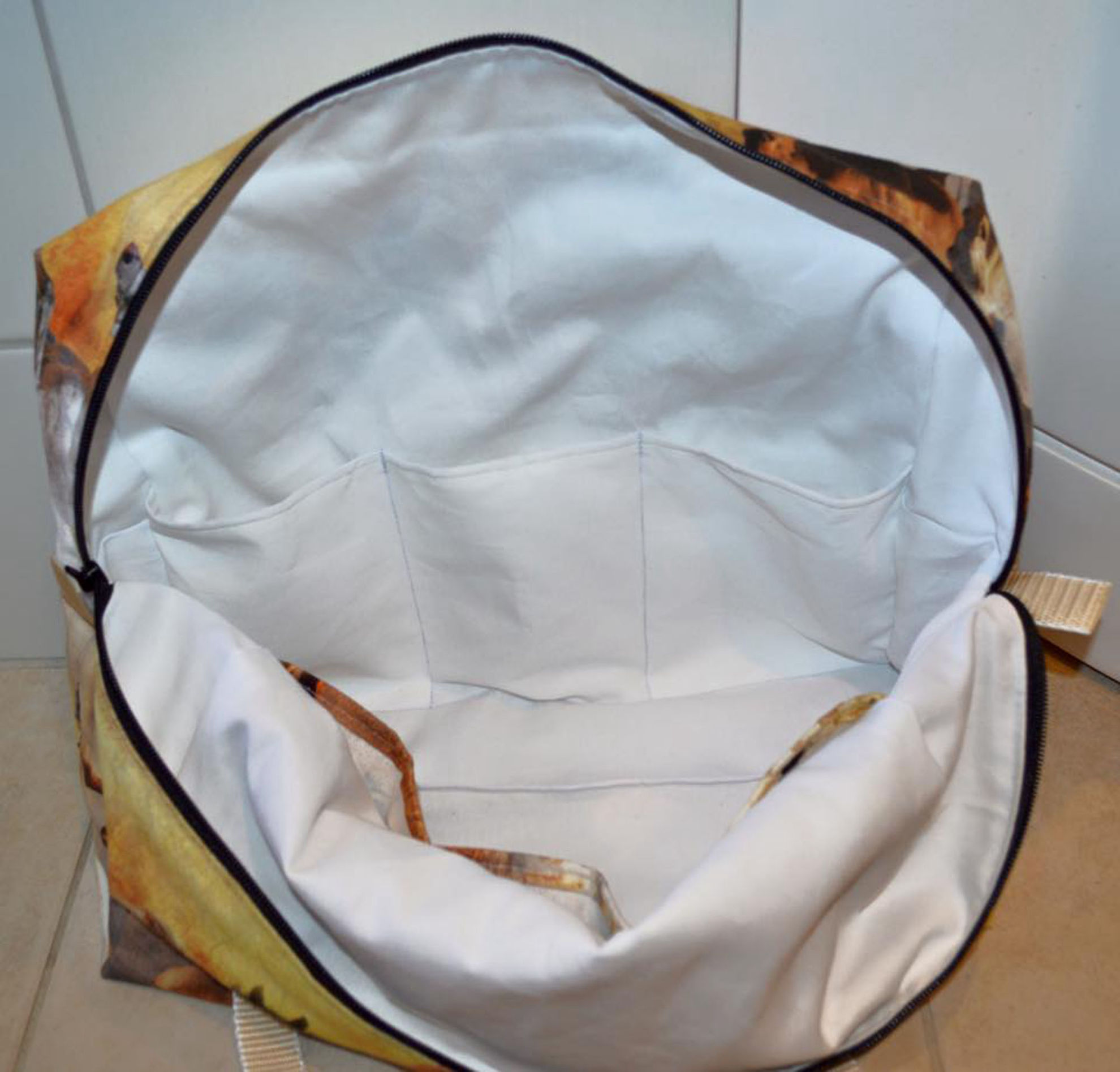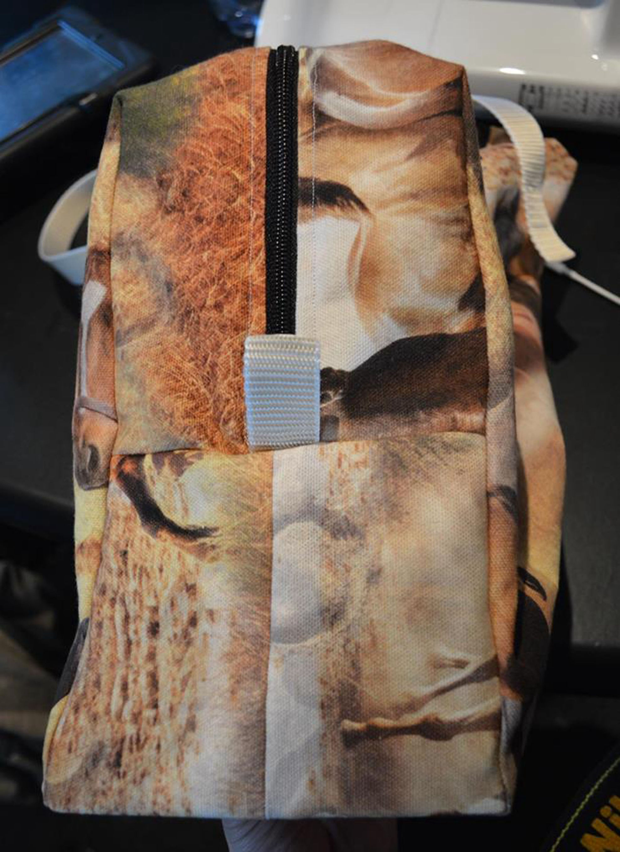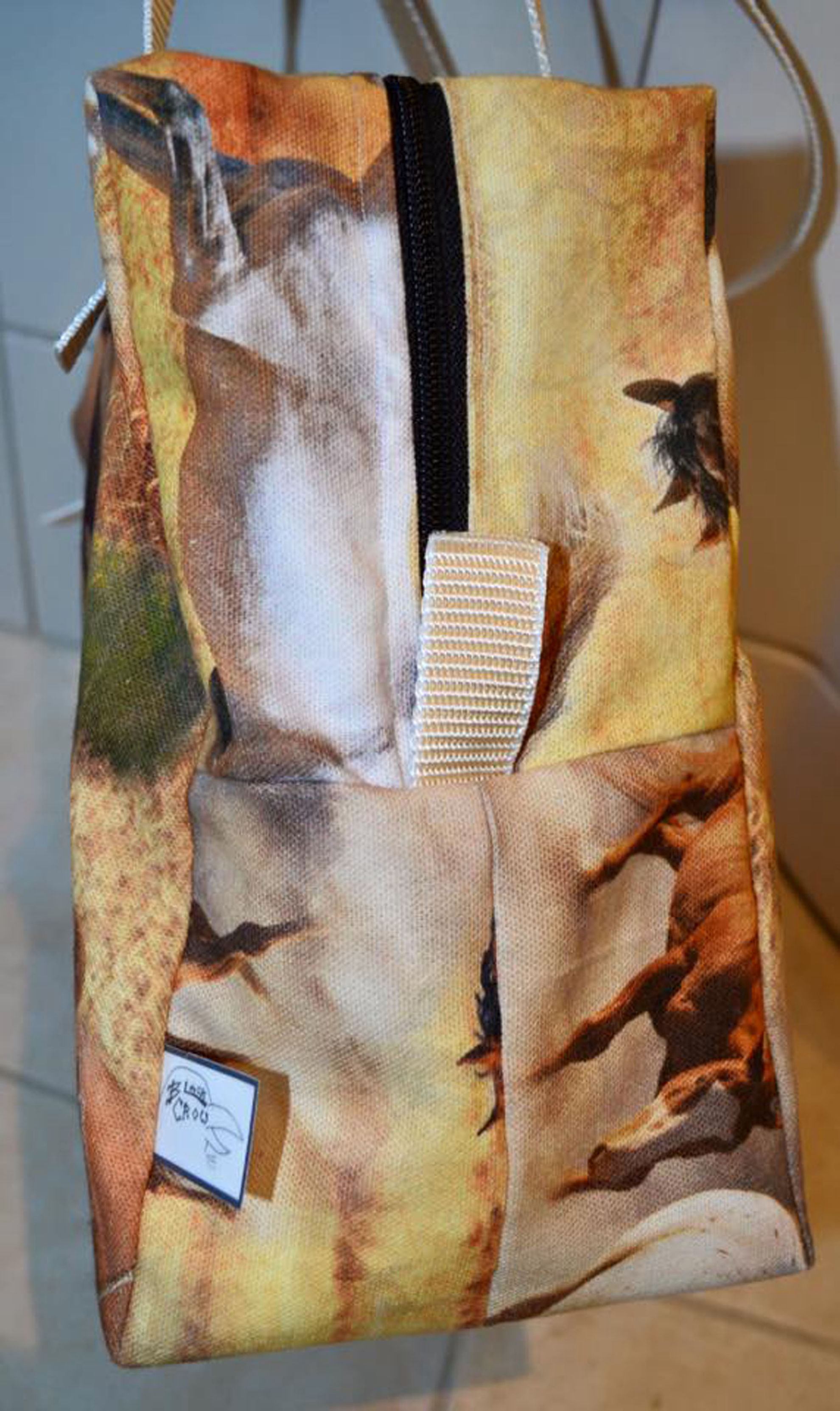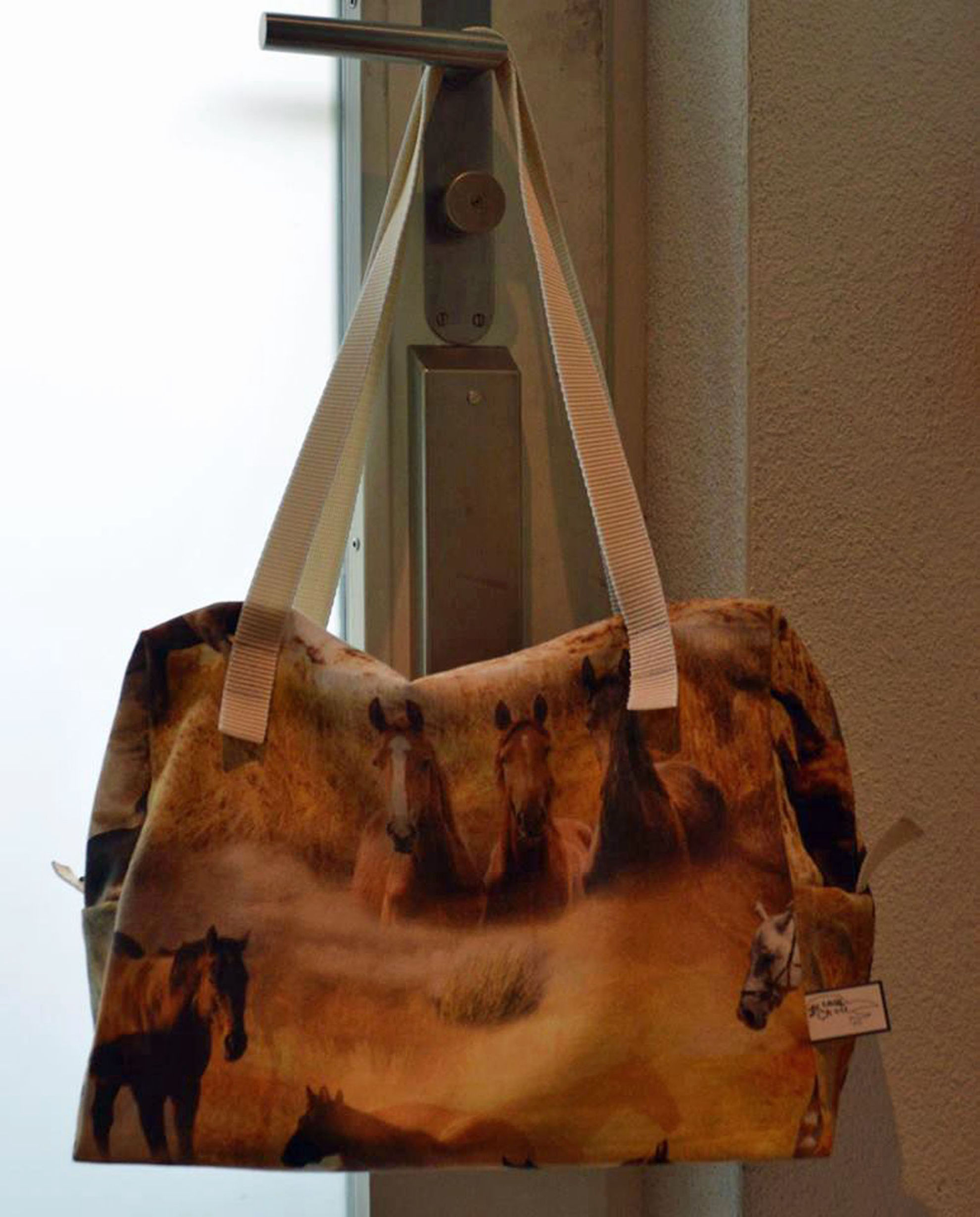Material: Stoff Motiv "Pferde", Reissverschluss, Rollladengurt, Plexiglas (Bodenverstärkung)