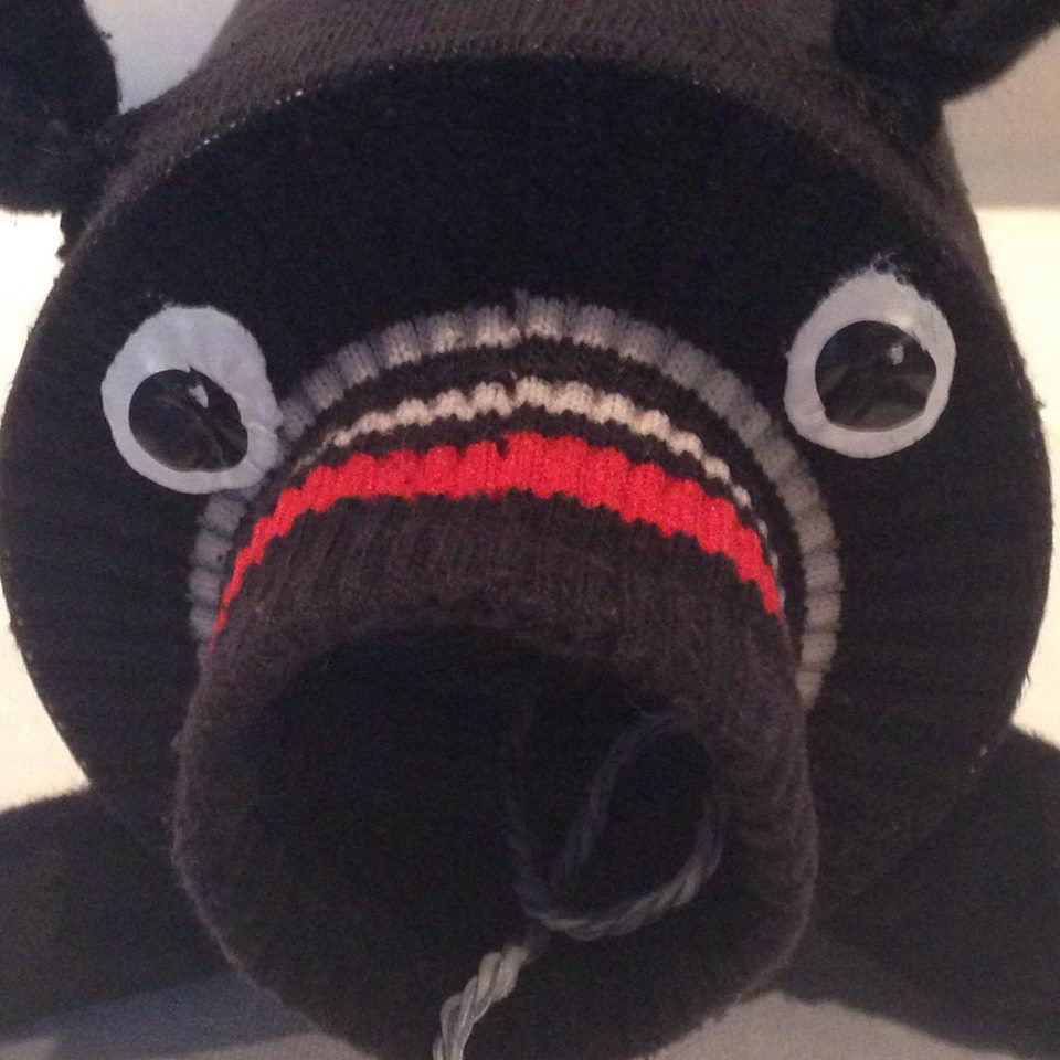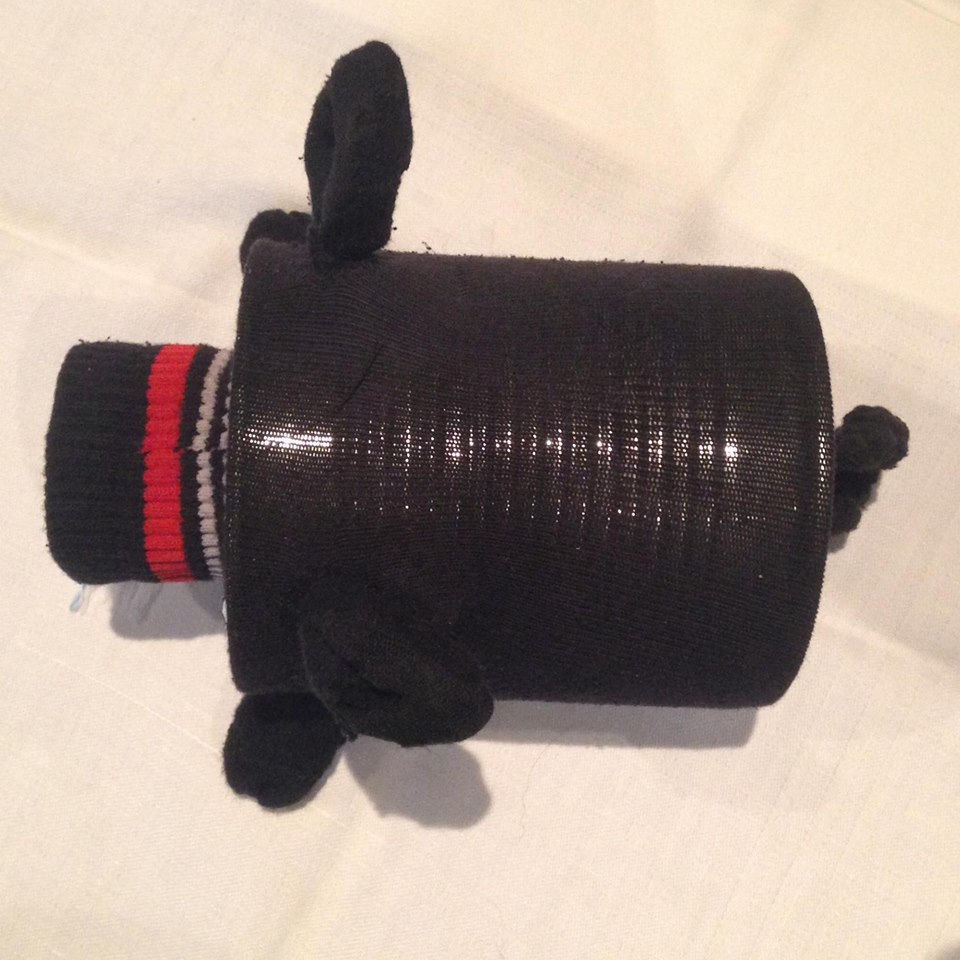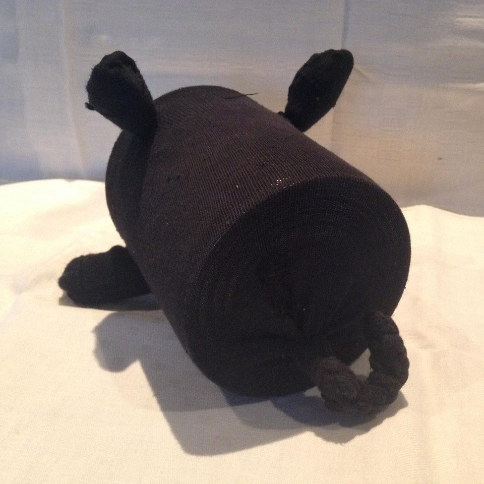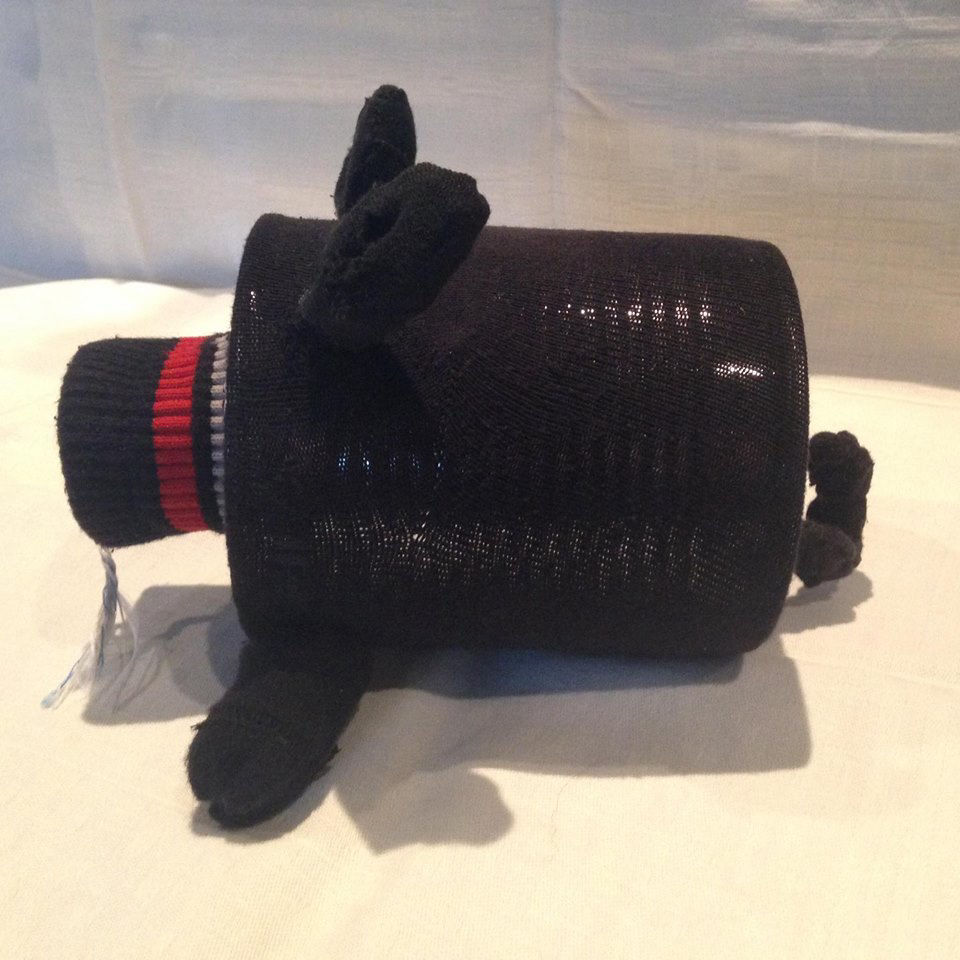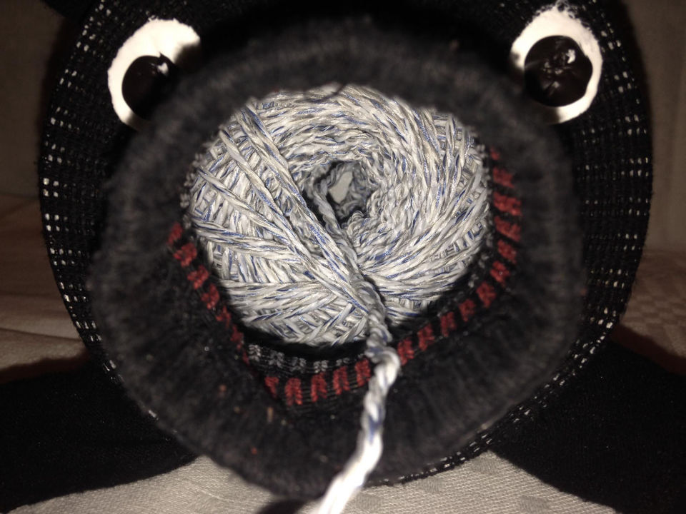 Material: Saubere gewaschene Alte Socke, Aludose, Bauernmalfarbe, Paketschnur