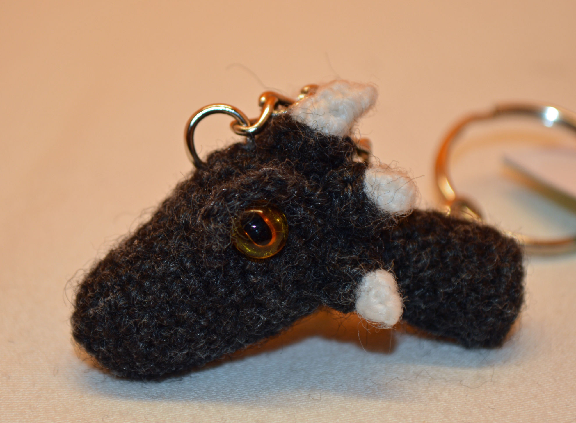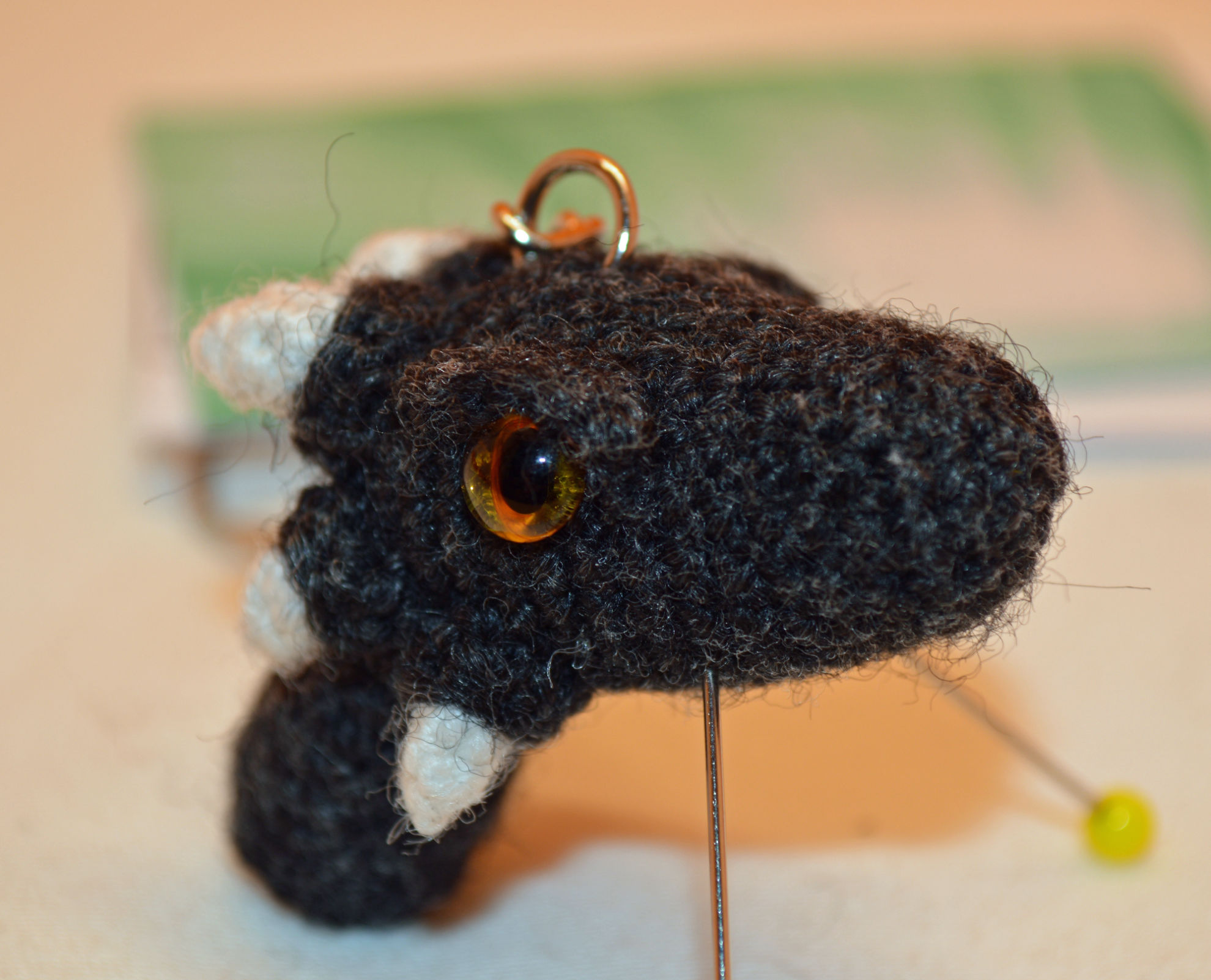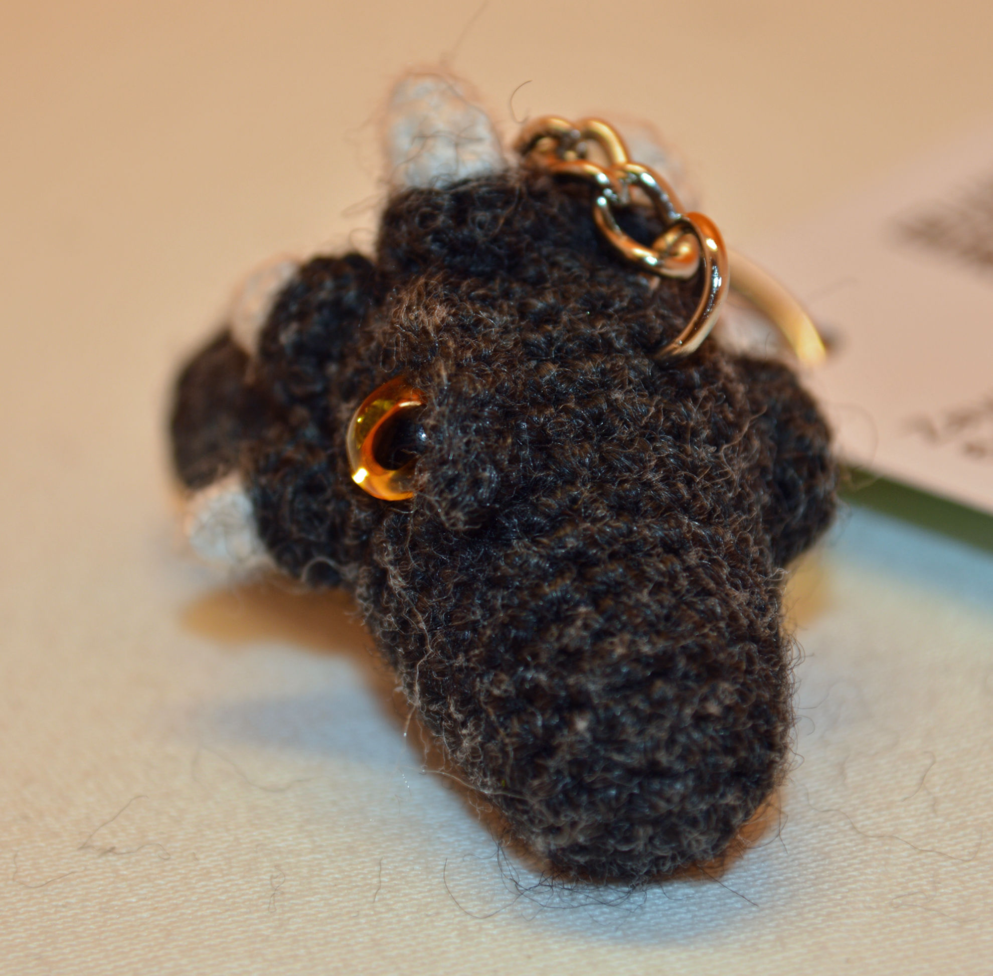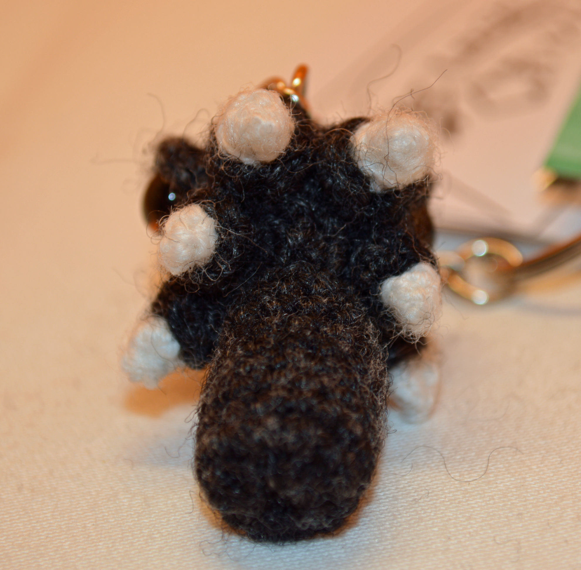 Material: Wolle Anthrazit, Weiss, Glasaugen, Bastelwatte