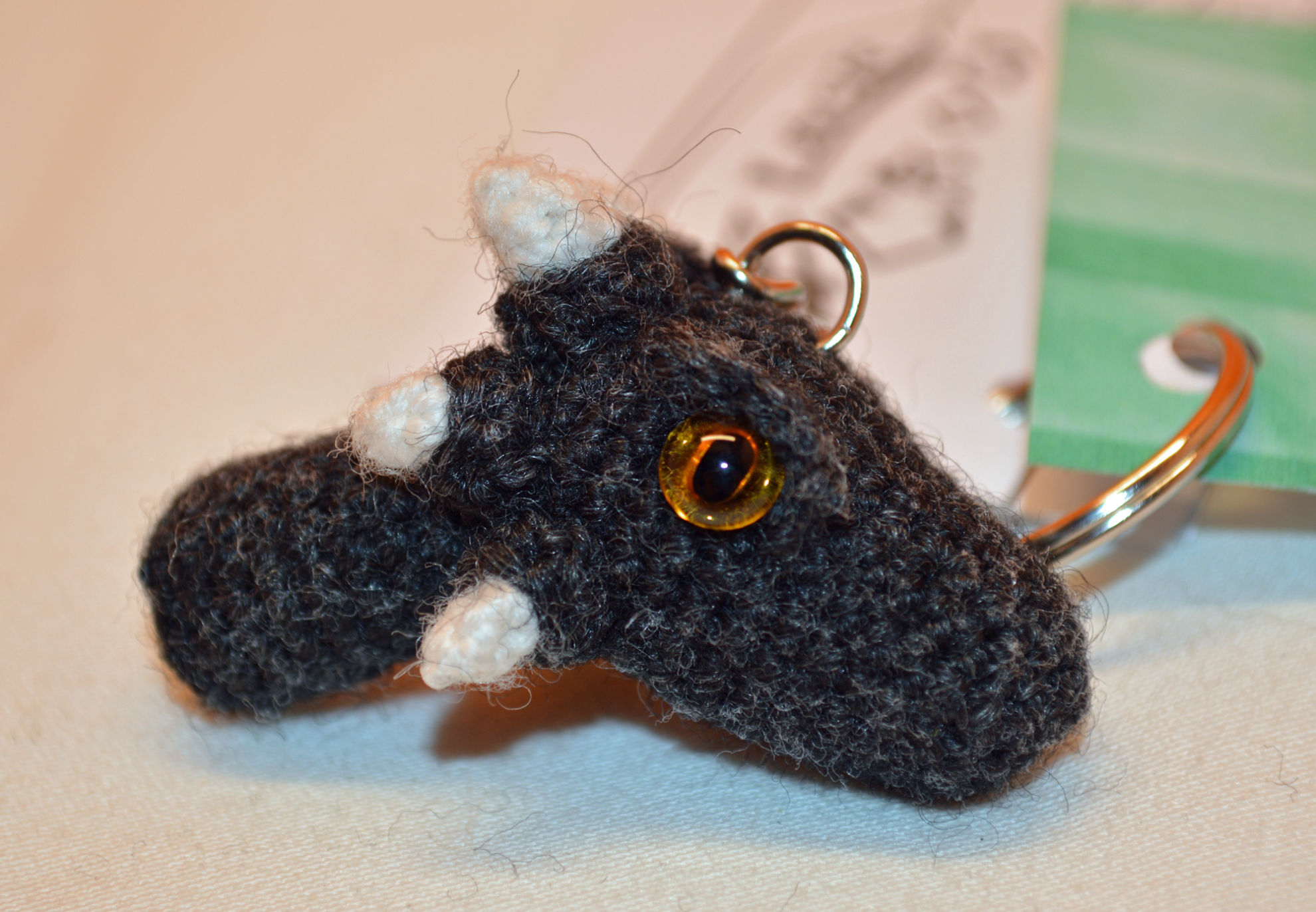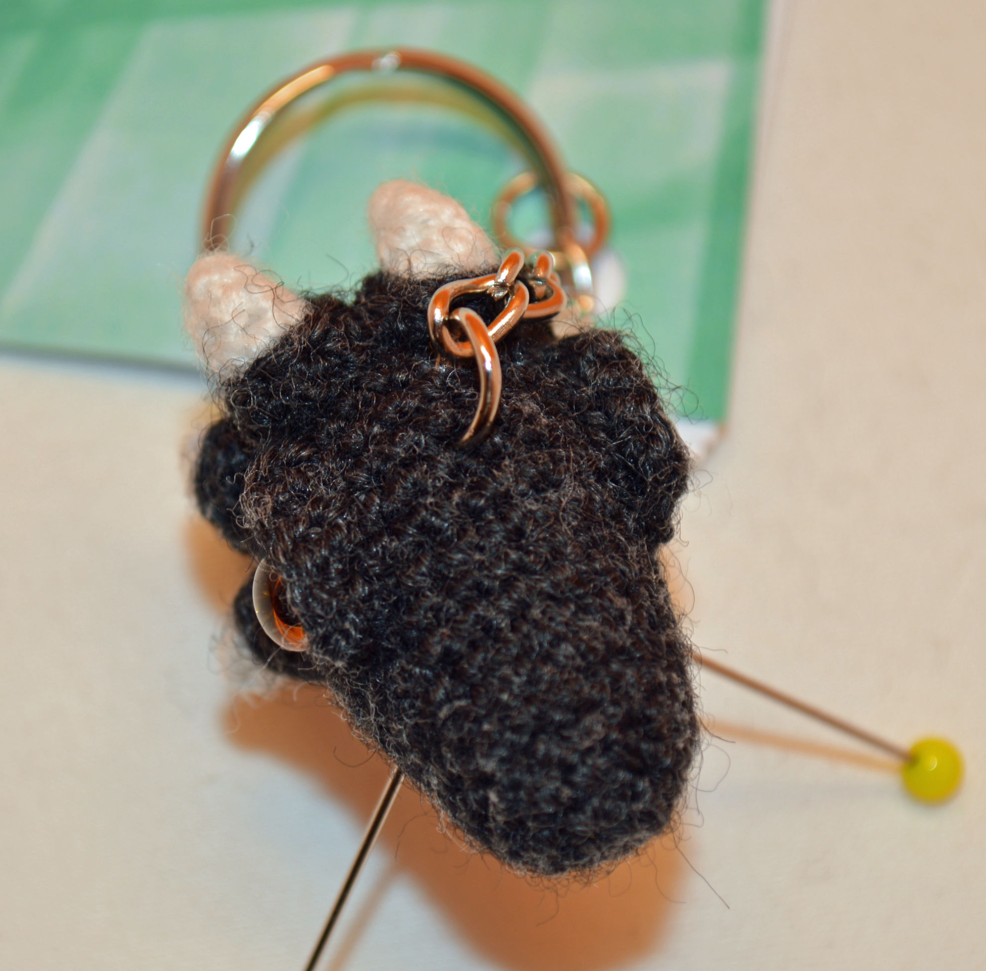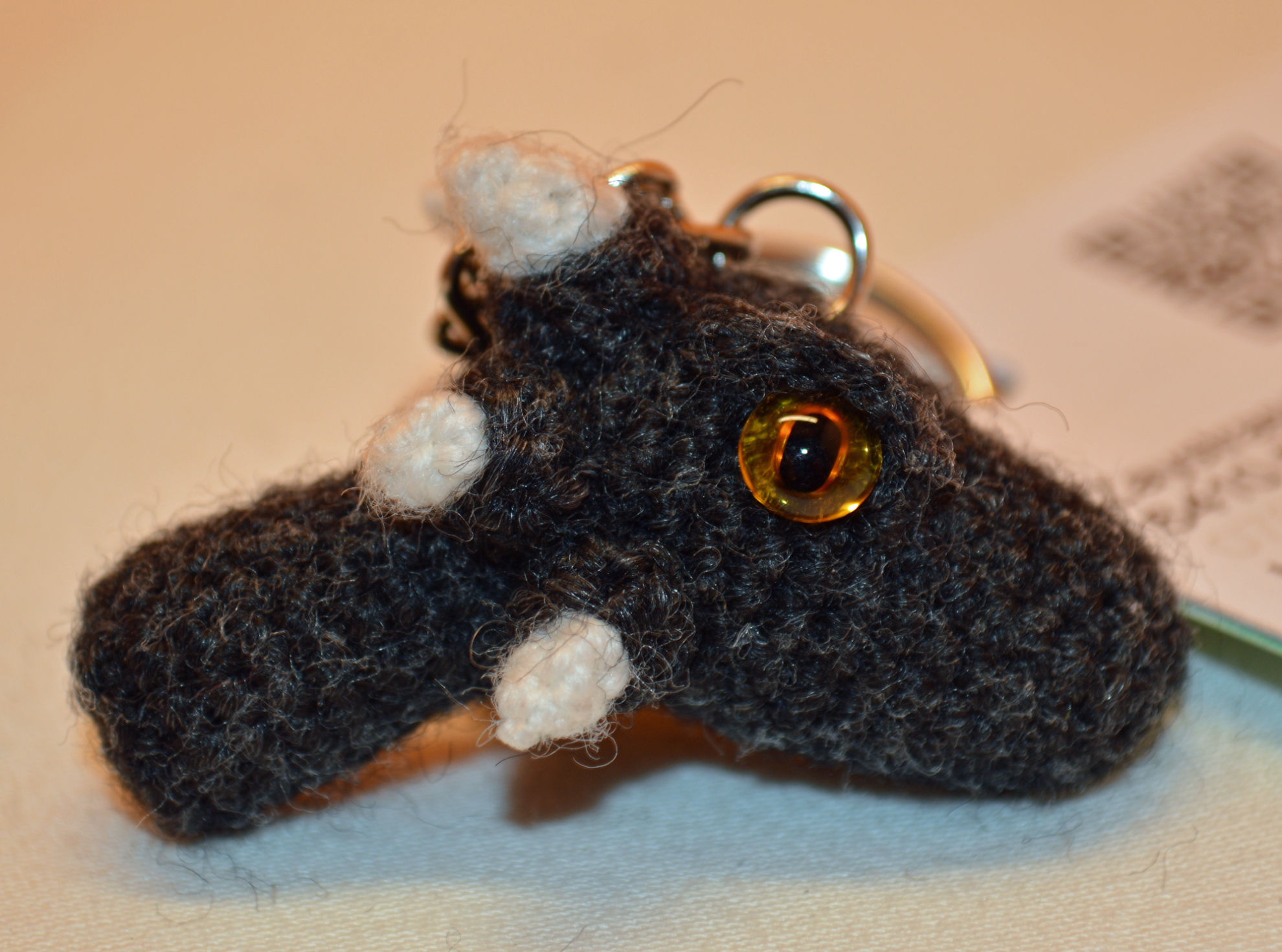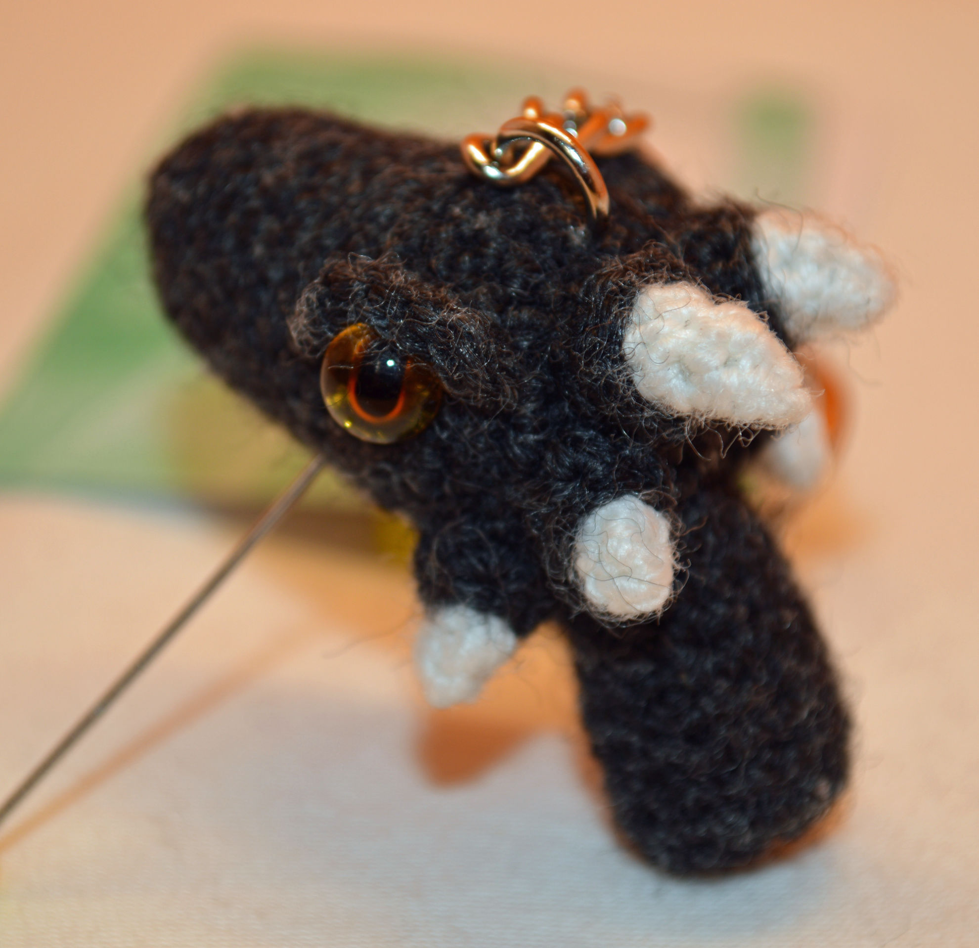 Material: Wolle Anthrazit, Weiss, Glasaugen, Bastelwatte