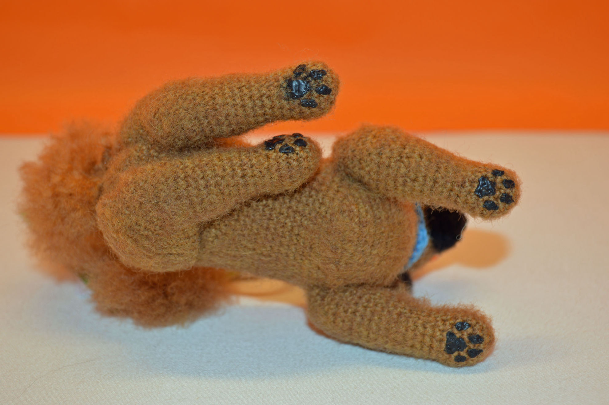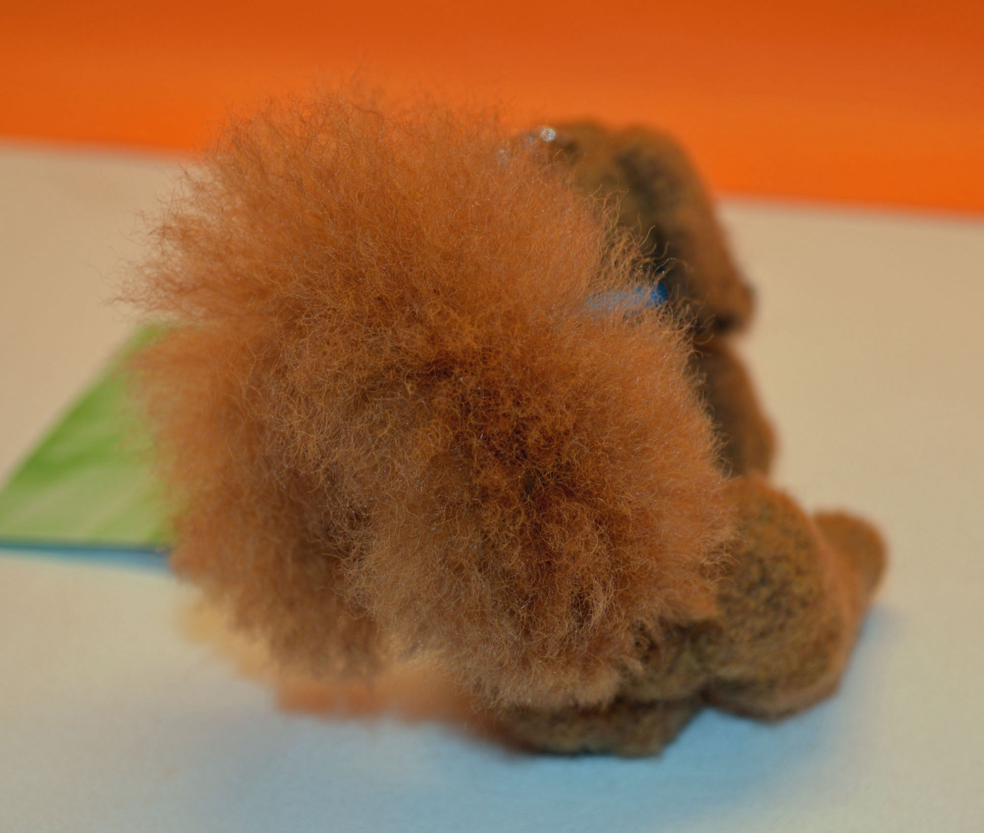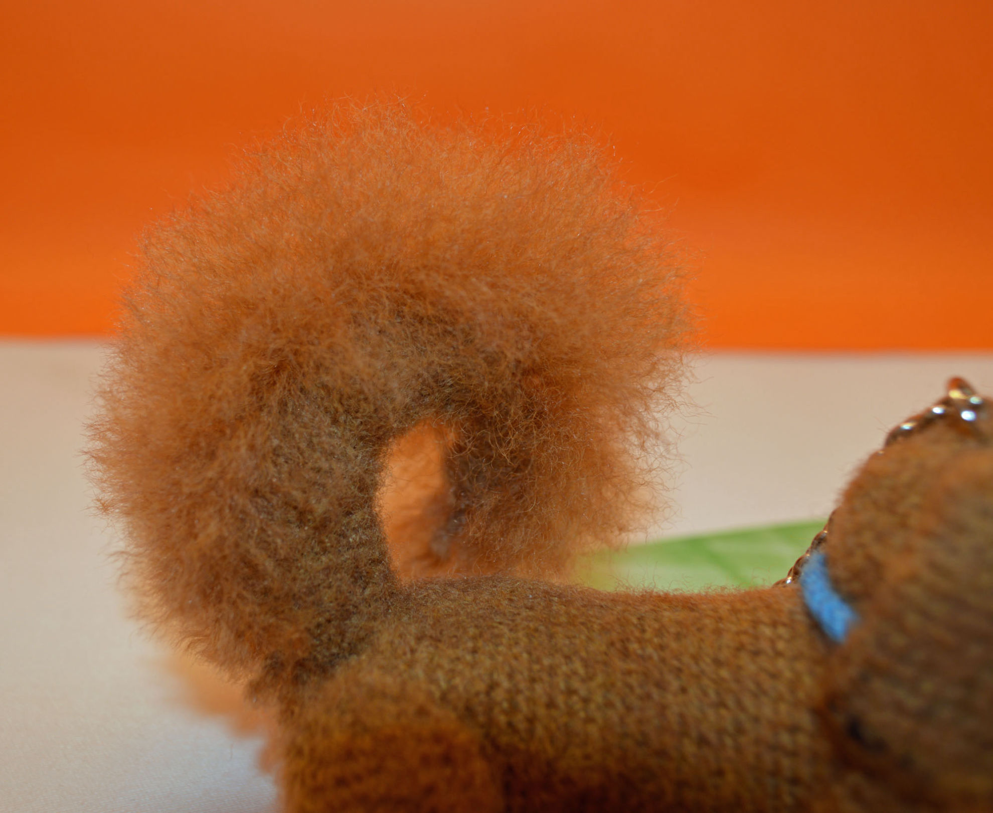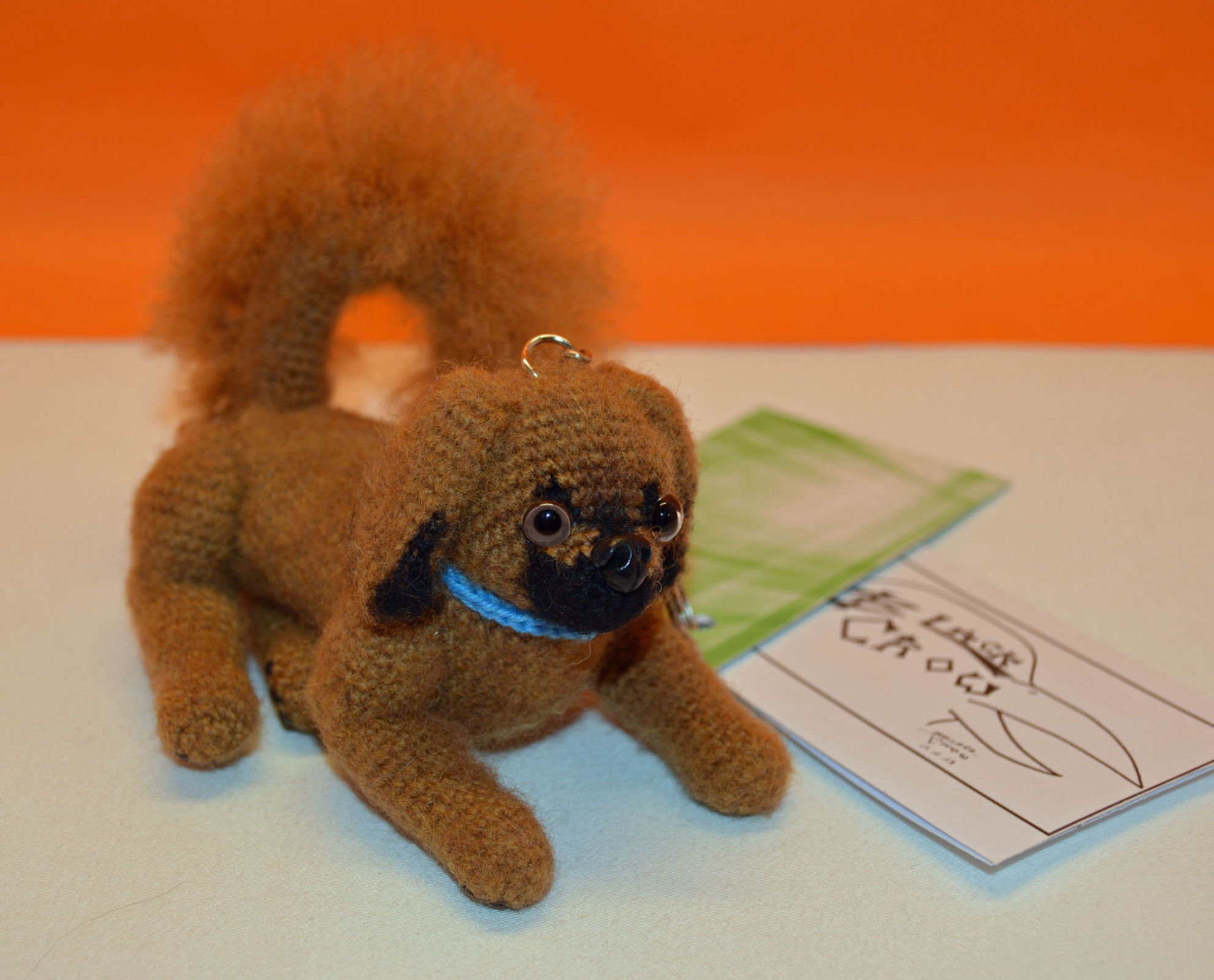 Material: Wolle Schwarz, Camel, Hellblau, Fimo (Hundenasen selbst gemacht), Bauernmalfarbe, Glasaugen, Bastelwatte