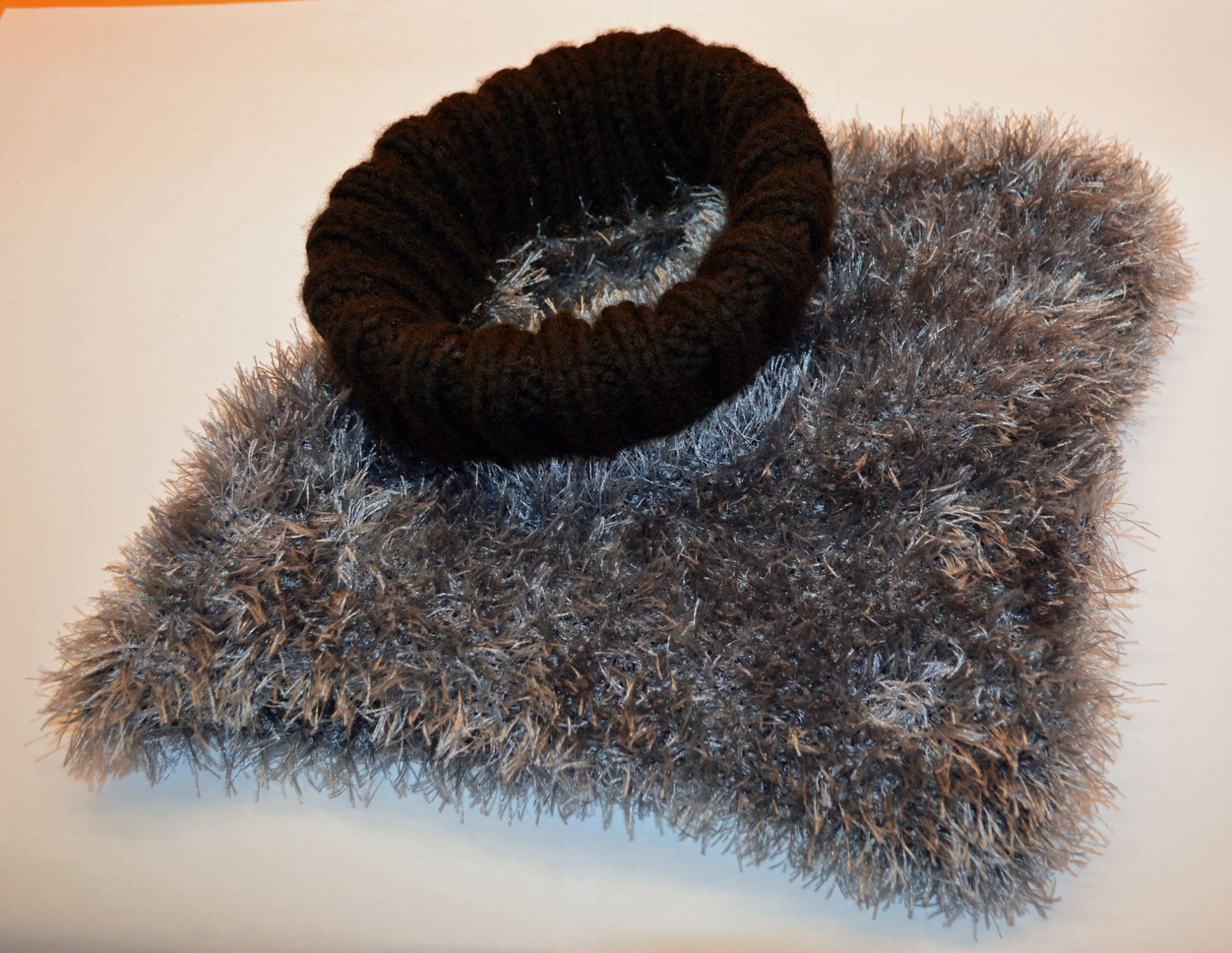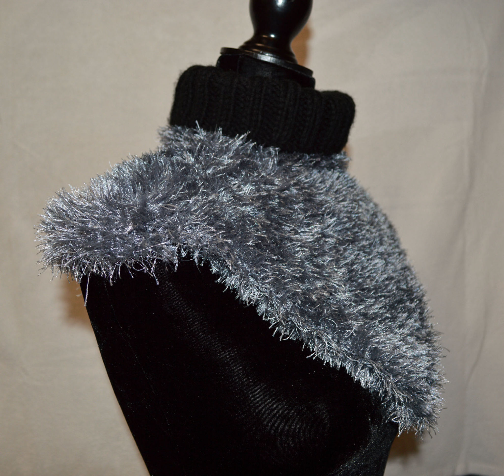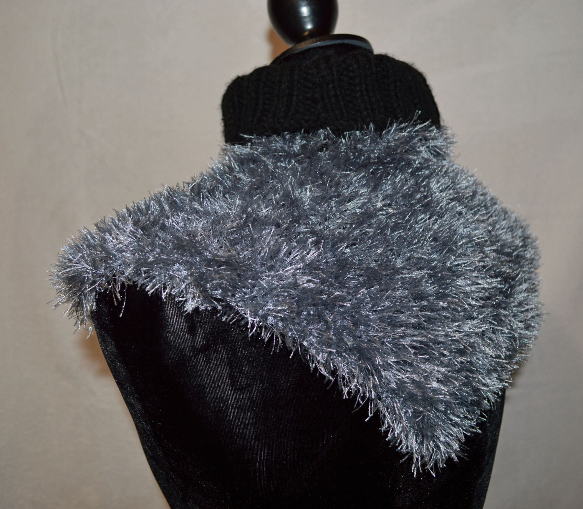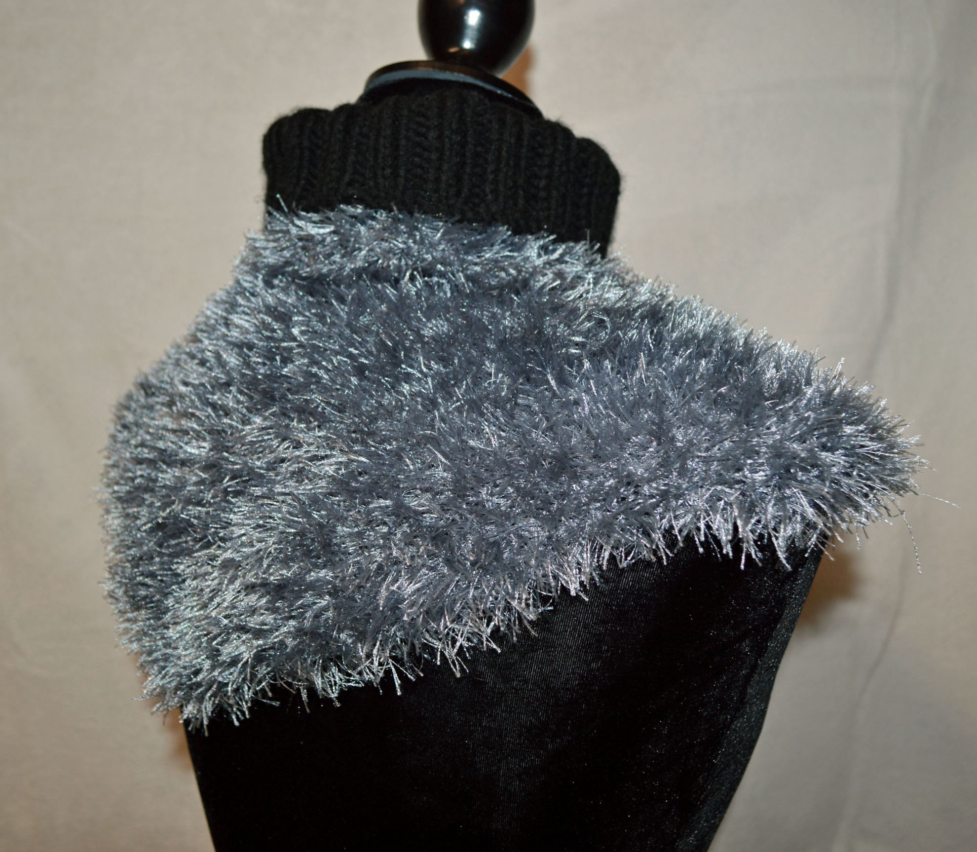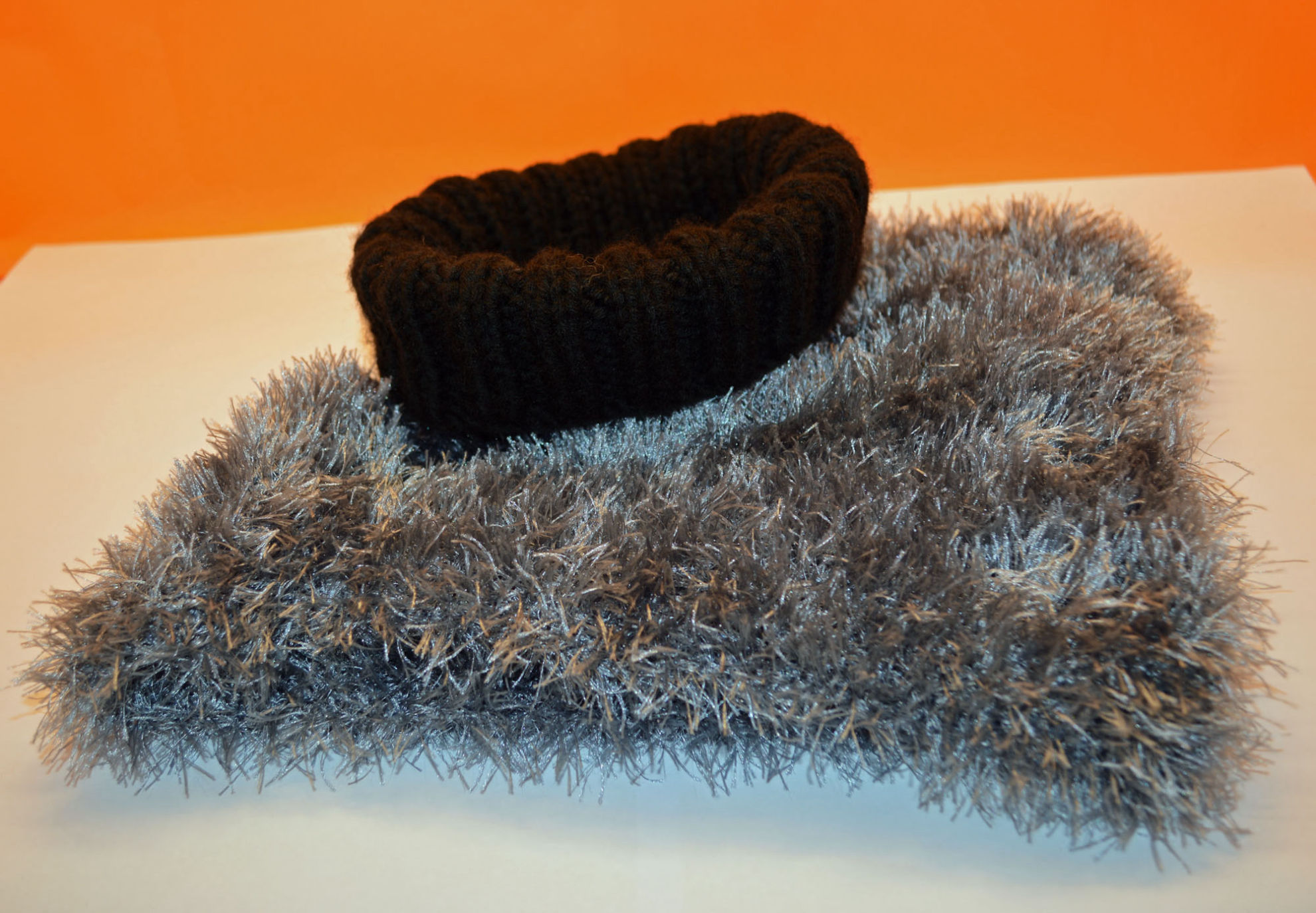 Material: Wolle, My Boshi Garn No.1 Schwarz, Schachenmayr                       Brazilia Grau Effektgarn/Fransengarn