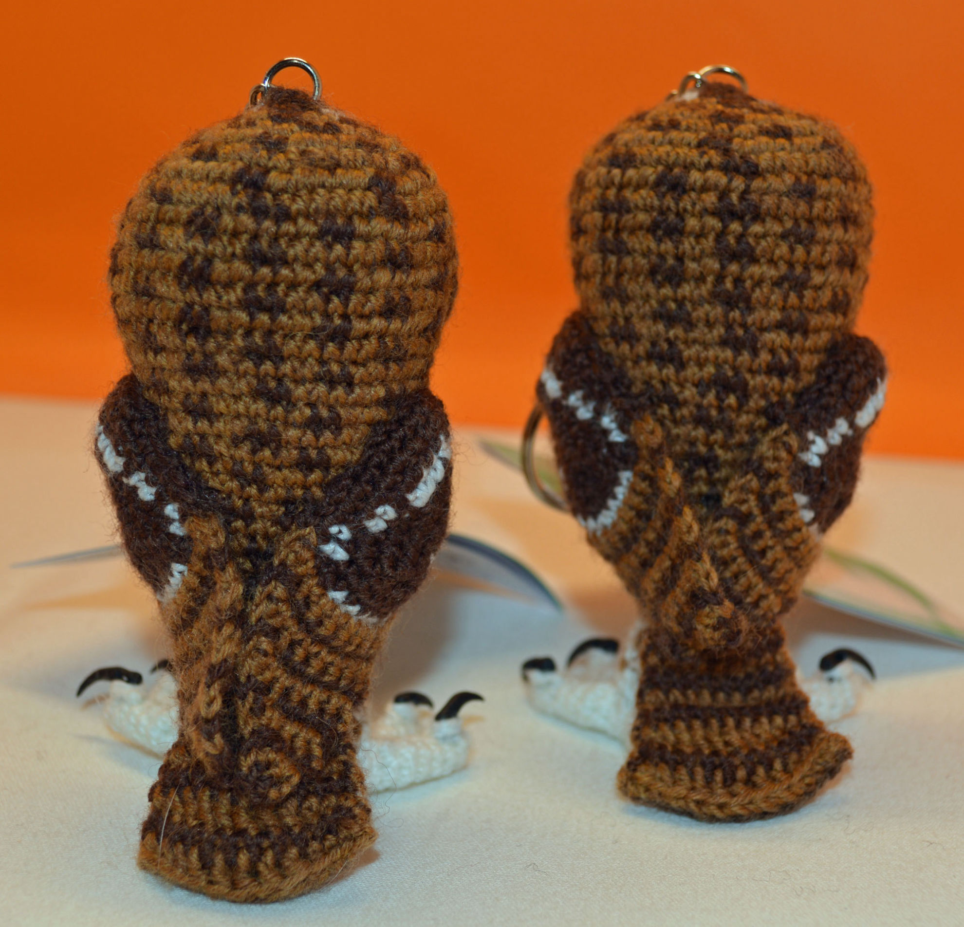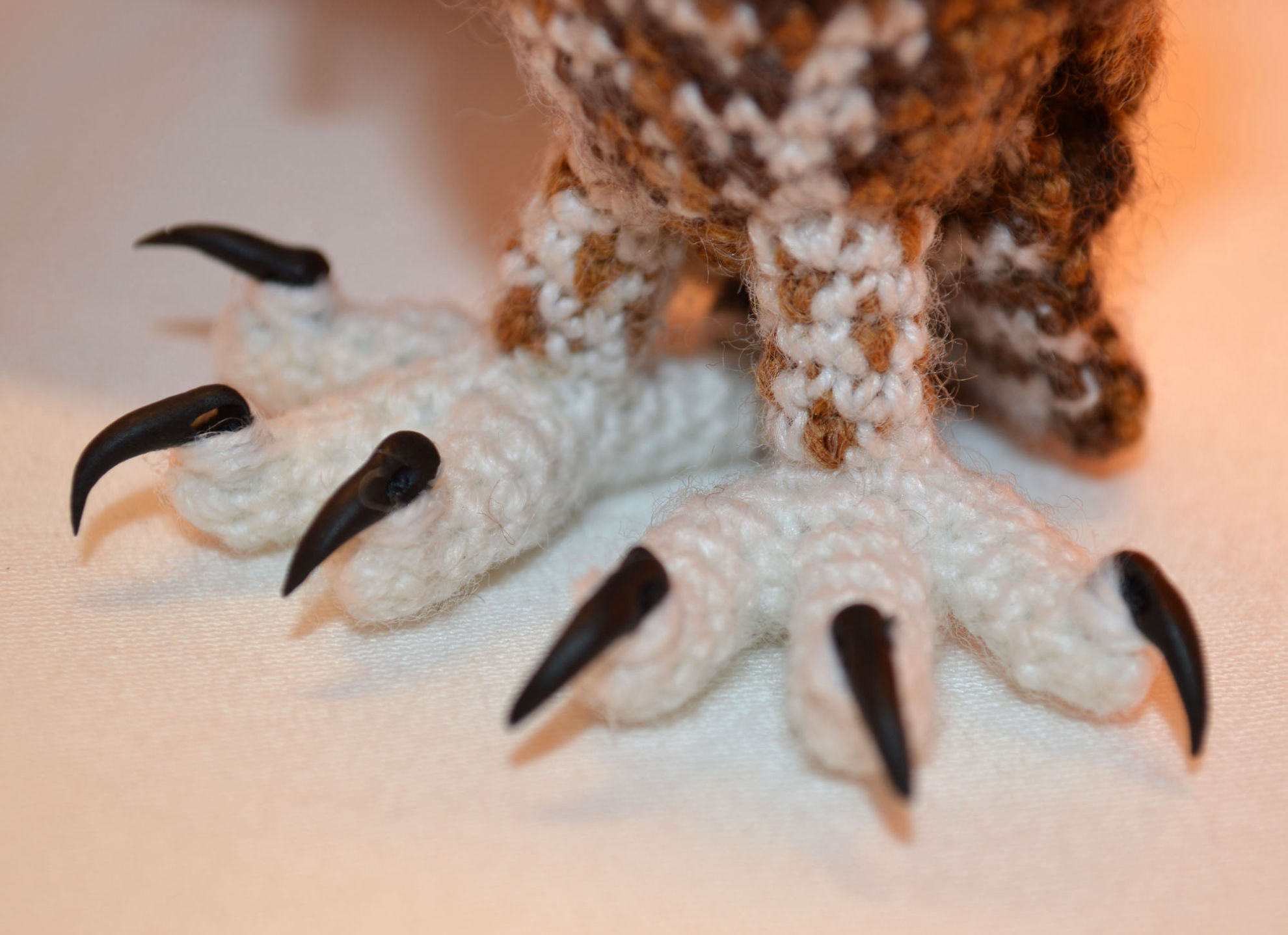 Material: Wolle Weiss, Hellgelb, Verschiedene Brauntöne, Glasaugen, Bastelwatte, Fimo (krallen)