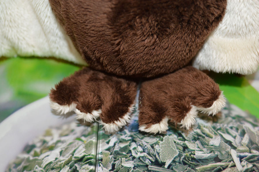 Material: Teddystoff verschieden, Glasaugen, Bastelwatte
